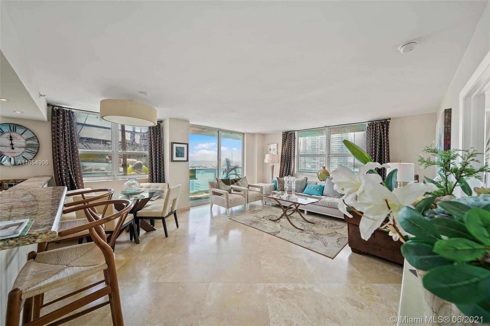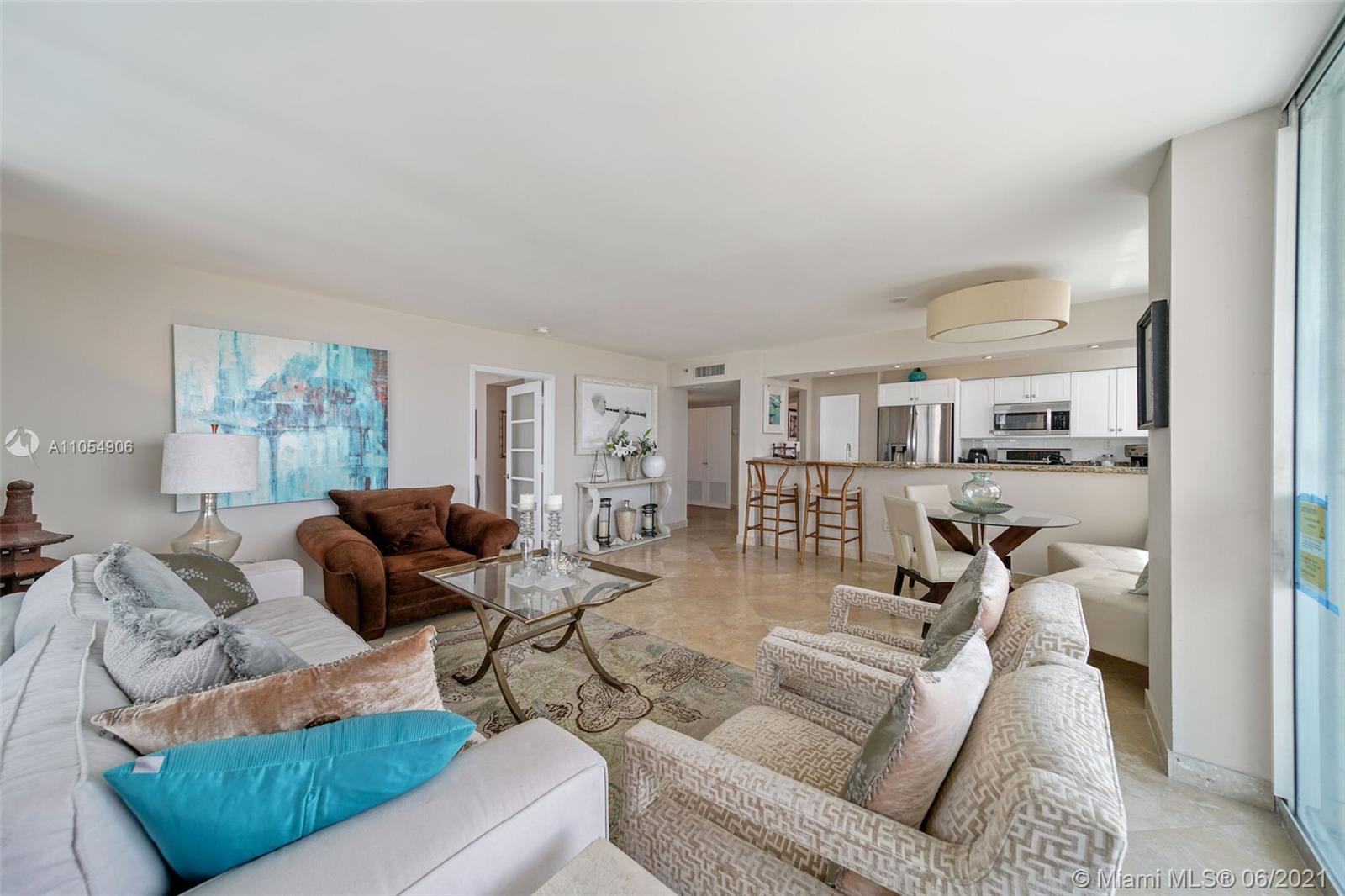 Corner Unit with wraparound balcony and extended terrace offering floor-to-ceiling glass in living room AND bedrooms. 1 of only 6 units with this terrace and the only one partially uncovered creating a "rooftop" feel. Views of Biscayne Bay, South Beach, the ocean and coming soon the new park on West Ave. This unit features an updated kitchen with stainless steel appliances, appealing marble floors, renovated baths, custom closets, full size washer & dryer and one assigned parking spot in the garage. The Floridian is a luxurious full-amenity building with 2 bay front pools including a 24-meter lap pool, a gym and spa, concierge, gourmet market, salon, security and complimentary valet for guests. Located on West Avenue, you are steps away from South of Fifth, Lincoln Road and the ocean.