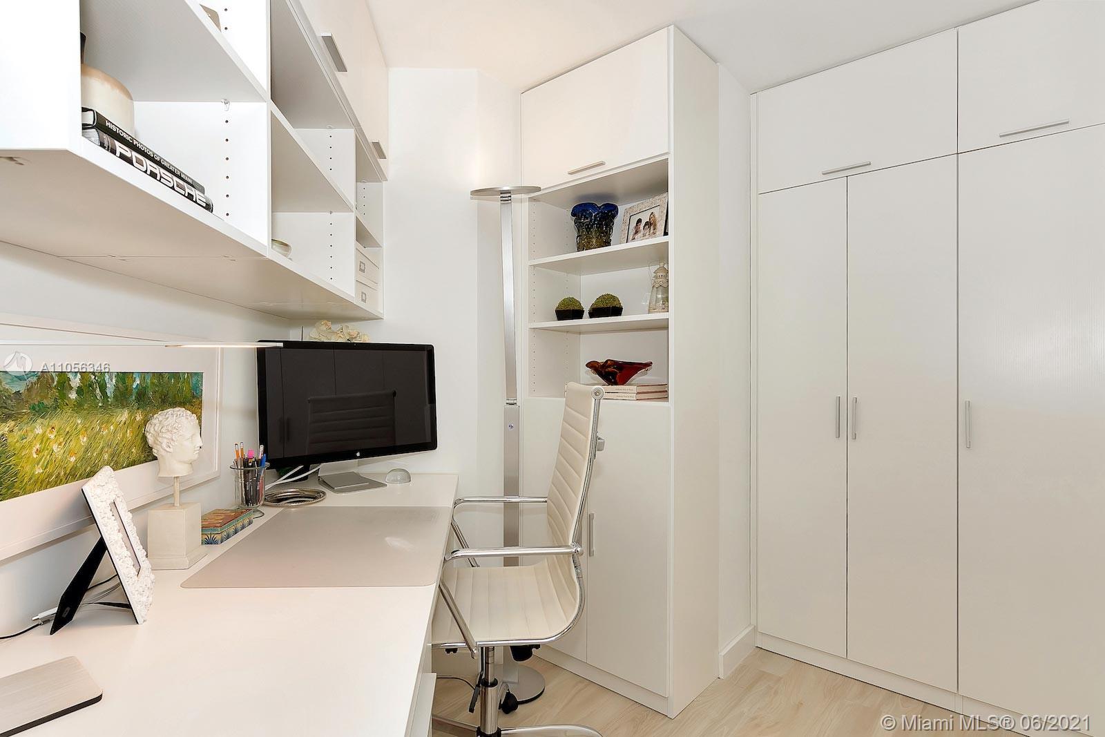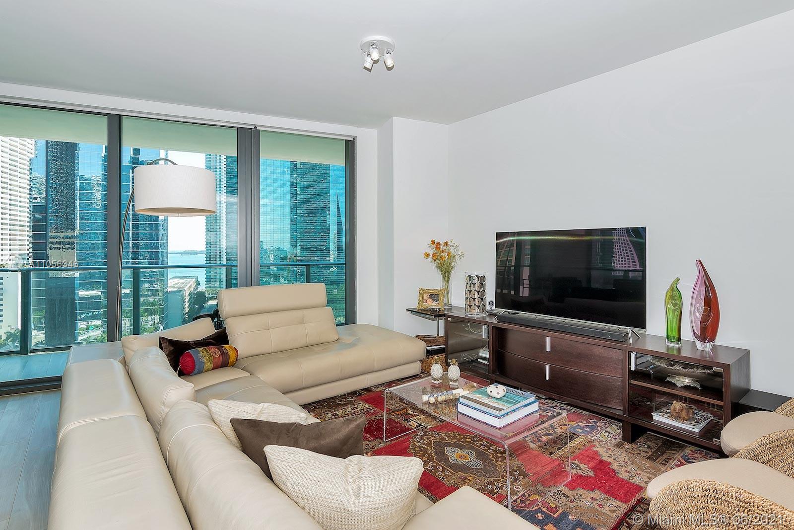 Corner Unit with 2 Bedrooms + Customized Den and 2 Bathrooms, over-sized balcony with panoramic views to Miami Skyline and Biscayne Bay, top of line appliances, Built-in Closets and Den ( converted to a perfect office space) by California Closets, shades all over the apartment ( electric at the Master Bedroom) and extra blackout in each bedroom and nice lighting details at the kitchen and corridor. SLS Brickell has luxurious amenities including rooftop pool with unparalleled views of Miami, 24h Concierge, Fitness Center, State of Art Gym, Spa with Sauna, Movie Theater, Party Room, Billiard Room, Room Service with Fi'lia Restaurant.