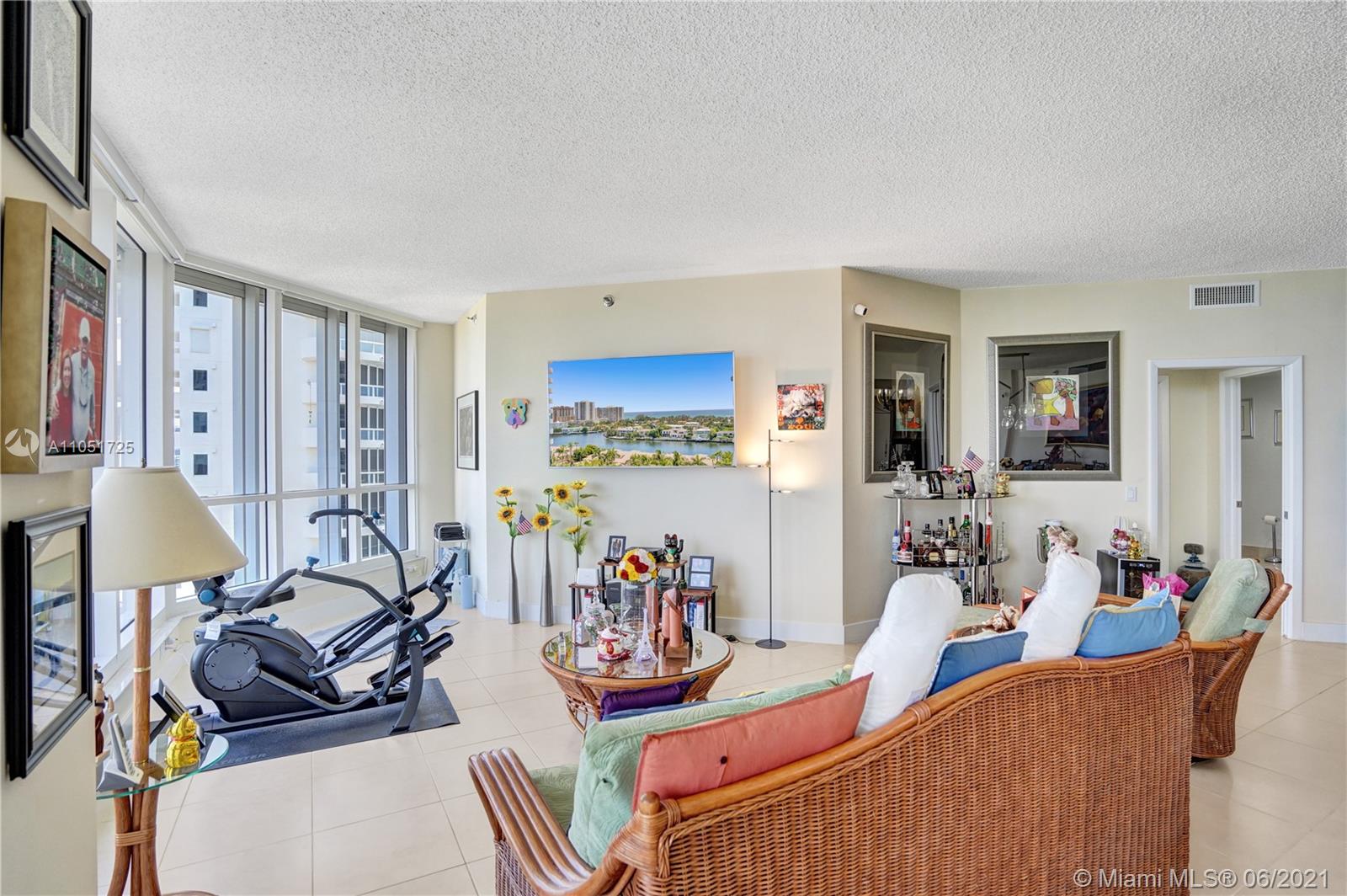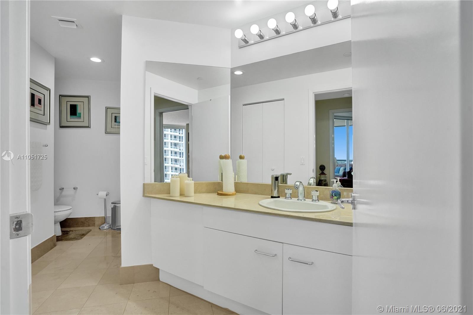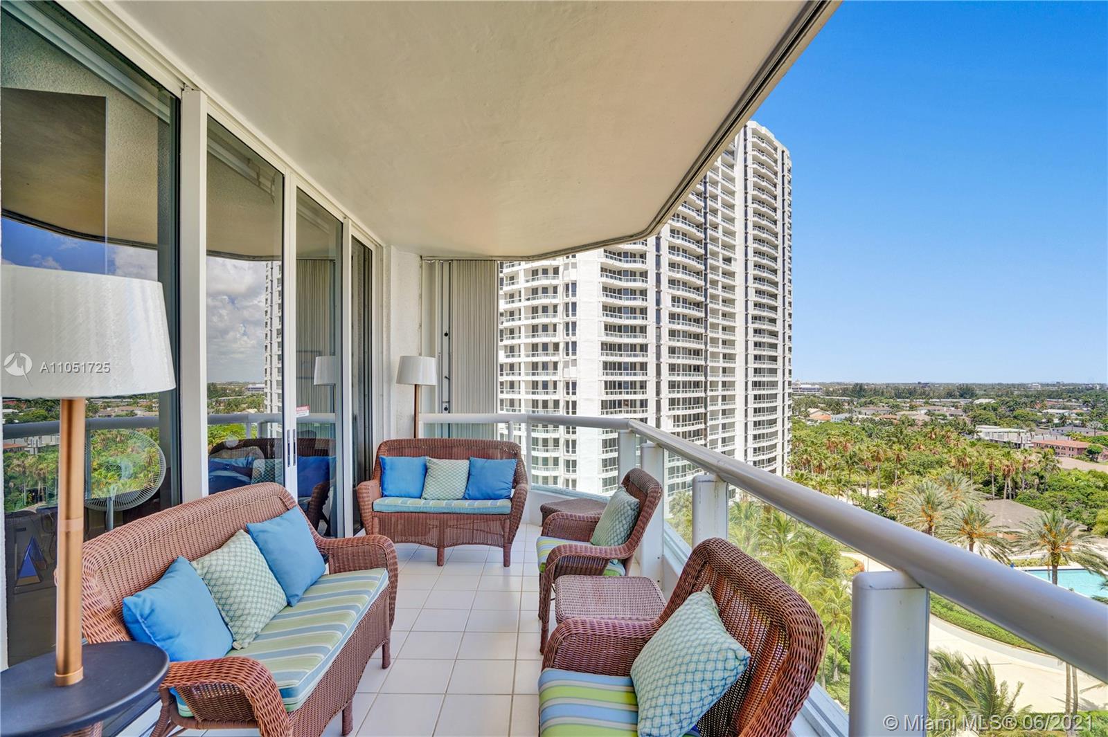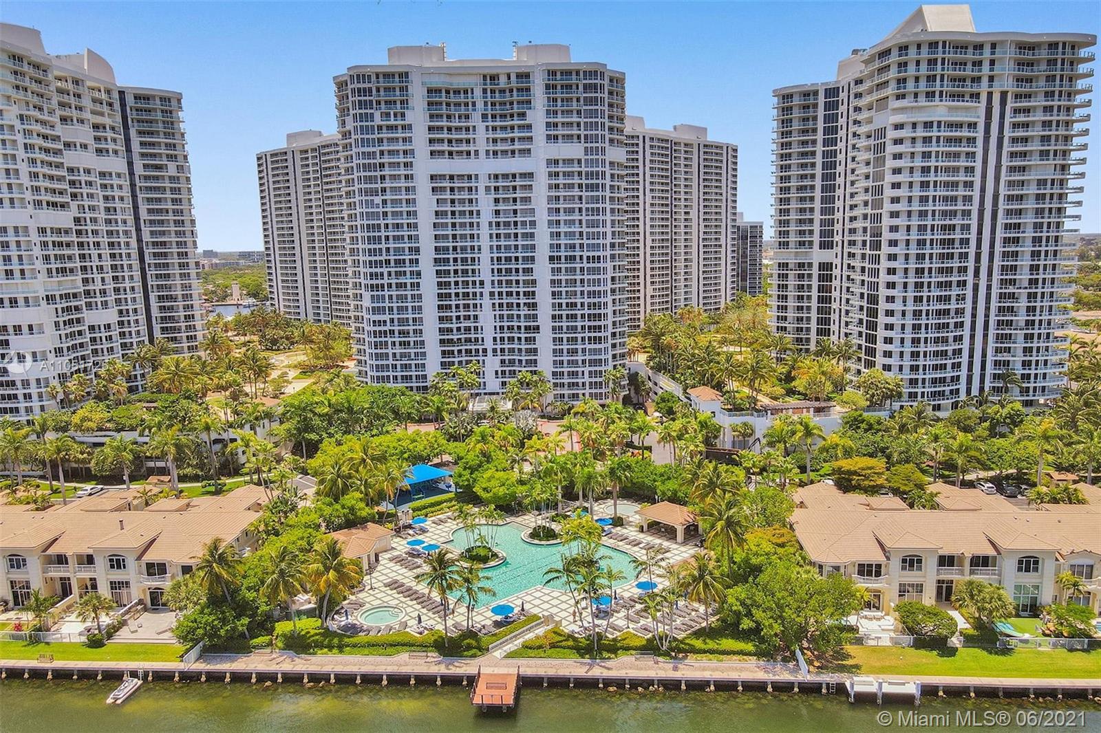 Bright and spacious corner unit in move-in condition. 3 bedrooms, 2.5 baths. Tile throughout, newer appliances, A/C and water heater. Motorized shades in all the windows, panoramic views. Open kitchen with breakfast area facing the marina of the Waterways. Spacious master bedroom, walk in closets. Elegant lobby has just been renovated by Steven G. Resort lifestyle: 3 pools, tennis courts, spa, fitness center and clubhouse. Outdoor café, BBQ area & kids playground. Walking distance to restaurants and shops. Call/text listing agent. Special assessments paid in full