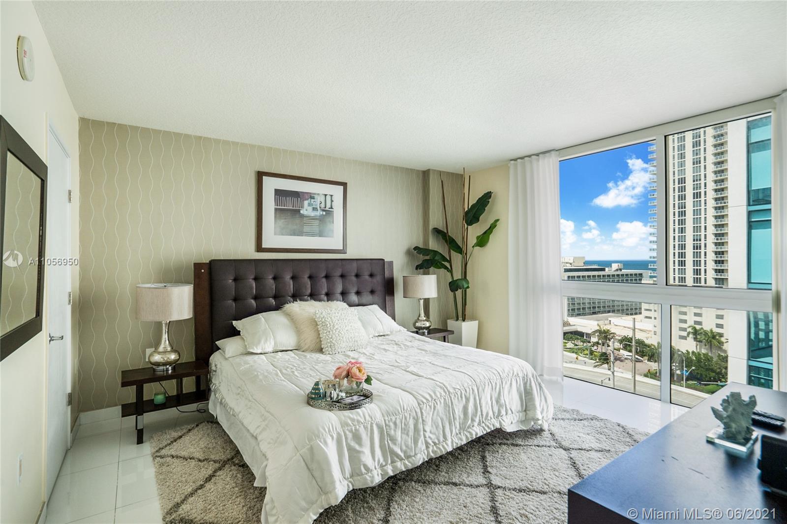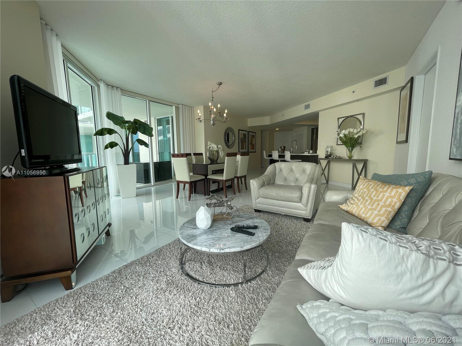 Beautiful and available immediately! Faces east with views to the south and north. Features white porcelain floors throughout entire unit, high impact sliding doors and windows, modern window treatment, open kitchen, master suite with walk-in closet, master bathroom with tub and separate shower, wrap around balcony. Bright with neutral colors. The building offers clubhouse, gym, spa, pool, cabanas and beach club . Also offers 24-hr valet/security services. 1 assigned parking space and second valet space. Pedestrian promenade with shops, restaurants and more! The beach is just across the street and St.Tropez offers access to a beach club (Sole) for its residents! The apartment comes with a storage unit!