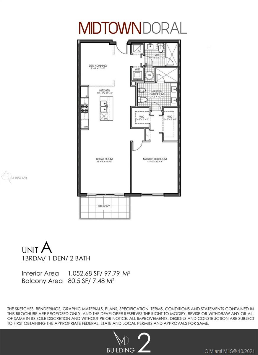 Spacious 1 bedroom/2 bathroom 9' ceiling unit with 1 assigned parking space. Porcelain tiles, high-end kitchen featuring beautifully designed European cabinets and Bosh appliances in the heart of Doral surrounded by an array of local business with easy access to public transportation. Washer and dryer included within the unit. Several restaurants and retail spaces located on the ground floor.