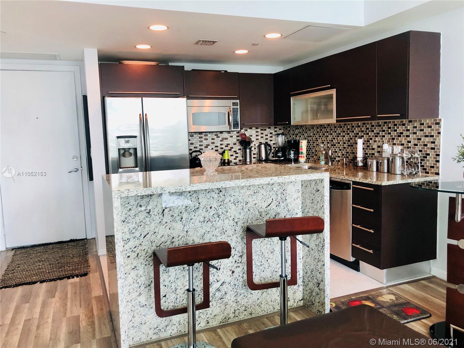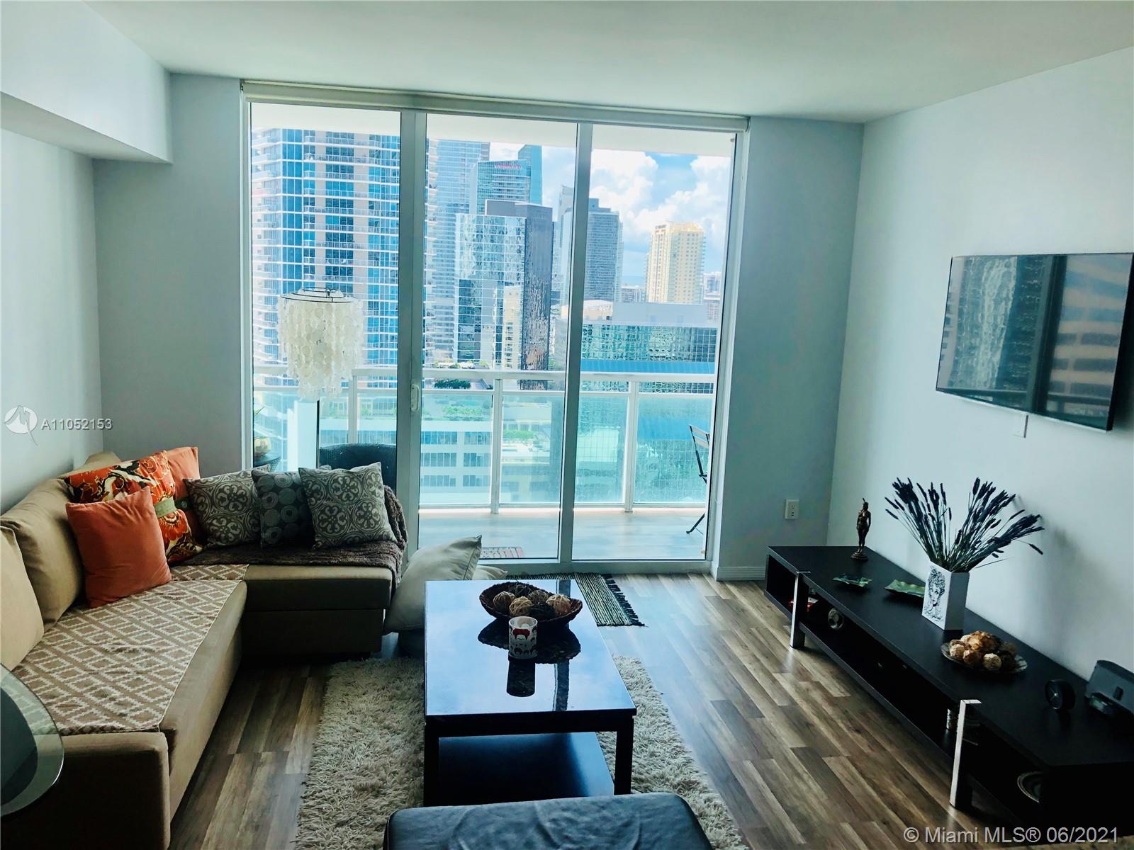 Beautiful 1 bed / 1 bath with amazing Biscayne Bay views. This unit has laminated wood floors throughout. Residence features modern stainless steel appliances & imported italian cabinetry. Water, Basic cable & internet included. Fantastic amenities:24 hr security and concierge, 24 hour valet parking, State of the art Fitness Center in each tower, 2 Infinity-edge heated pools, Steam room,Theater room, Business center, party room, pool table, lounge and more. Walk to Mary Brickell Village and Brickell City Center mall. One assigned covered parking space. HOA includes water, basic cable & internet.