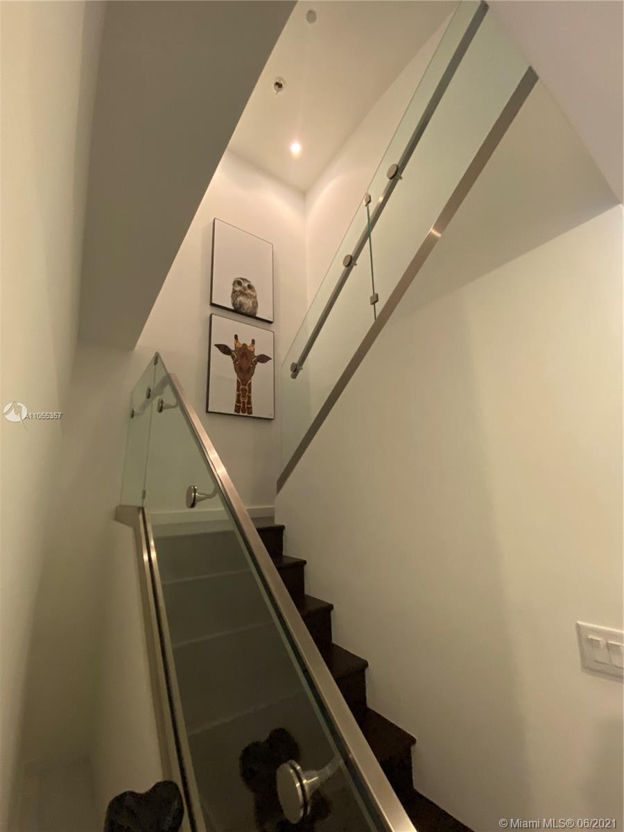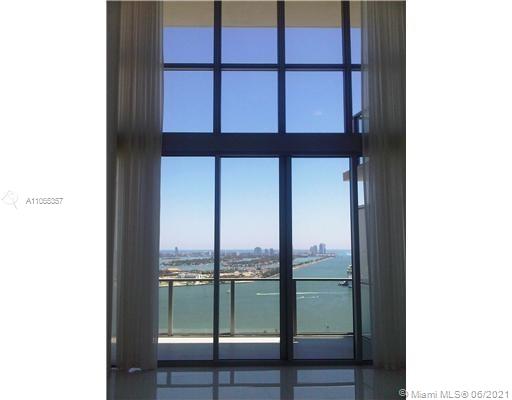 Modern 2-tory Loft style 1Bdr + Den | 2 Bath in luxury building. Den closed and used as an office. Unobstructed views of Biscayne Bay- Port of Miami. 20" high ceilings and oversized balcony. Railing was updated to Glass on 2nd floor & stairs. Top of the line appliances, 5 star amenities including Valet, 24hr doorman, lounge, Sky Pool Deck & Spa.