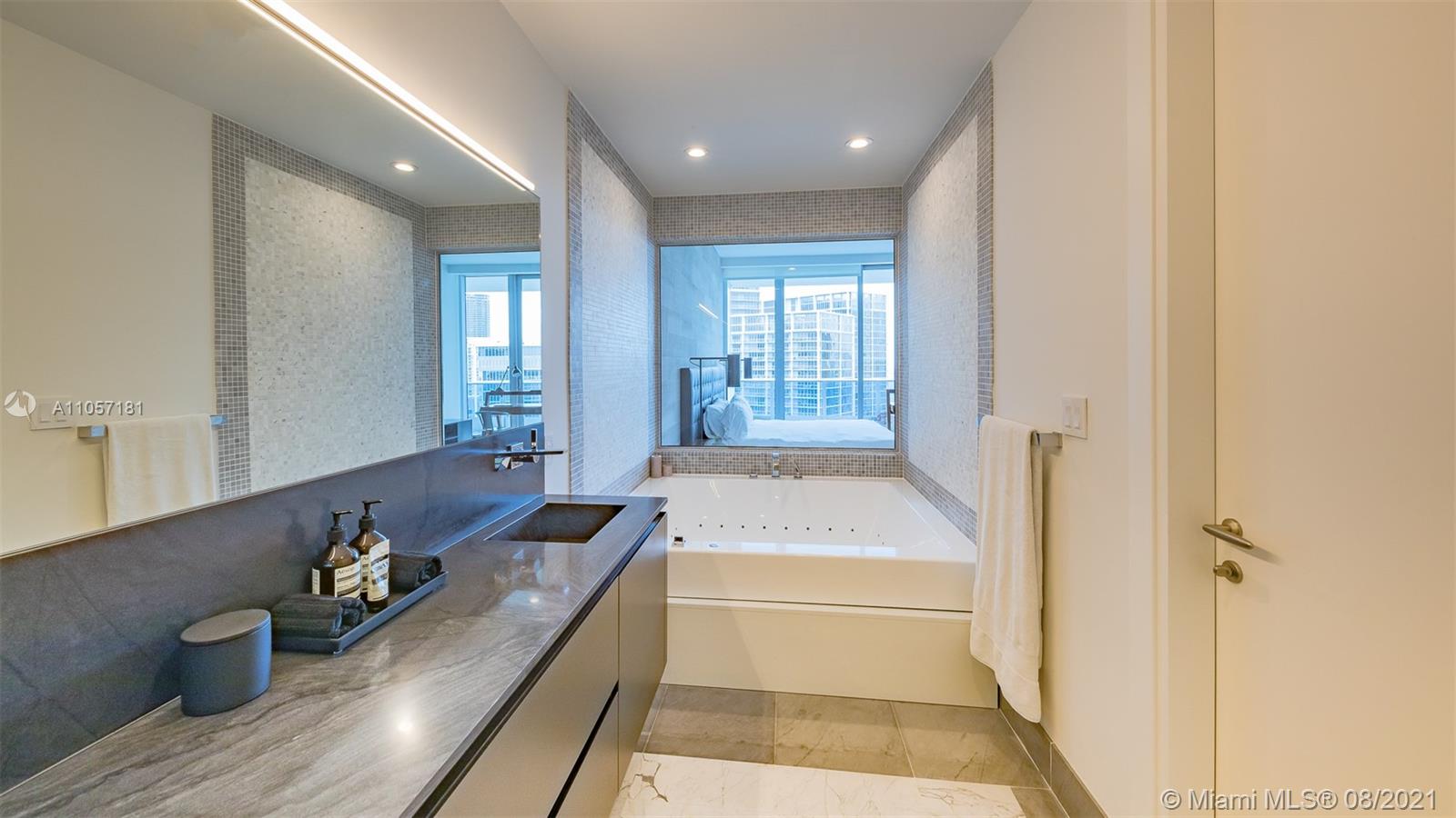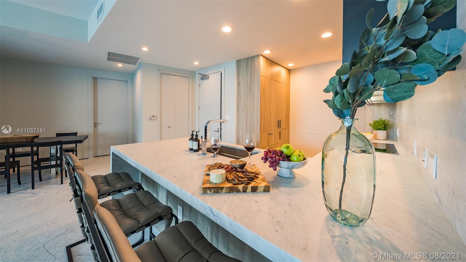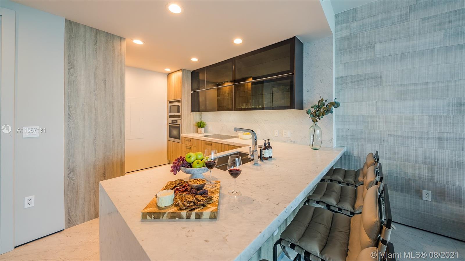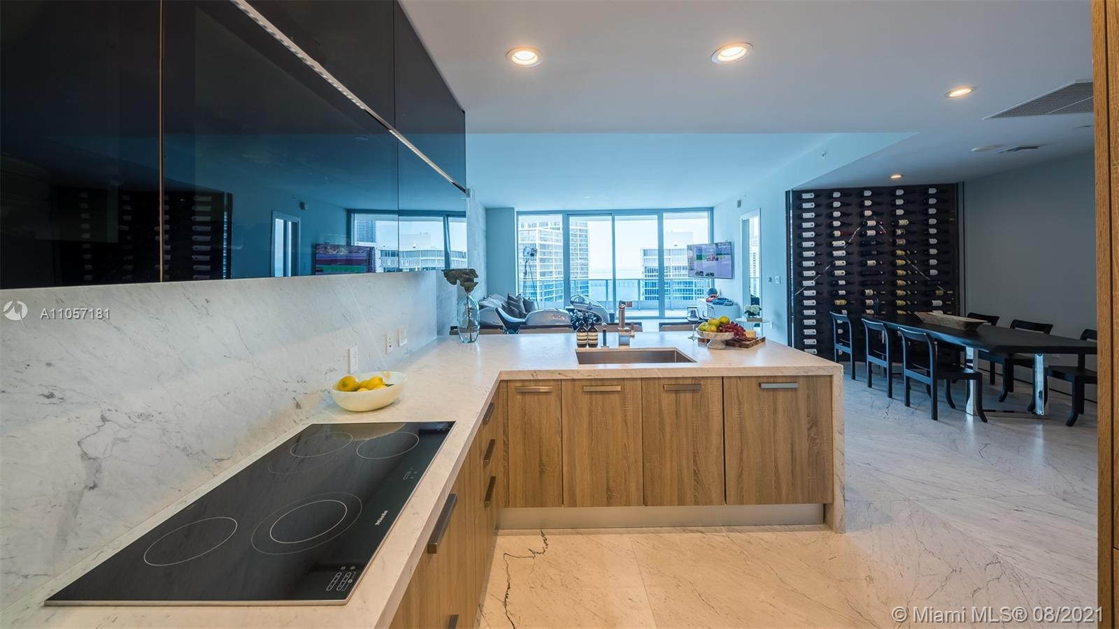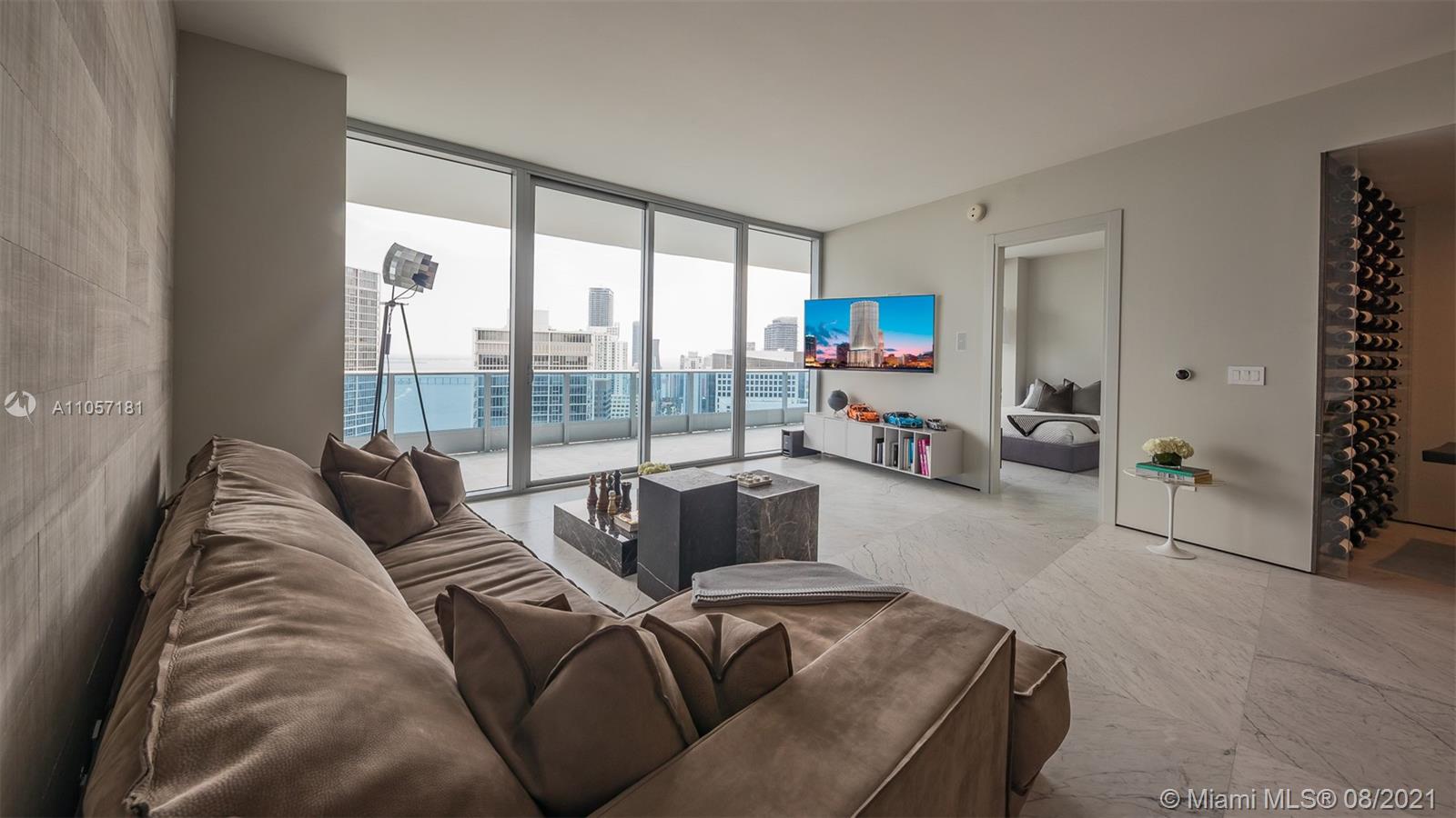 Very special and sophisticated 2 BD/2.5 BA with open water views has been customized beyond your expectations. Located on 51st floor and turnkey with a custom wine wall storage in den, tastefully upgraded with oversized 36" Italian Carrara floors, Pierro Lissoni designed Salvatori stone walls, Snaidero kitchen with Subzero & Miele appliances. New upgrades include a double vanity in the master bathroom, Creston Automated Smart Home System, Smart Lighting & A/C Control. The Epic is located at the epicenter of Brickell world-class shopping, dining and the best entertainment the city has to offer. The apartment is situated on the highly desirable '04' line with tall unobstructed water and skyline panoramas of Miami. Epic living means enjoying on-site first-class dining, SPA and amenities.