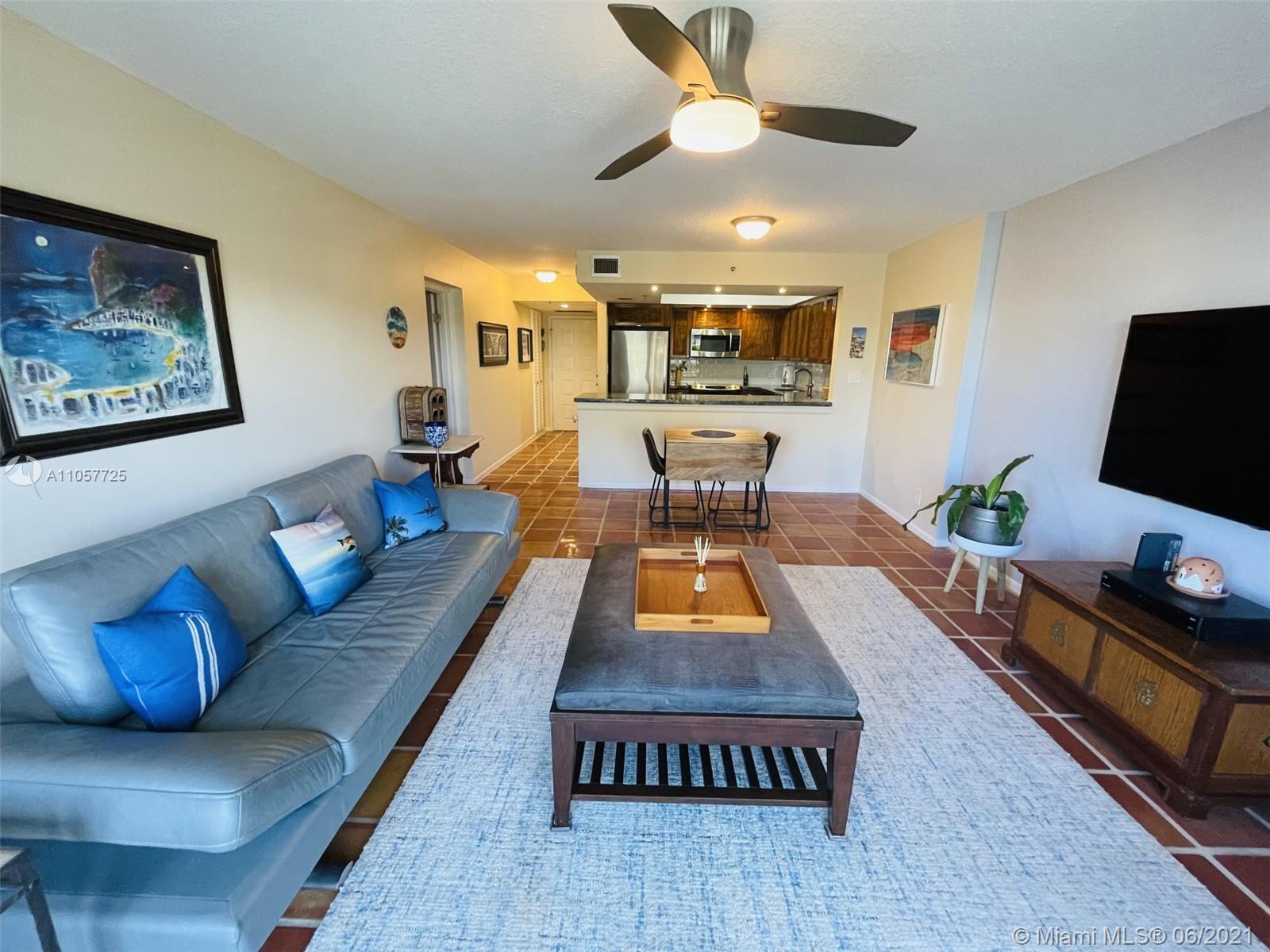 1 BR, 1BA condo ideally located directly on beautiful Hollywood Beach's south end of the iconic Broadwalk. Just 6.5 miles (15 minutes) to FLL airport and a short stroll to Margaritaville resort and many restaurants and pubs. 2 heated pools, cafe, fitness rooms/saunas, 24 hr security, garage parking, tennis/basketball courts, bocci, bike/beach storage, kayak rack, putting green, BBQ grills, game/billiards room and car wash. Ground level unit with fast, easy access from a garden gated balcony with intracoastal views and just steps to the beach. Recently updated, fully tiled throughout with granite countertops, stainless steel appliances, full size stacked washer/dryer, high impact windows, and walk-in closet. Turn key, comes furnished or unfurnished. 1 deeded ground floor parking spot.