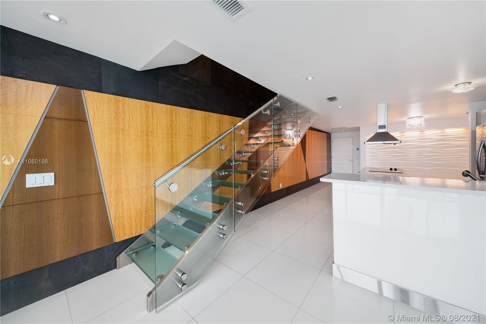 Best opportunity in the whole building. Very spacious and remodeled two-story 2 bed/3 bath condo with very unique details. Unit features brand new flooring, beautiful full glass staircase, and one of a kind bedroom/bathroom doors that were imported from Italy that no other unit has. Unit comes with 3 balconies, one on the main floor and one for each bedroom. There are 2 assigned parking spaces for this unit AND unit comes with a private boat slip to accommodate a 55 foot boat WITH its own elevating boat lift. Main balcony and master bedroom balcony both have direct view of the boat slip so you can always keep an eye on your boat. Artech Residences was designed by renowned architect Carlos Ott and offers 5-star amenities for all residents located right down the street from Aventura Mall.