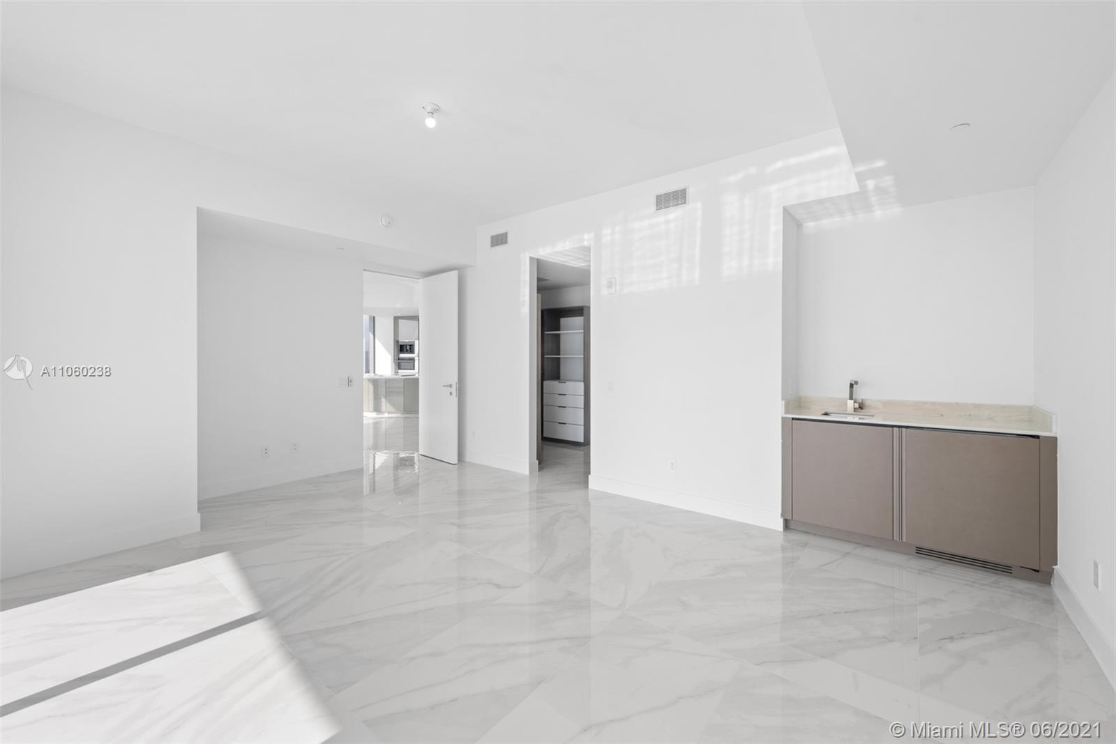 Beautifully finished with calacatta porcelain flooring, California closets and electric window treatments. This brand new 2 bed/2.5 bath corner residence plus den features a state-of-the-art kitchen with appliances and an expansive terrace with stunning ocean and bay views. 5-star amenities such as a bar, spa, sauna, cigar room, wine room, hair salon, heated pool, jacuzzi, and more make it easy to enjoy living a luxury lifestyle in Sunny Isles Beach, Florida.