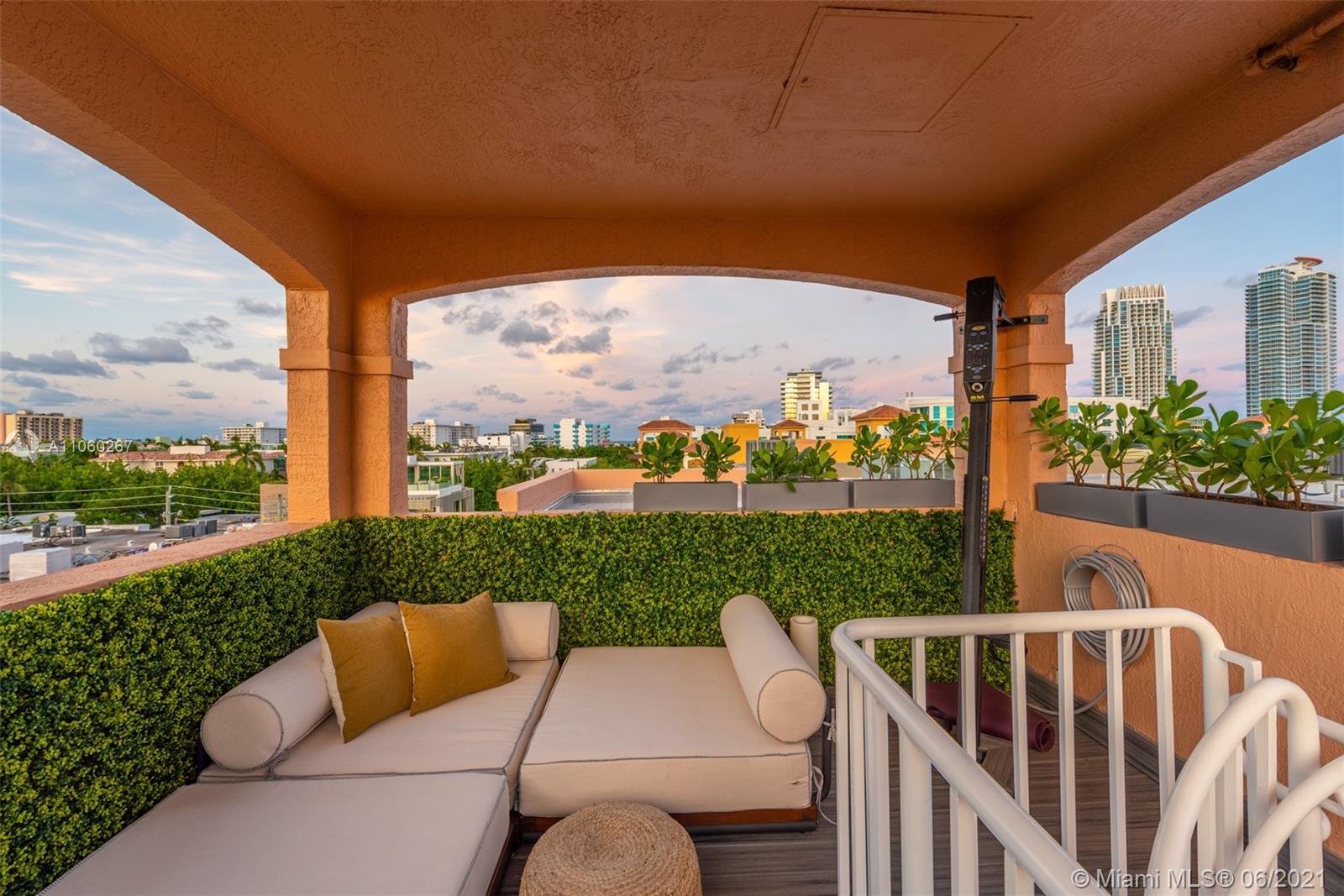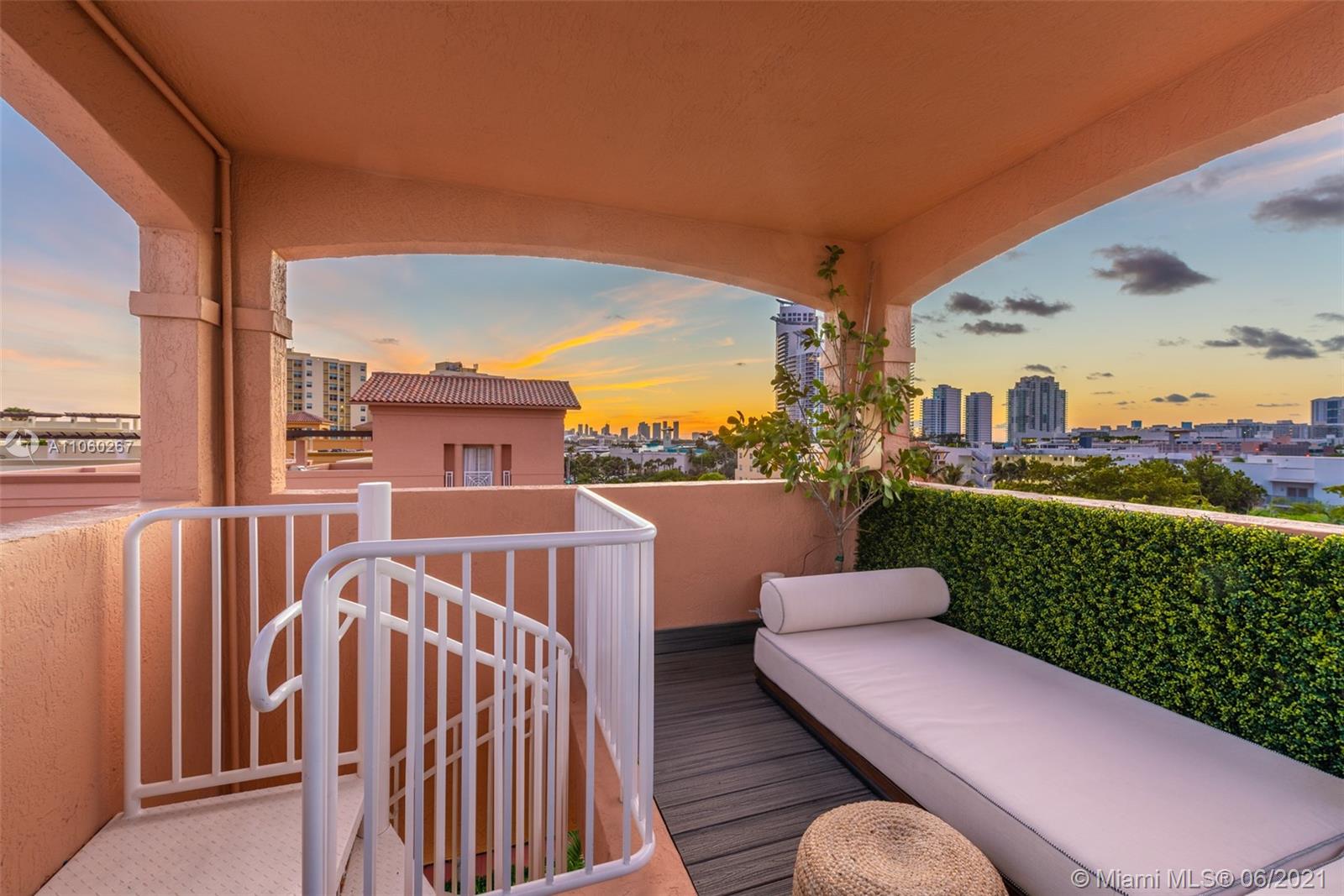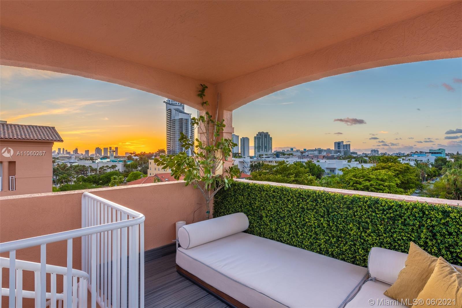 LOCATION! Nestled in the heart of Miami Beach’s South of Fifth neighborhood, this corner unit is a rare find and the ultimate in boutique living. The top floor residence features bright open spaces, high ceilings, and a two-story private terrace with stunning Miami skyline and sunset views to enjoy the ultimate in outdoor living. Interiors feature 1,485 sq ft with 3 spacious bedrooms and en-suite bathrooms, expansive walk-in master closet and wood floors. Ready for new owner to add their own personal design touch. 2 assigned parking spaces. Located in the private, gated community of The Courts at South Beach, amenities include fully equipped fitness center, sauna, BBQ area, social club and 2 pools. Walk to the beach, South Pointe Park and South Beach’s best restaurants and shopping.