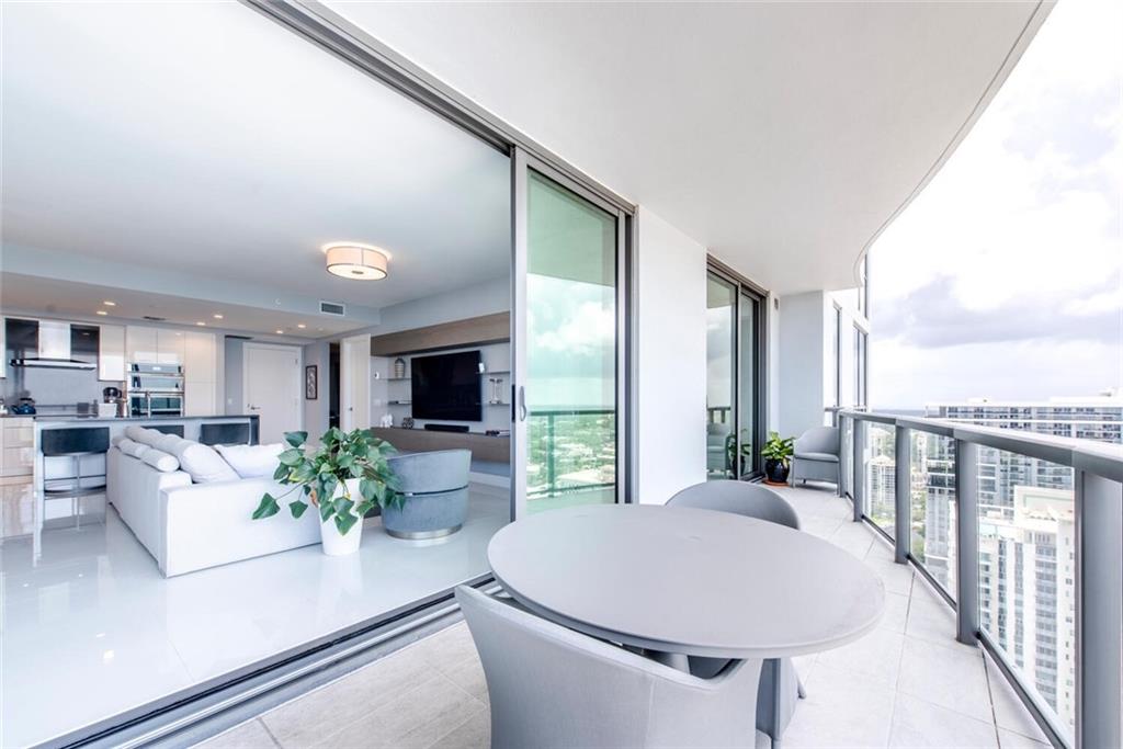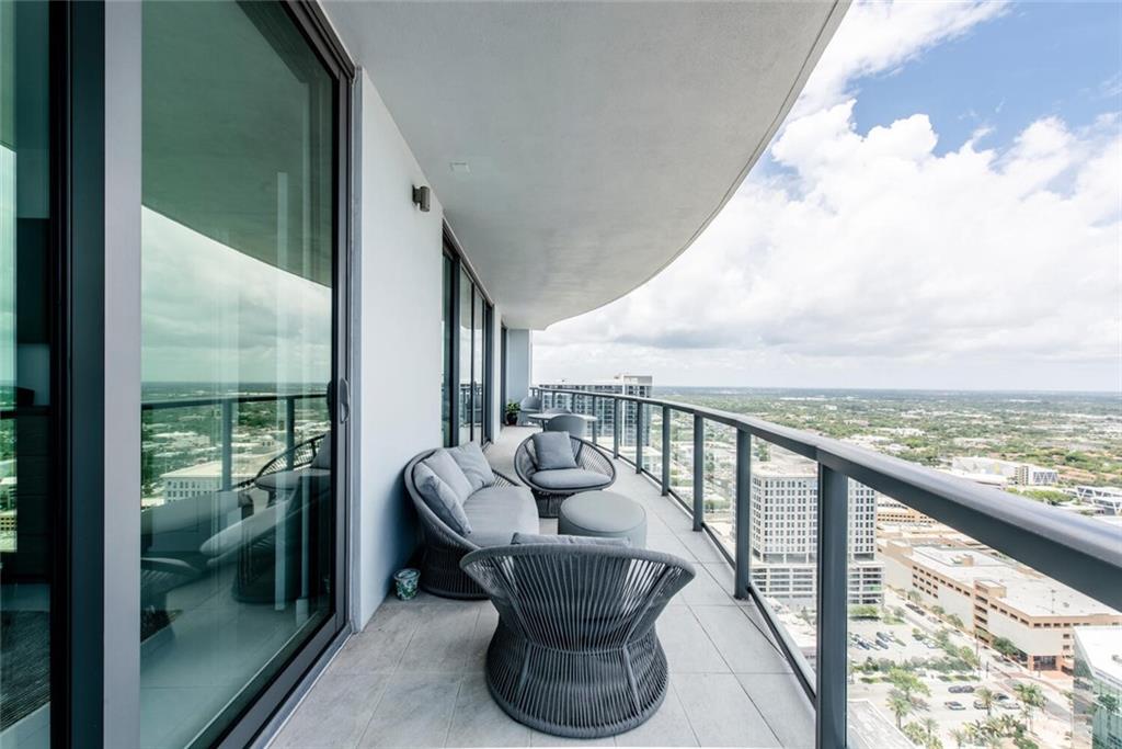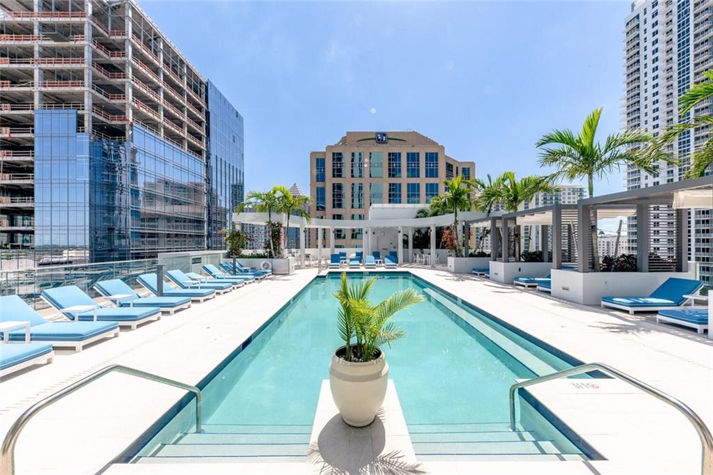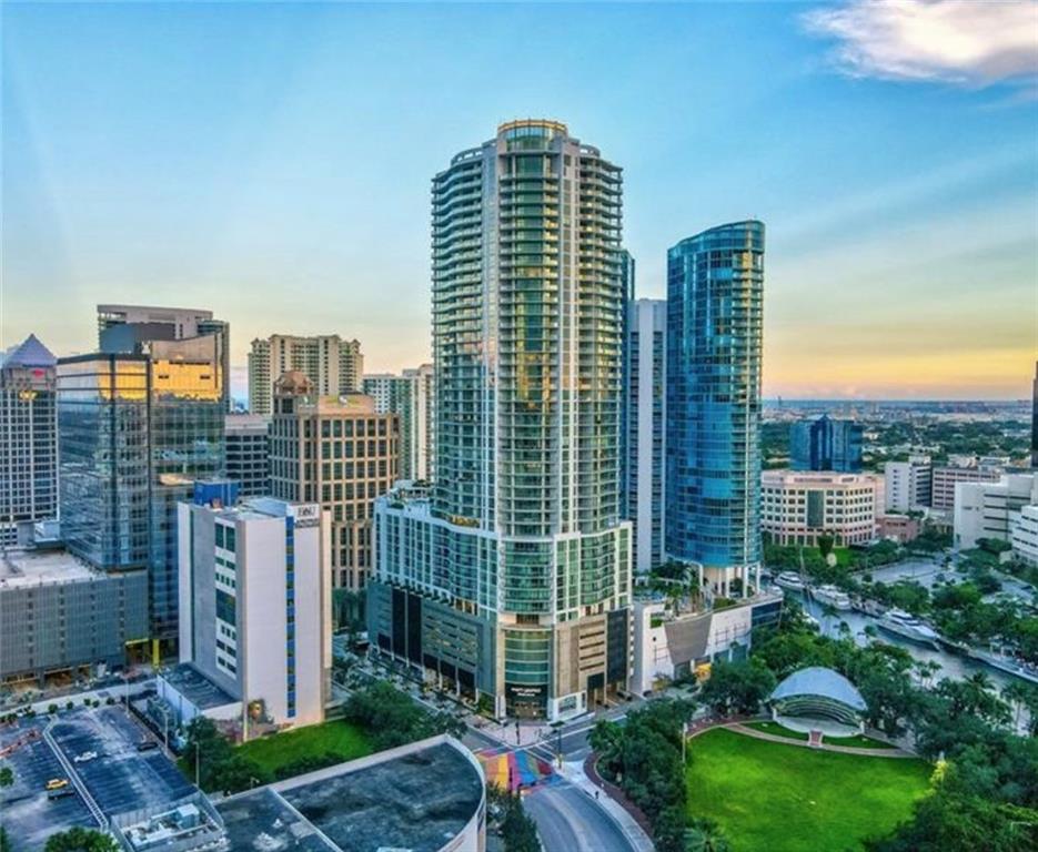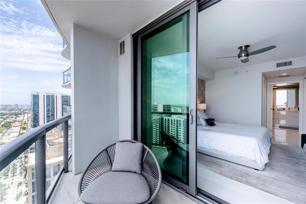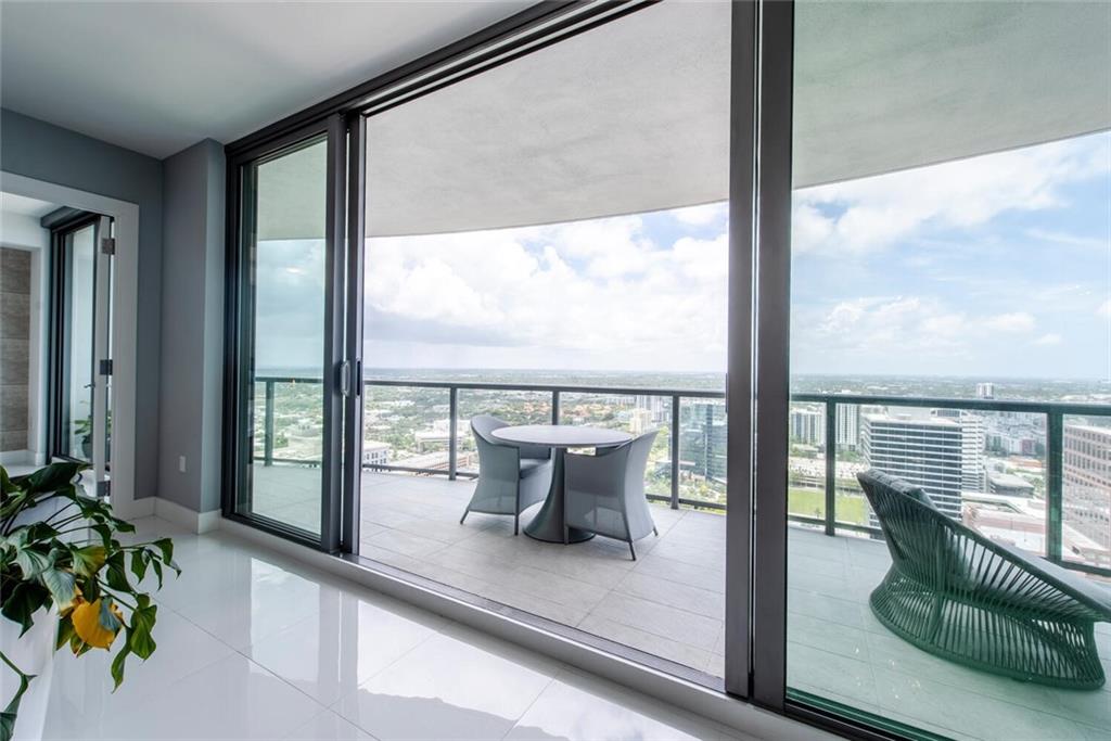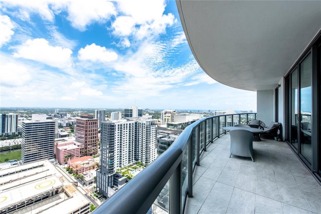 HIGHEST "B" FLOOR AVAILABLE! Imagine the impressive views from the 36th floor, soaring high above downtown Ft Lauderdale! 2BED+DEN/2.5BA luxury condo boasts a contemporary design with Custom Built-ins, California Closets, White porcelain tile throughout. Floor-to-ceiling windows with motorized black-out shades in bedrooms. Modern Kitchen w/ Nolte European cabinets, Quartz Counters & backsplash. Jenn-Air Euro Stainless appliances, Wine Cooler. Grohe & Koehler fixtures. Double panel sliding doors lead out to a 310 ft terrace with glass railings perfect for outdoor living & entertaining. Catch morning sunrises & evening sunsets and enjoy distant ocean views. Storage & 2 tandem-parking spaces. 4-Star amenities including a Hyatt Branded hotel on lower floors offers restaurant, bar & guest rooms