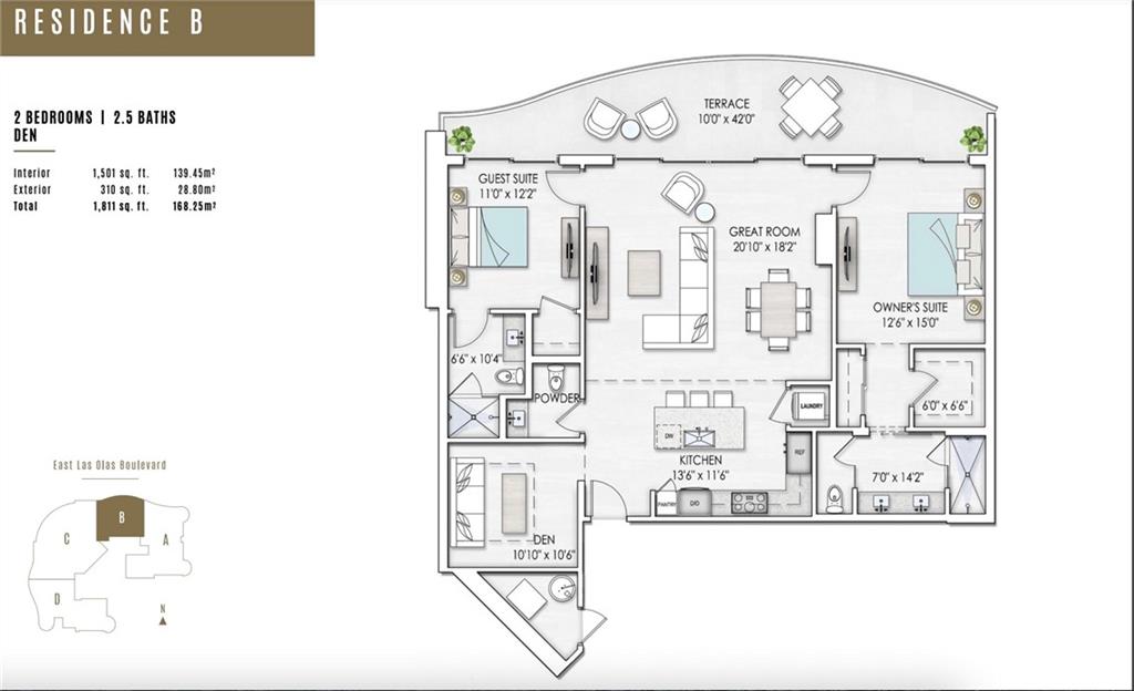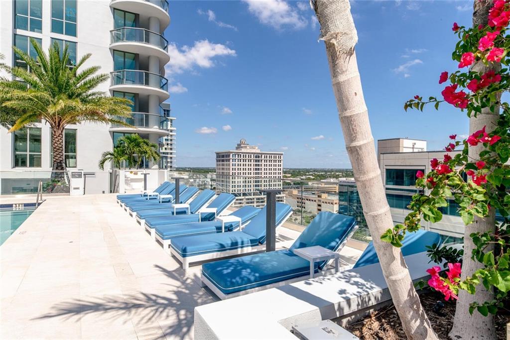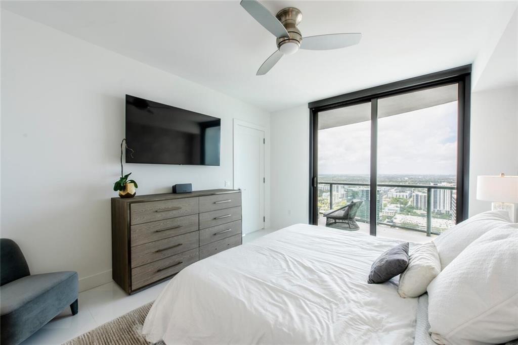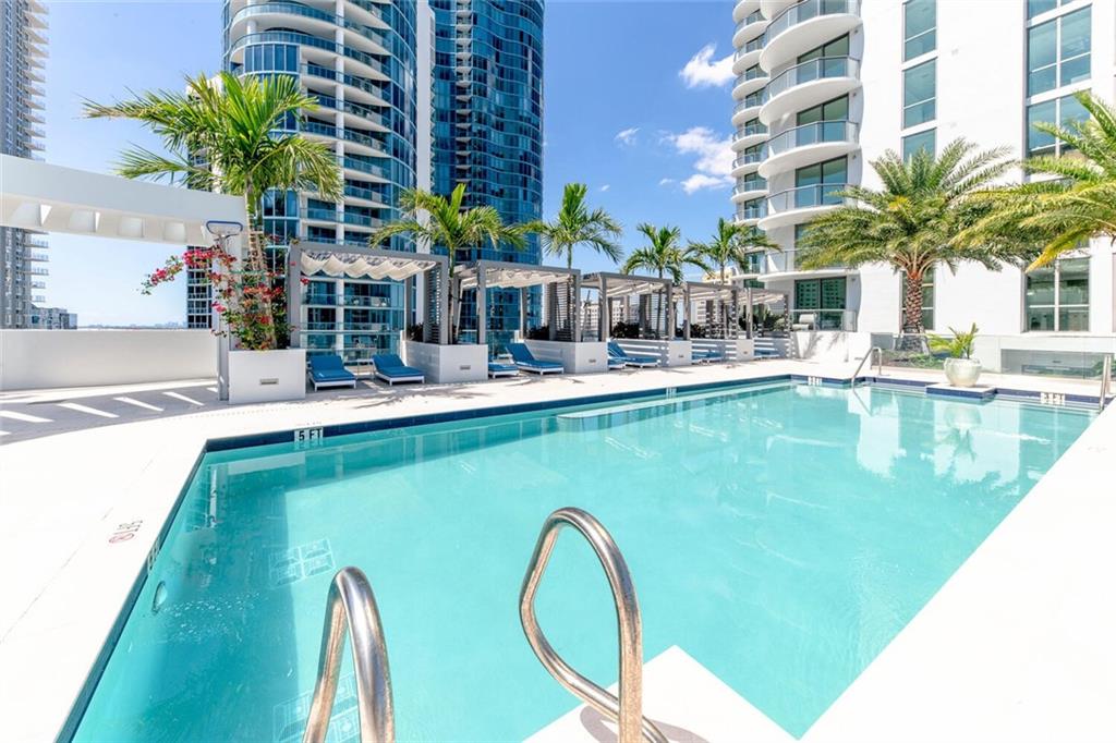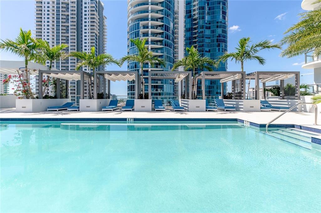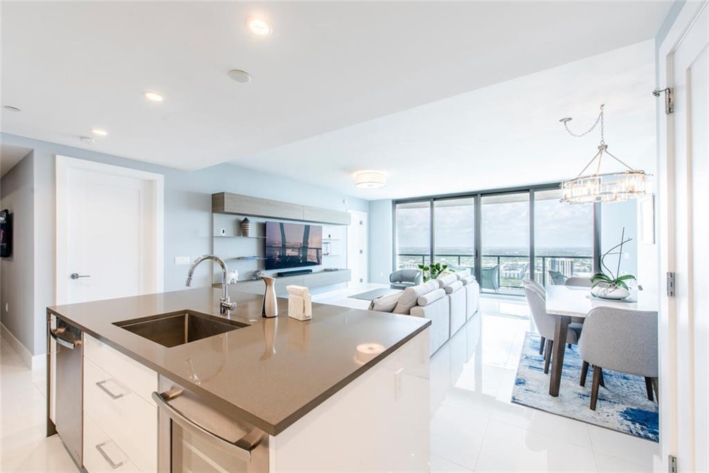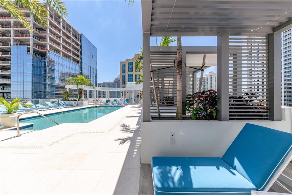 HIGHEST "B" FLOOR AVAILABLE! Imagine the impressive views from the 36th floor, soaring high above downtown Ft Lauderdale! 2BED+DEN/2.5BA luxury condo boasts a contemporary design with Custom Built-ins, California Closets, White porcelain tile throughout. Floor-to-ceiling windows with motorized black-out shades in bedrooms. Modern Kitchen w/ Nolte European cabinets, Quartz Counters & backsplash. Jenn-Air Euro Stainless appliances, Wine Cooler. Grohe & Koehler fixtures. Double panel sliding doors lead out to a 310 ft terrace with glass railings perfect for outdoor living & entertaining. Catch morning sunrises & evening sunsets and enjoy distant ocean views. Storage & 2 tandem-parking spaces. 4-Star amenities including a Hyatt Branded hotel on lower floors offers restaurant, bar & guest rooms