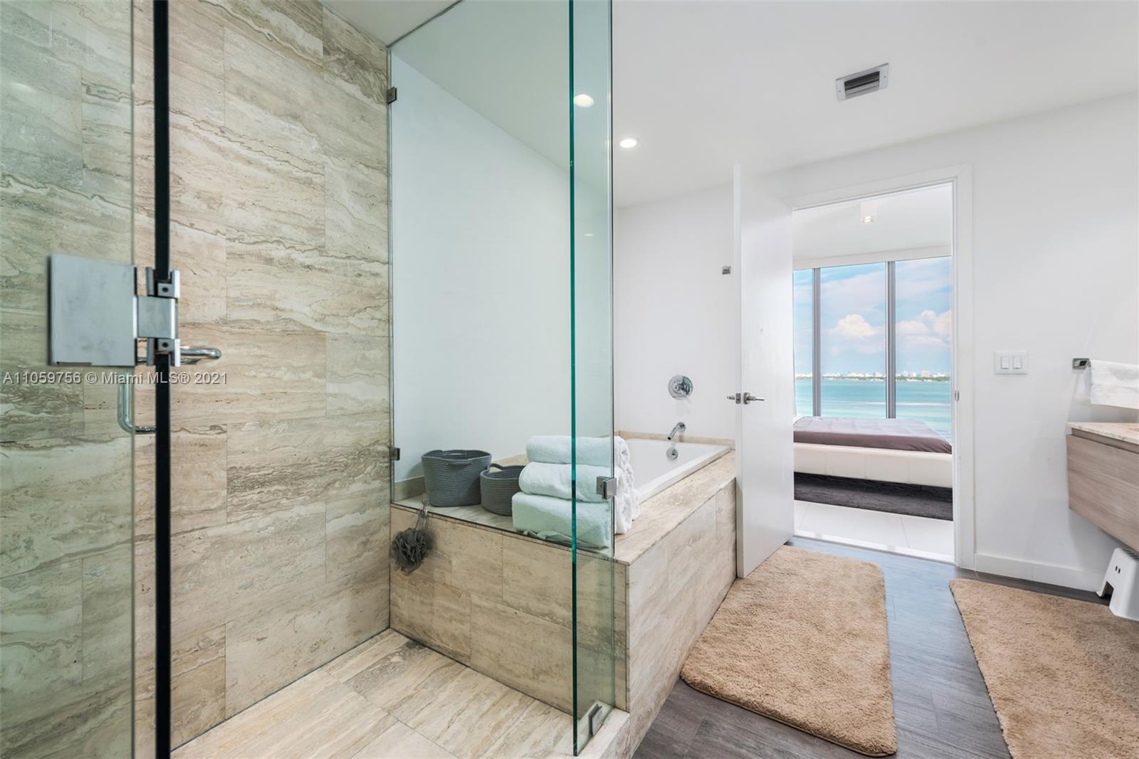 Spectacular high floor 2 bedrooms plus den, 3 baths with unobstructed views of the Biscayne Bay, Miami Beach, and ocean views. Top-of-the-line appliances and private foyer, private elevator, walking closets, 10' floor-to-ceiling glass windows. Biscayne Beach has Resort-style amenities including a chic private Beach Club with beautiful cabanas, sophisticated seaside living, tennis & volleyball courts, spa and gym, dog park, and 2 beautiful pools.