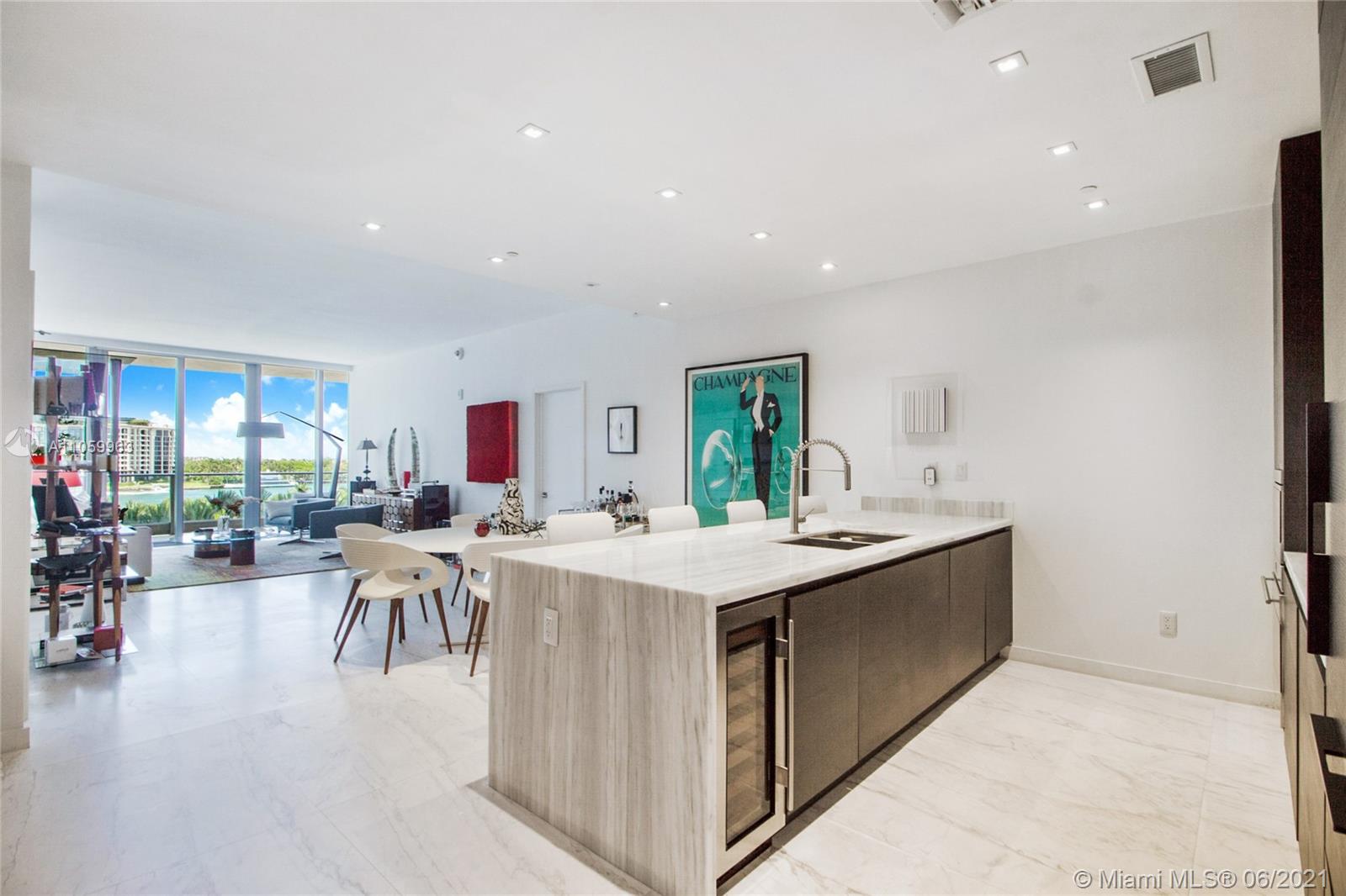 Enjoy incredible views from this gorgeous 2 bedroom + den, 1,732 SF condo located in the exclusive boutique building Marea. Unit has its own private elevator entry and top of the line finishes throughout including marble and wide wood planks. Kitchen is equipped with Wolf and Subzero appliances. Building offers a rooftop pool, lounge area, fitness center, sauna and spa. It is located in the heart of the South-of-Fifth (SoFi) district, just a few blocks from the Ocean, South Pointe Park and some of the best restaurants in Miami. Tenant occupied - 24hrs notice.