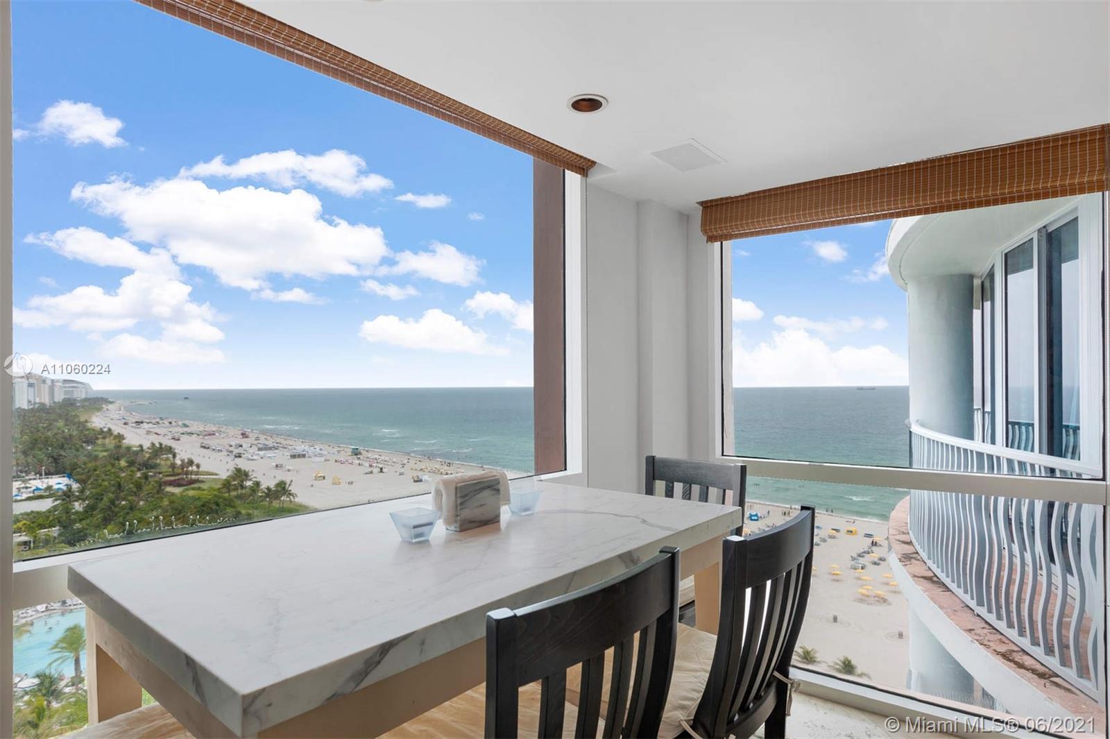 Stylish, direct-beachfront 3-bed/3.5-bath penthouse corner unit boasts panoramic views of Miami Beach and the ocean. Decorator-designed unit features custom lighting, electronic shades, built-in sound system, marble floors. Split-plan layout with two separate balconies for outdoor living facing north and east. Conveniences include multiple walk-in storage closets, dedicated laundry room with sink, 3 assigned parking spaces, and additional storage cage in garage. 1500 Ocean, designed by architect Michael Graves, is a boutique, full-service condominium offering: gym, sauna, steam room, pool and hot tub, dedicated security, valet, front desk, party room, beach service with chaise lounges and towels provided for residents. Steps away from the beach and many of the area’s best restaurants.
