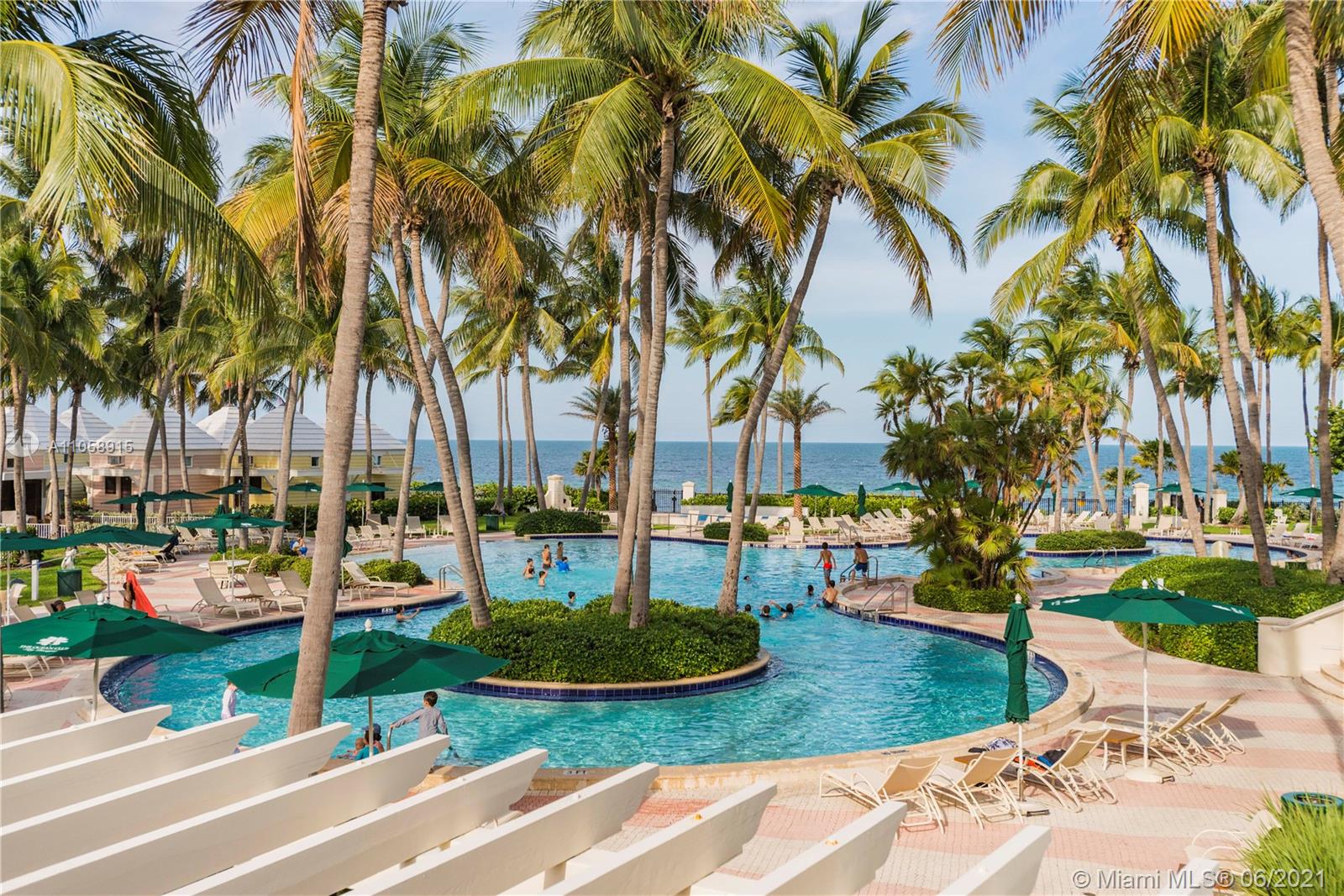 Beautiful and Bright 3 bedroom condo with 3 full baths, open kitchen, marbel floors, New appliances, balcony surrounded by palm trees and Tennis courts view. Enjoy all the resort style amenities this amazing condo has to offer- Tennis Center, basketball court, several pools, spa, incredible gym offering instructors/classes, newly updated beach club with two restaurants and full beach service.