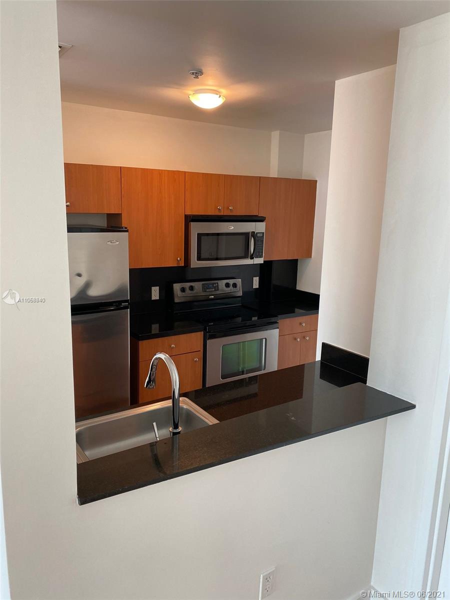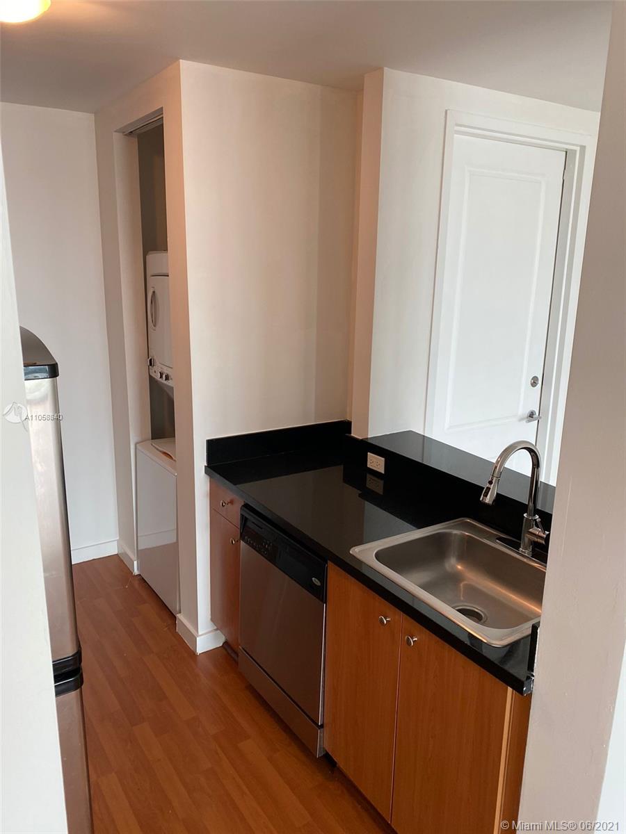 Spacious studio with almost 600 Sf and balcony! Partial bay and city views from the balcony. Unit has high ceilings, Kitchen with granite counter top and stainless steel appliances, W&D in unit. Laminate floor throughout. Building has a nice pool with pool deck and Jacuzzi, sauna room and gym. Close to Omni, Downtown, Wynwood and Midtown. Easy to show follow Broker remarks. Rent right away, Corporate buyers Ok.
