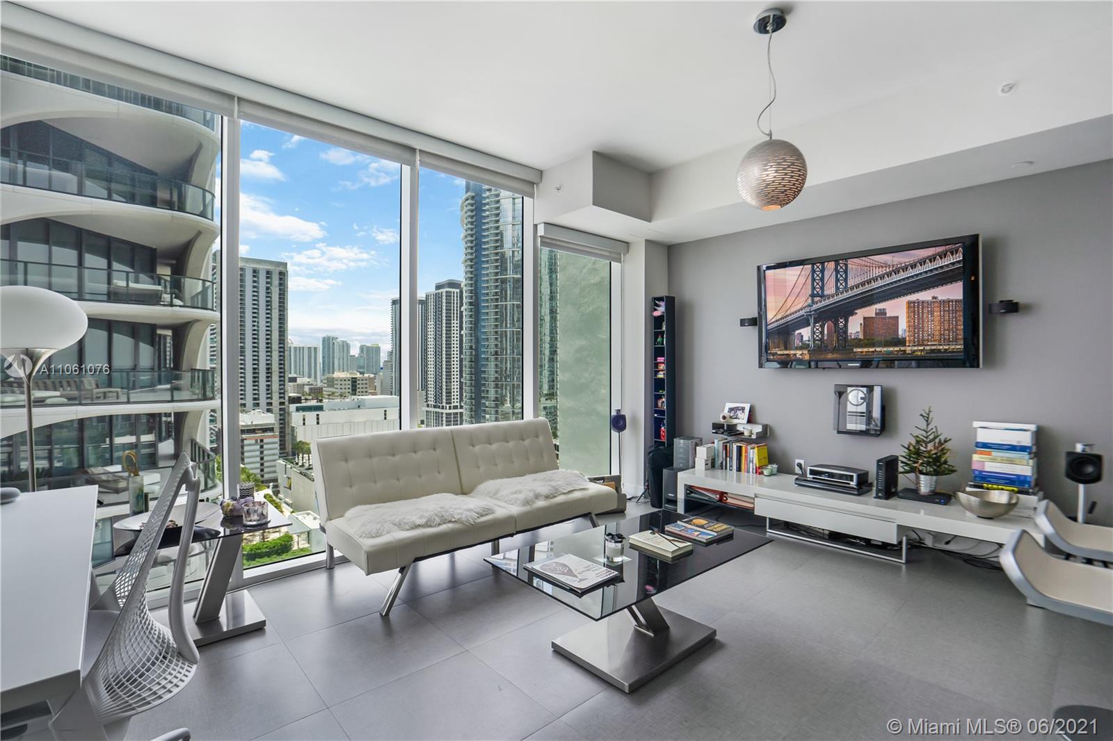 Ten Museum Park is a spectacular building in the heart of Downtown Miami! Access to the 20,000 SF La Prairie spa & yoga center. Valet and 24 hour security & programmed FOB to ensure safety. Premiere Ultra CHIC stainless steel Kitchen and 1 and half baths: 360 glass shower. The unit is upgraded with frosted glass sliding door to enclose the bedroom, fully built in closets. Within walking distance to Arena, Bayside & museum, the unit offers great water and city views. Close to Miami Beach & Airport, this is the perfect spot and the unit can be rented for 3 months min.