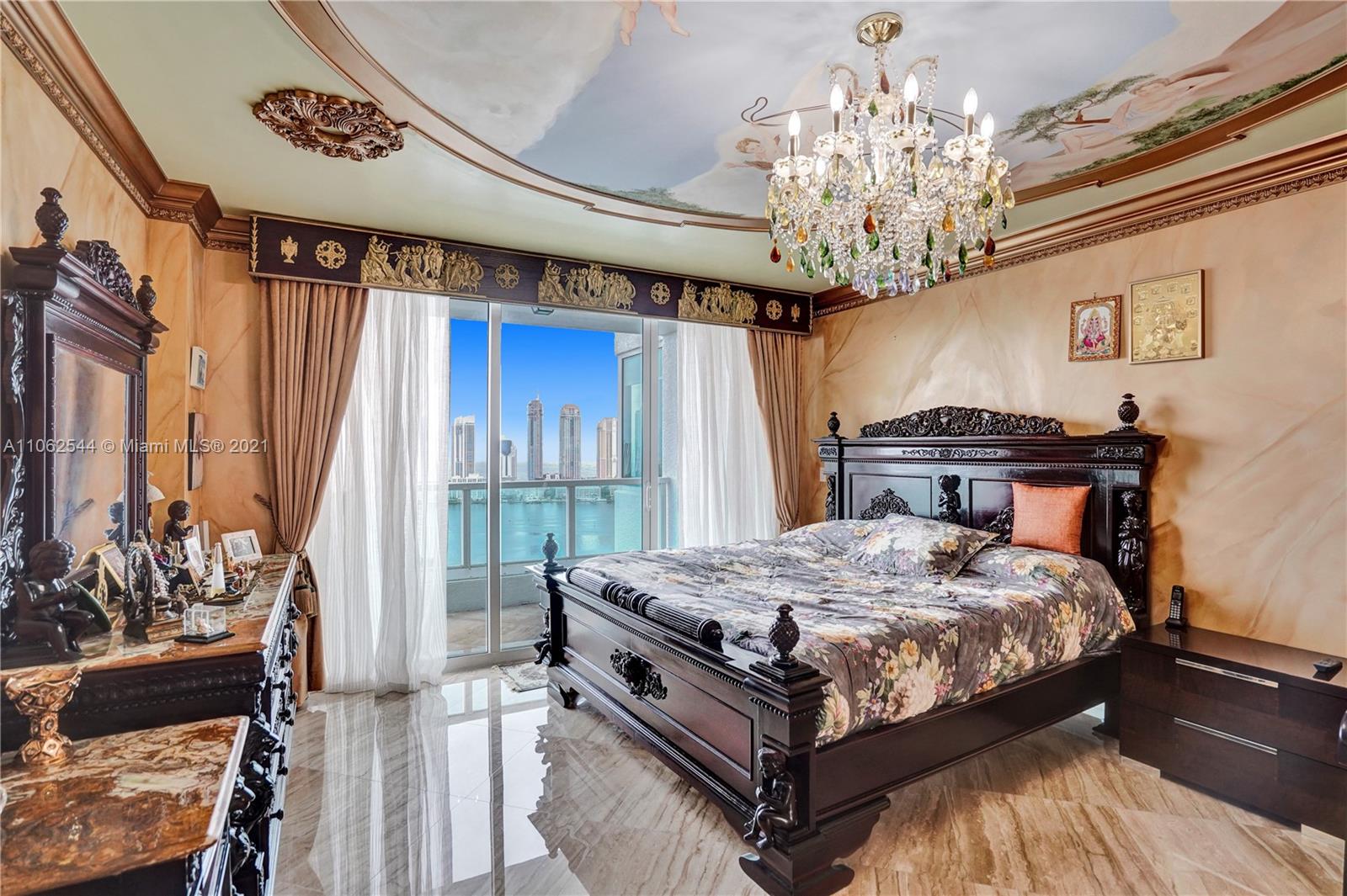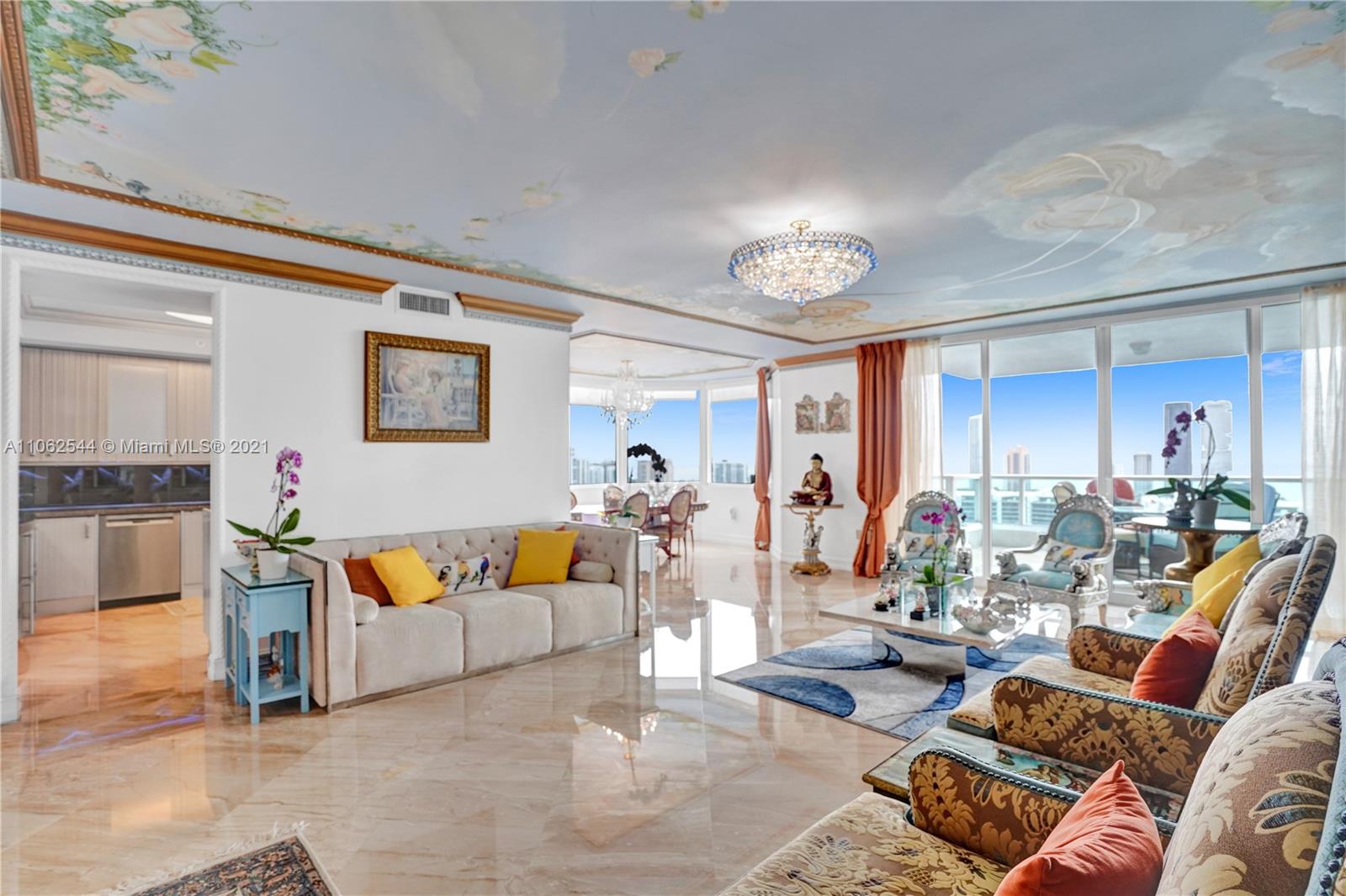 This European inspired Penthouse in the exclusive Peninsula I offers 4 bed 4 bath, 3,620 sqft plus 3 balconies overlooking breathtaking Ocean, Intracoastal and Bay views. The elegance of this luxury home offers pristine marble floors, hand painted ceilings by exclusive artists and craftsmen, chef’s style kitchen with top-of-the-line appliances & dual oven, custom-made closets and unique crystal chandeliers to light up your day. The master closet is a Dream Come True. Art pieces , designer bags and more for sale. Can be sold fully Furnished. THIS IS A MUST SEE!!2 assigned parking plus free parking for any additional car.