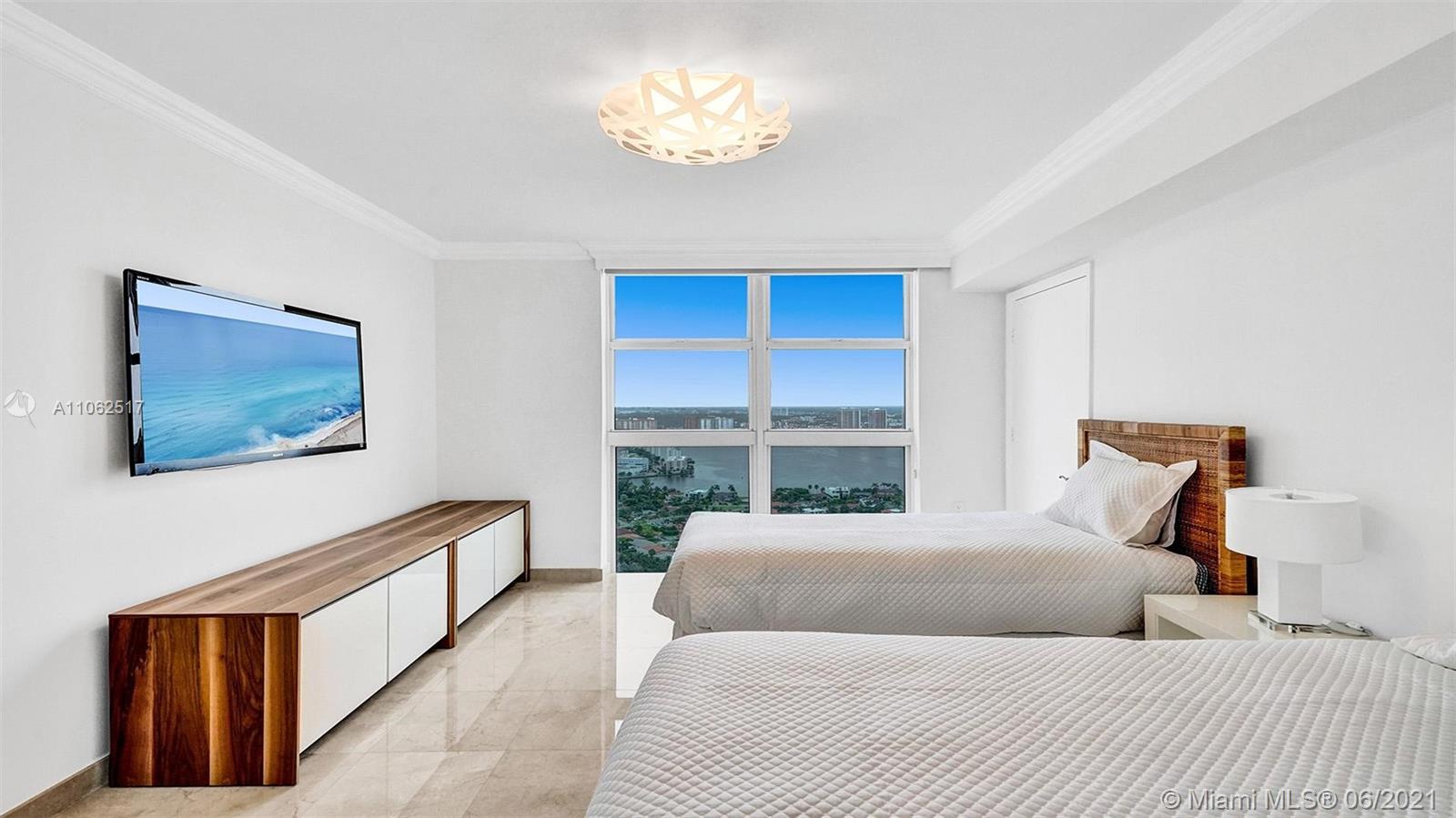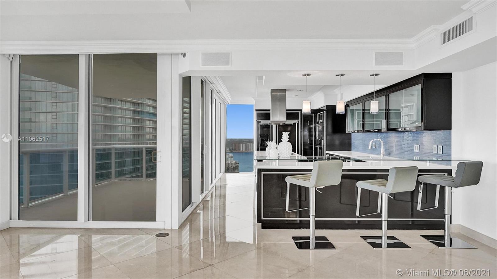 Sublime views will make you run not walk to this spacious home in the sky. The instant you walk into your private double elevator foyer entrance and open your doors, Ocean and Sky will greet you. This condo is not only spacious, light, and bright but it's a smart home. So smart that when you turn the lock at the entrance, all lights, shades, and music will go on at the same time. AMAZING. Three fabulous bedrooms, each with a gorgeous view. The owner's suite has added incredible closet spaces, and the bathroom offers a double sink, double showers, and a jacuzzi tub to relax in and soak up the views.This home has been completely buffed, painted and prepped for the pickiest of buyers. Really, all you need is your toothbrush.