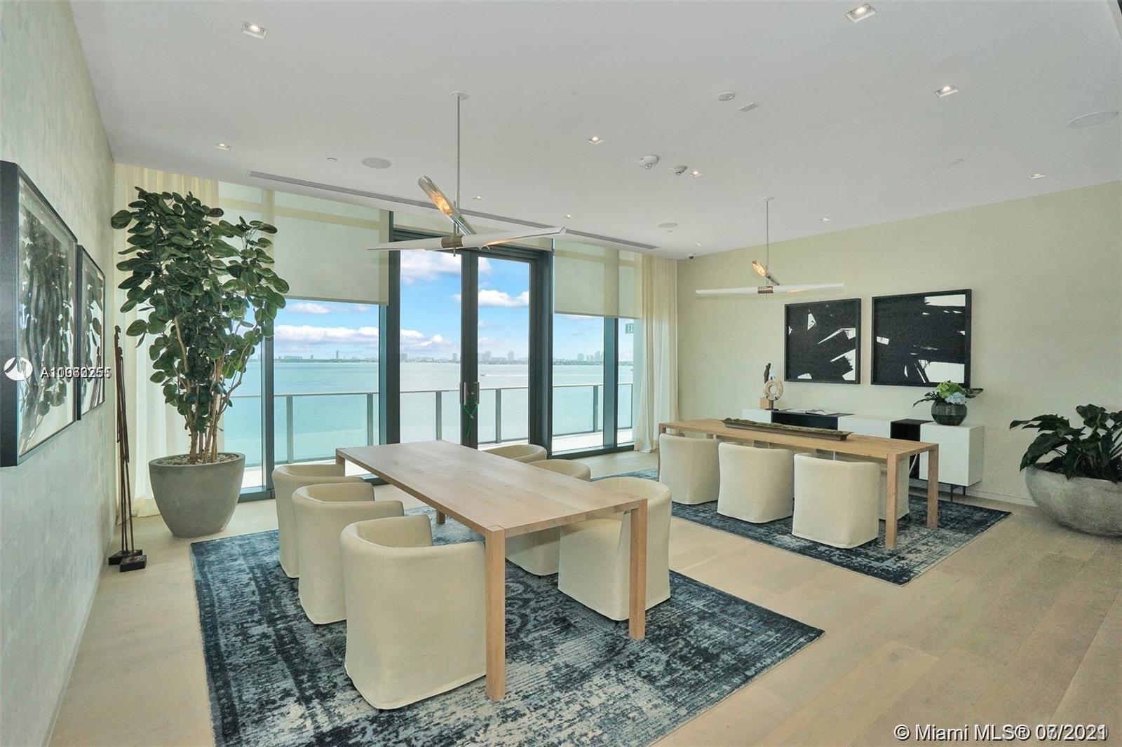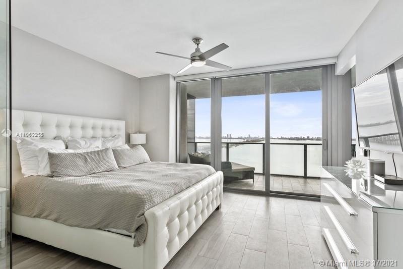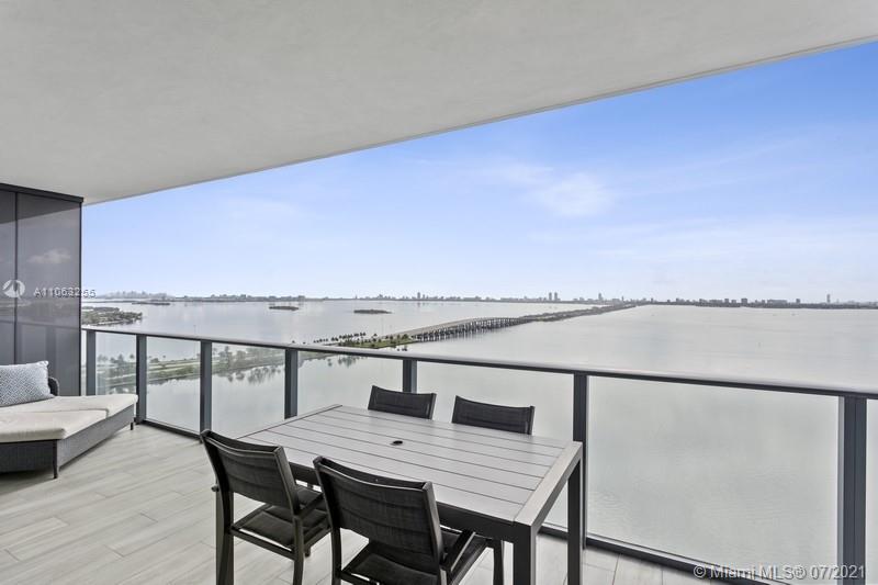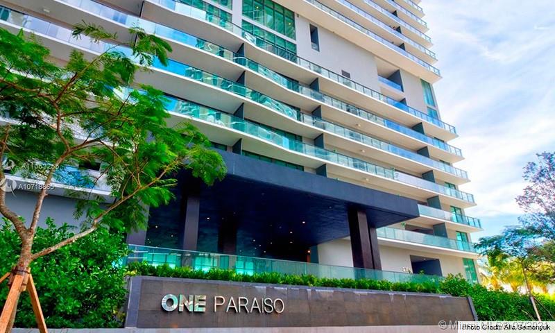 Enjoy the breathtaking views of Biscayne Bay and Ocean. This upgraded 1 bed + Den 1.5 bath condo features Marble and Striato Porcelain floors throughout. Beautiful European Italcraft cabinets throughout kitchen with full wolf appliances. Luxurious spa bathroom with rain shower, soaking tub, his and her vanities and more! Electric control blinds and black out blinds in primary bedroom. Many upgrades throughout! Lutron lighting throughout. Covered parking, 1 assigned space next to elevator, plus valet spot available. Enjoy all of the amenities of the ONE PARAISO, 3 Pools, jacuzzi, sauna, steam room, theater, fitness center, business center, piano bar, marina, tennis courts and more! Close to entertainment and the finest restaurants. PET friendly community!