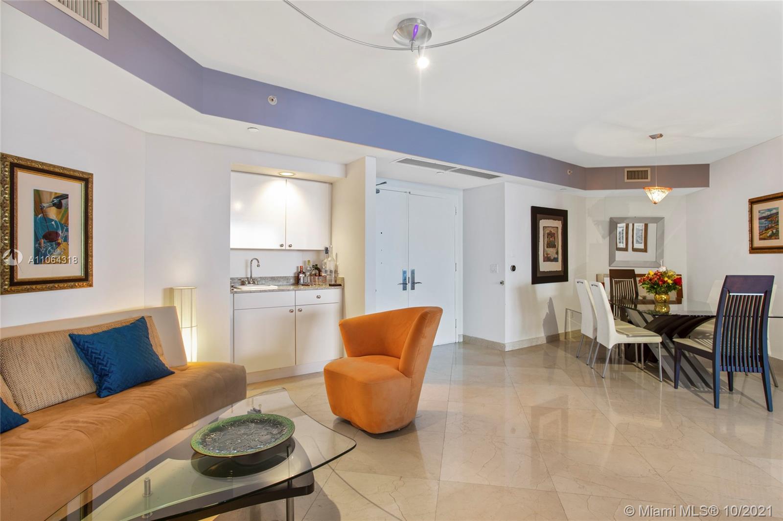 Unobstructed endless ocean views from this large 2 bedrooms/2 full bath plus den residence. An abundance of natural light with floor-to-ceiling windows and balcony overlook the ocean. Large suite with spacious walk-in closet. The main bathroom with separate shower & Jacuzzi. Beautiful marble floors throughout, double door entry and elegant lighting fixtures. Unit is furnished - TVs not included. 2 storage cages included. The Blue Diamond offers exceptional amenities, and an extraordinary location.