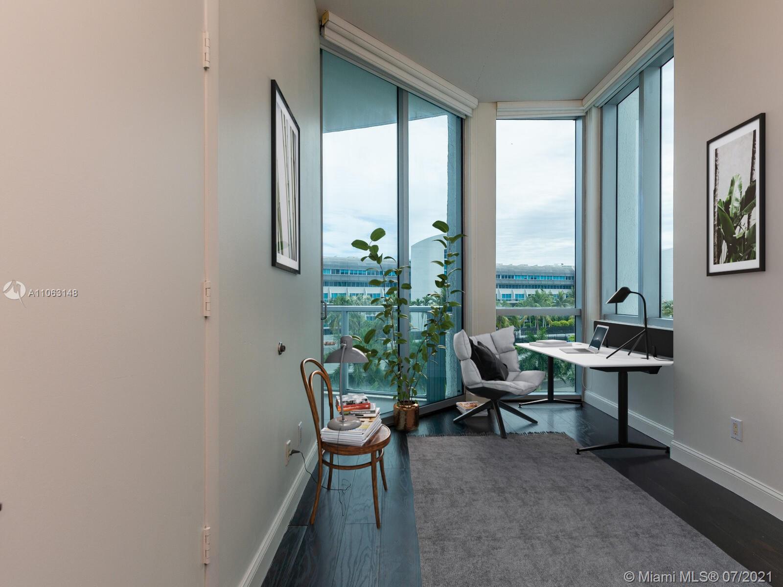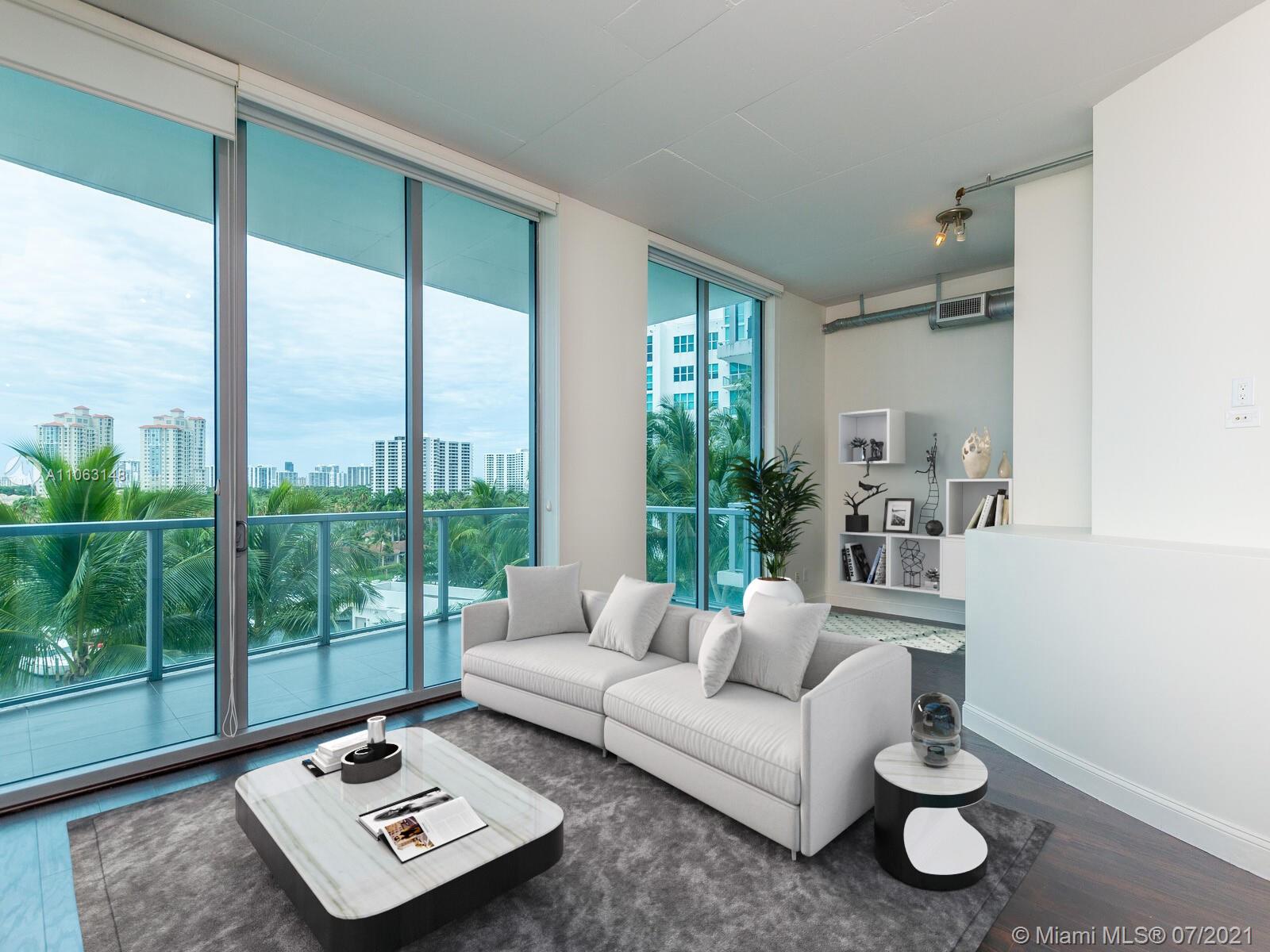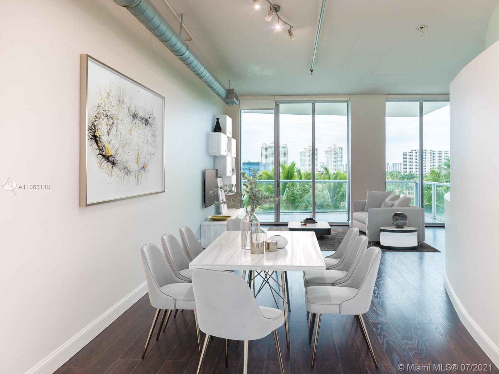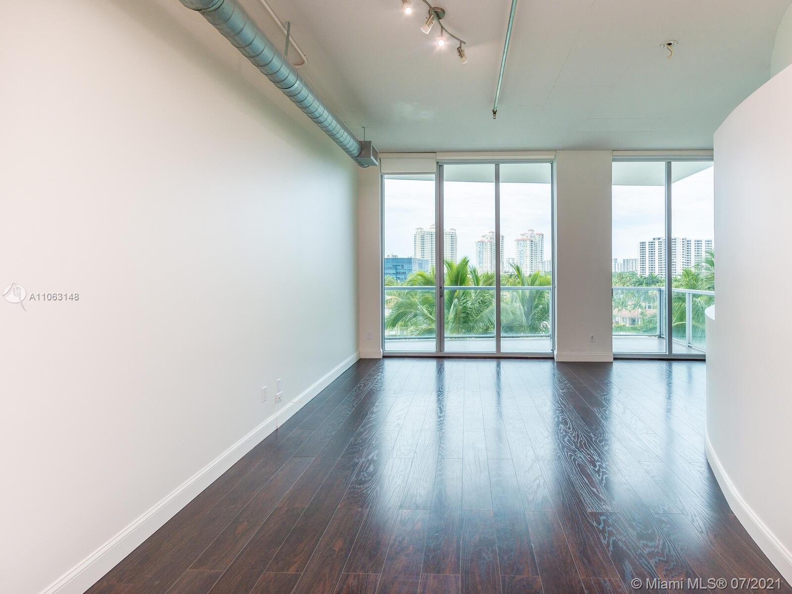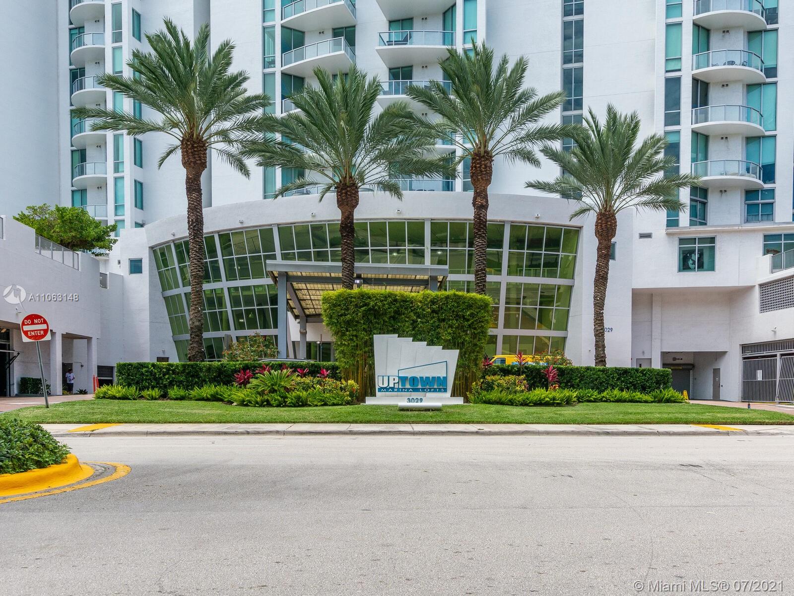 Great Aventura Location. Uptown Marina Lofts it's a modern building with a unique design, that is situated in a secluded tree lined street. This property is offered with 2 assigned parking spaces. The property faces North, overlooking the pool area, marina and city skyline. The High ceilings provide a sense of amplitude and allows the natural light to enter every room. Enjoy seating on either one of the two balconies; one faces North and the second one South. Among the interior features are laminate floors throughout, great kitchen with Kitchen Aid appliances, two bedrooms plus a Den and two full bathrooms. There is a brand new and large washer and dryer. Only four units on this floor. Amenities: A state of the art gym, pool, marina, spa, conference room.