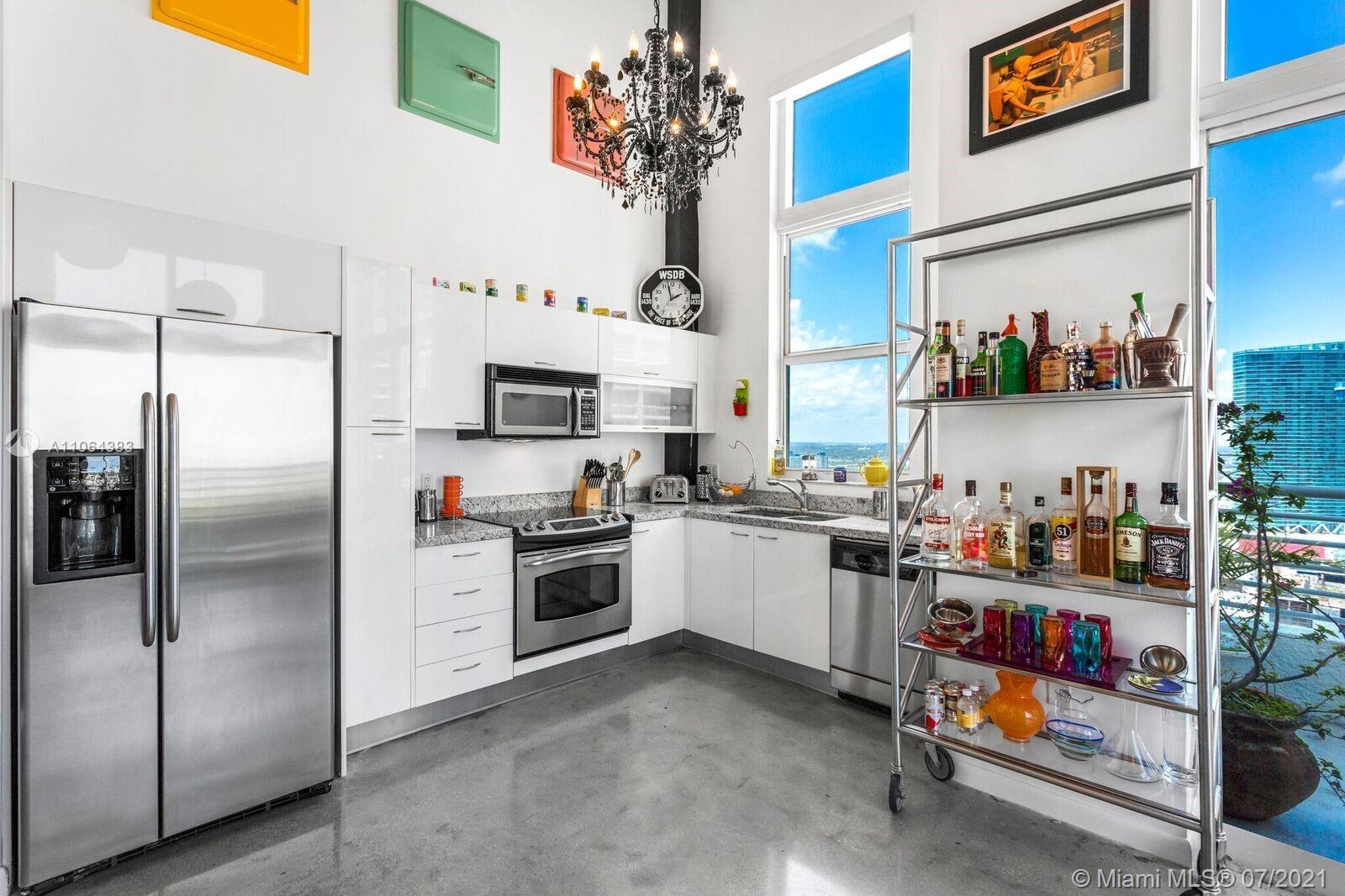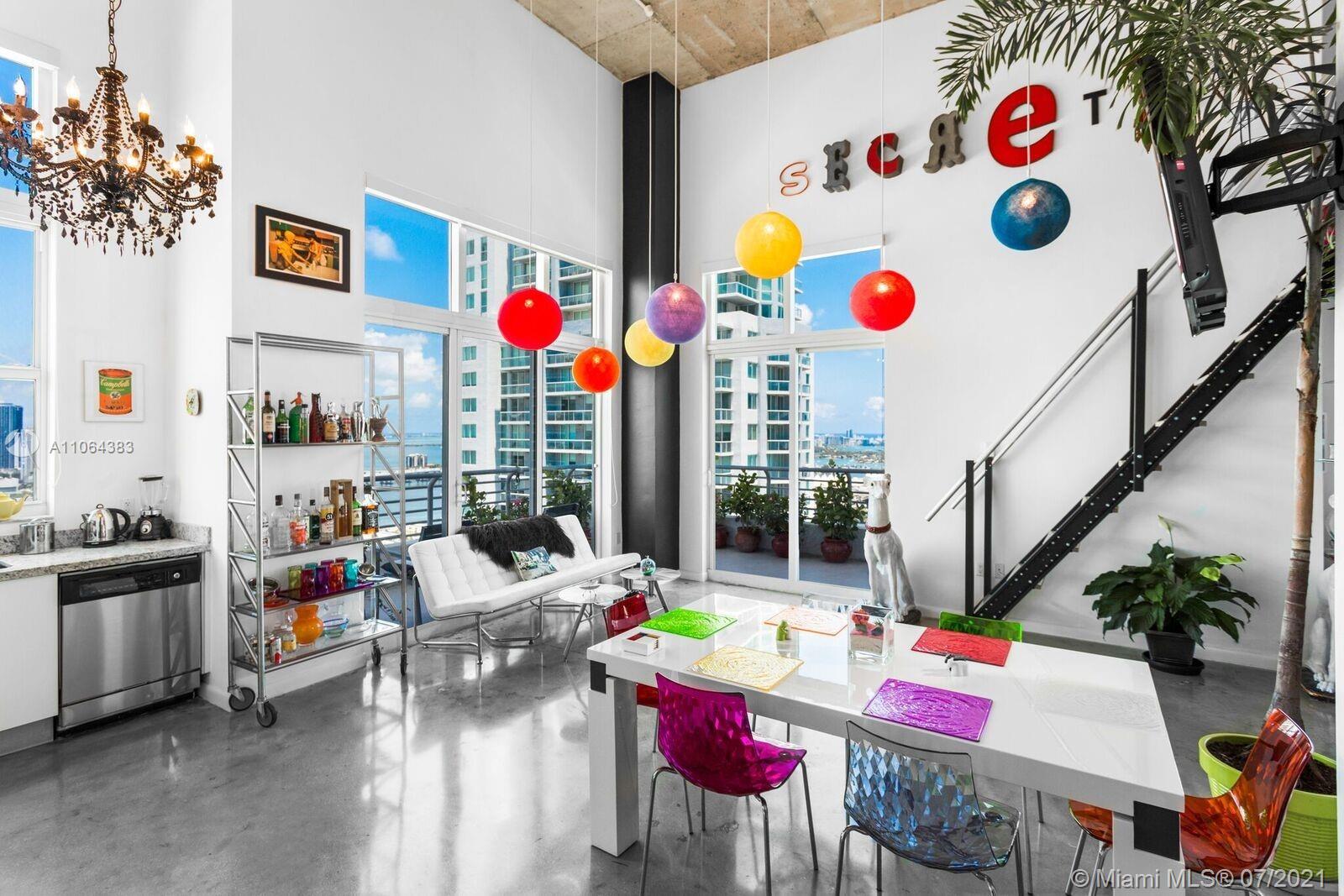 Spectacular views from this Lower PH 3501 Loft II unit- beautifully remodeled & sold FULLY furnished w/20 ft. ceilings, NE corner w/270 degree gorgeous bay & city views, deep extended terraces. Floor to ceiling impact windows w/black out blinds, Nest smart thermostat, European cabinetry, granite countertops, Stainless Steel appliances, glass backsplash, renovated bathrms with LED lighting, polished& sealed concrete flooring throughout. Extra Mezzanine floor adds a bedrm upstairs w/ bay views from the bed! Top of the line amenities: Rooftop Pool/Spa/Sauna/Gym on 36 floor w/360 degree views, Club rm with billiard and WiFi, additional lap pool at ground level, 24/7 Front desk security, onsite mgmt. Parking garage. Metro mover steps away, heart of dwntwn!**UNIT CAN BE SEEN COMMENCING 7/21/21**
