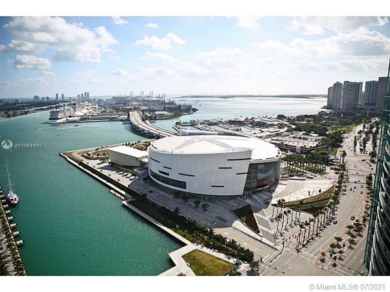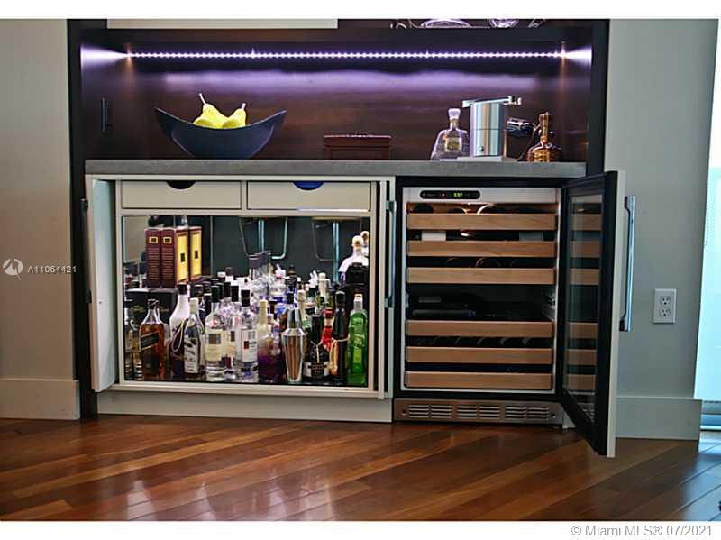 Immaculate 3/3/1 converted into a 2/3/1 to add a private dining experience that can be utilized as a 3rd bedroom if needed. Located on the best line in 900 Biscayne w/ unobstructed Biscayne Bay, Sobe Skyline & City views. Unit features spectacular upgrades including Brazilian Teak Hardwood floors, custom closets, great sized pantry & laundry cabinetry. Custom built-in bar & office desk with LED lighting, wine cooler & polished concrete countertop. Laminated Carrera marble kitchen countertop to protect from damage. Roller shades throughout as well as Blackouts in each of the bedrooms. This unit also comes equipped with its own Private Elevator & Foyer area upon entering. Enjoy top of the line gym, spa, free spinning classes, private Theatre, resident lounge w Wifi, & children's play area!
