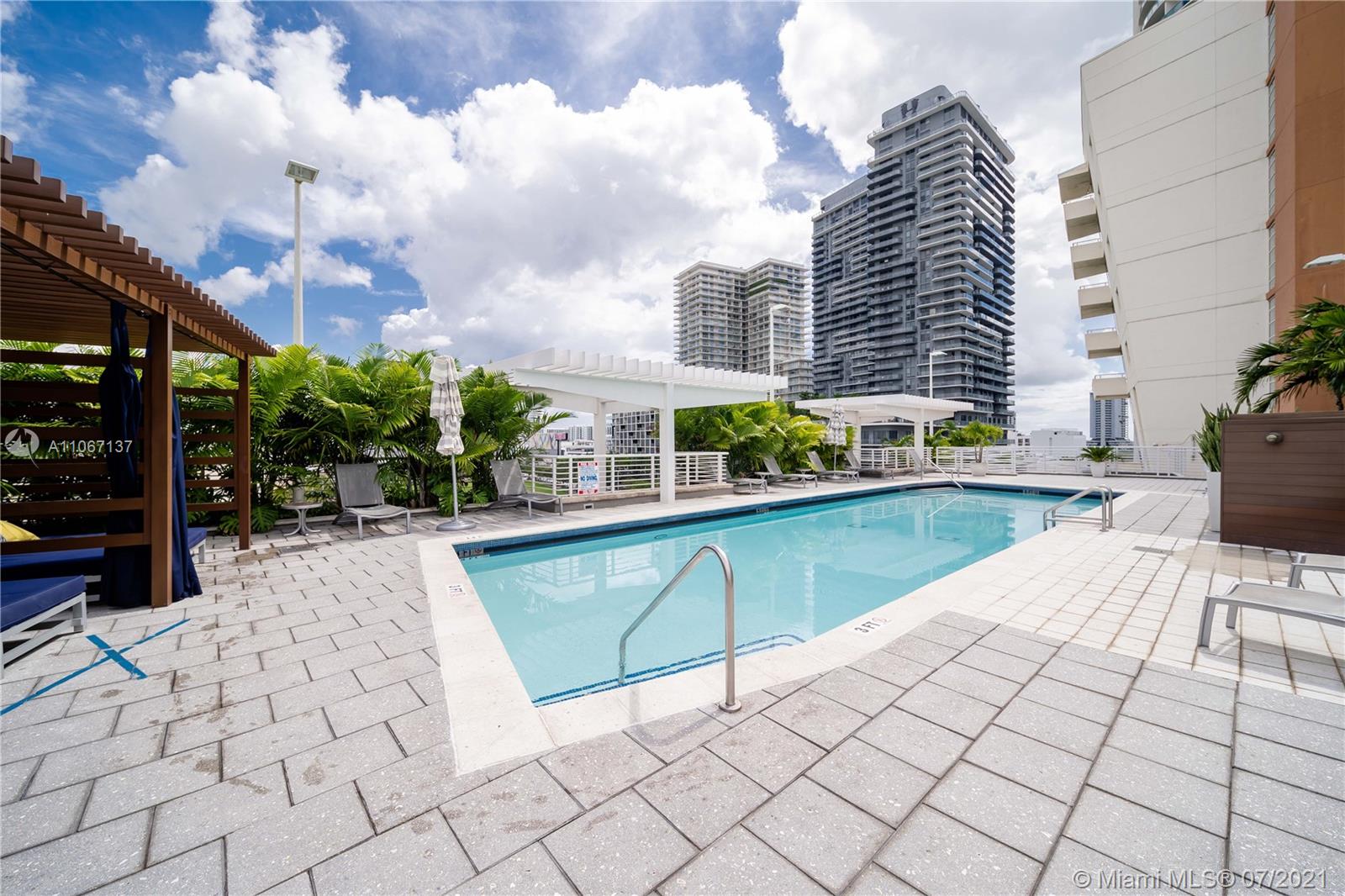 This 1 Bed + 1 Bath Condo features a generous private balcony, floor-to-ceiling impact-resistant glass windows, an open layout, Italian kitchen with stainless steel energy efficient appliances, custom wood cabinetry and stone counter tops, ten-foot high exposed concrete ceilings, ceramic flooring throughout, modern fixtures, spacious walk-in closet, pre-wired for electric, cable & high-speed internet, and full sized washer/dryer. Amenities include a modern lobby, a rooftop swimming pool with sweeping city views and gathering areas that include BBQ grills and mini-golf, a state of the art fitness center, a covered gated parking, 24hr concierge/security, and key card access controlled elevators. Offers a pet-friendly environment and ground level retail and restaurants. No Rental Restrictions