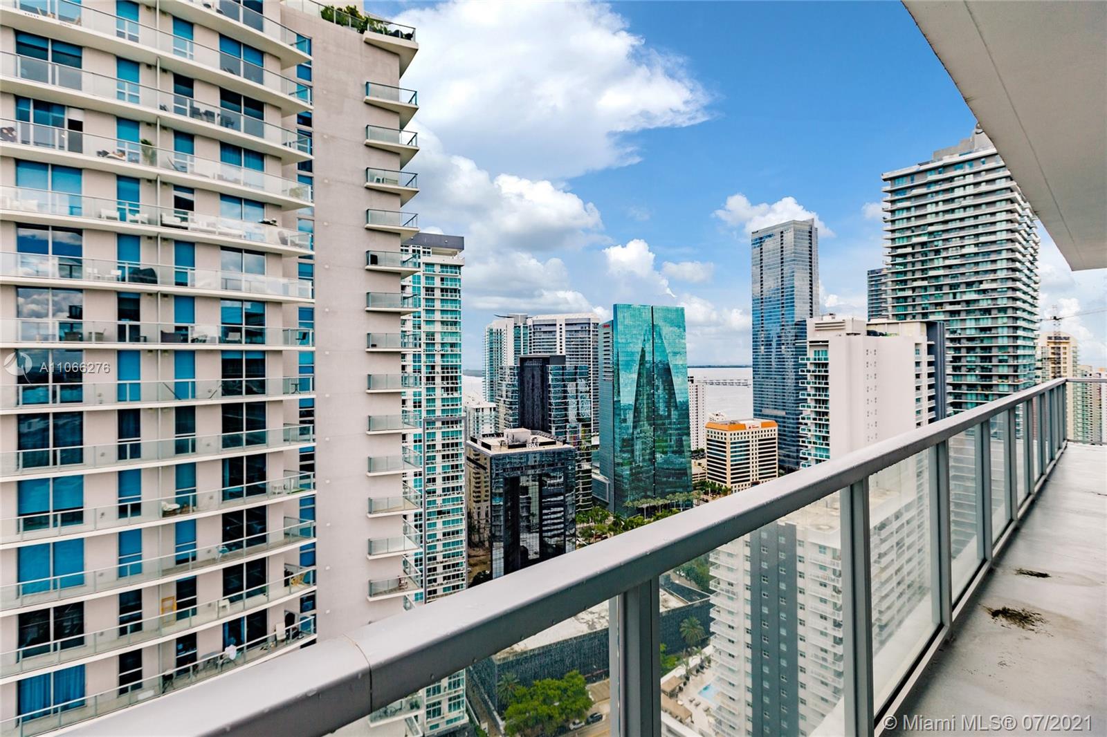 Gorgeous City and Water Views from This Amazing Penthouse! Large spacious 3 Bed with 3 full baths and Big Utility storage in unit. Huge 6 ft deep wrap around balcony that extends to every room. Over 9 ft Floor to ceiling glass windows throughout. Modern wood like tiled floors, roller shades, stainless steel appliances, European Kitchen. Master Bedroom with 2 walk-in closets. All large bedrooms. 2 assigned covered parking spaces (tandem). Best Price per sq ft in modern building in Brickell! Luxury building Featuring Fitness center ,Spa, lap and infinity edge pools, Kids clubroom, Business center, BBQ area and more. Across from people and metro rail. Walk to Mary Brickell Village, Brickell City Center and Brickell Financial area.