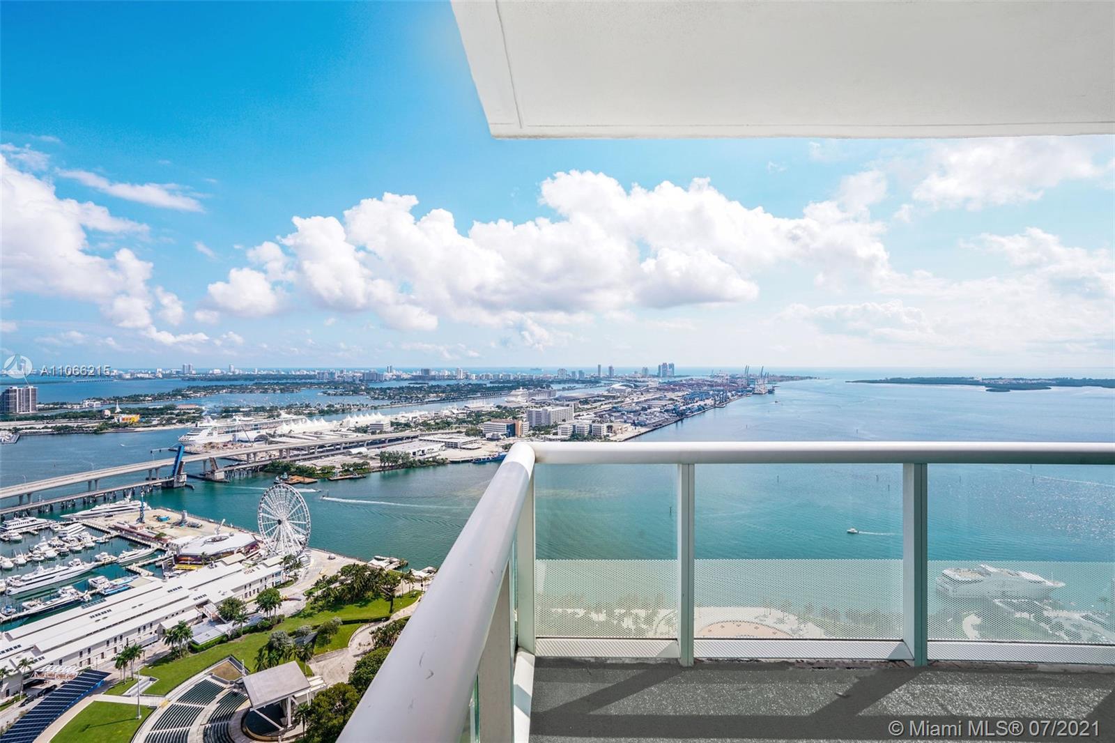 Absolutely stunning panoramic views from this spacious 3 bed, 2 bath corner w/wrap around glass balcony, located in one of Miami’s finest condominiums. Floor to ceiling impact windows-views from every room,-overlooking the ocean, bay & Bayfront Park providing an abundance of natural light throughout the unit. Italian kitchen, granite countertops, marble bathrooms including large master w/separate whirlpool tub and glass shower & dual sinks, great closets including 4 walk-ins, & washer/dryer. Amenities include 24-hour doorman and concierge, state-of-the-art fitness center, valet parking, heated pool w/cabanas & jacuzzi, meditation room, spa, sauna & more. Great location- walking distance to shops, restaurants, arena, preforming arts center & Brickell.