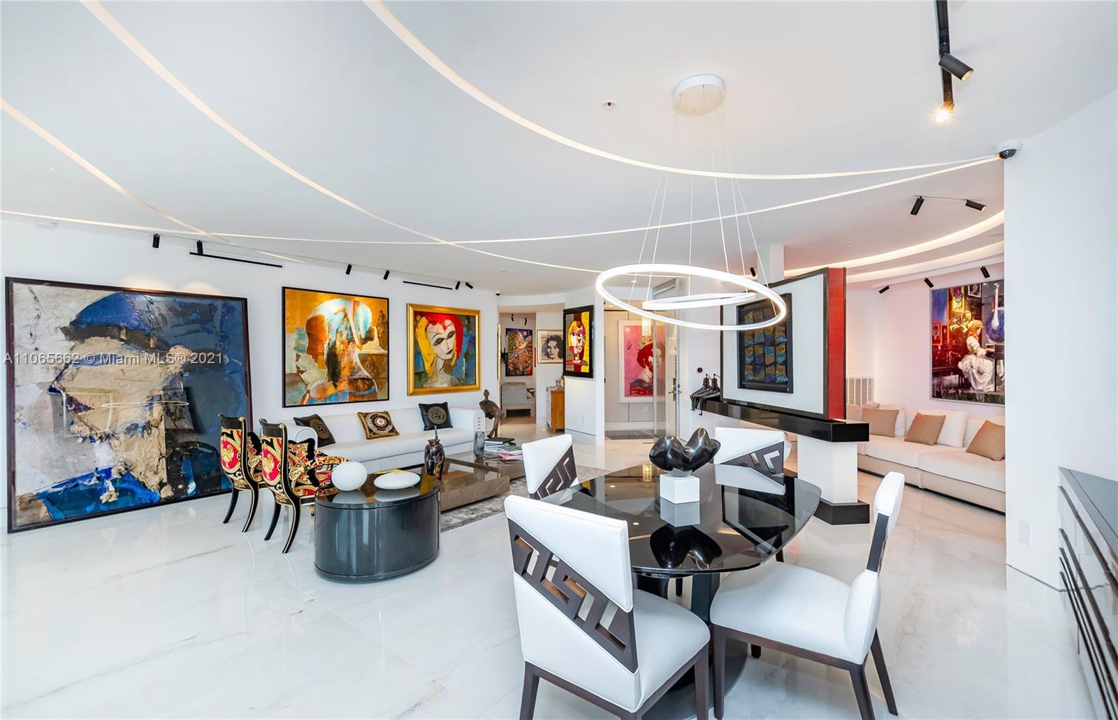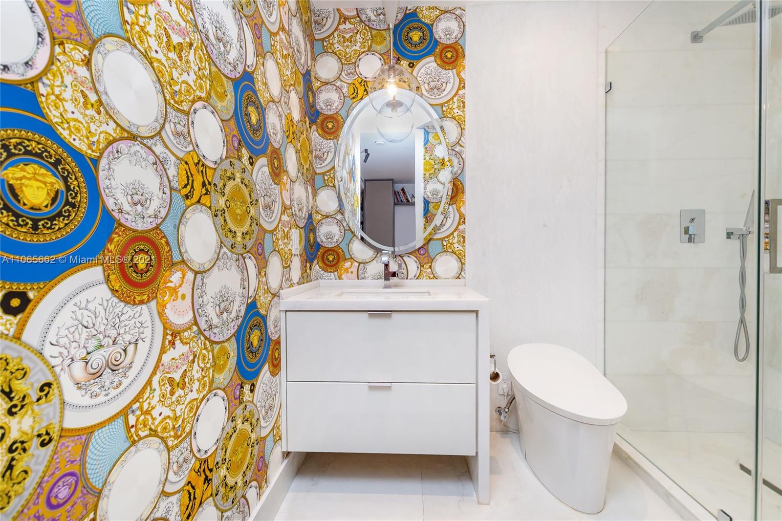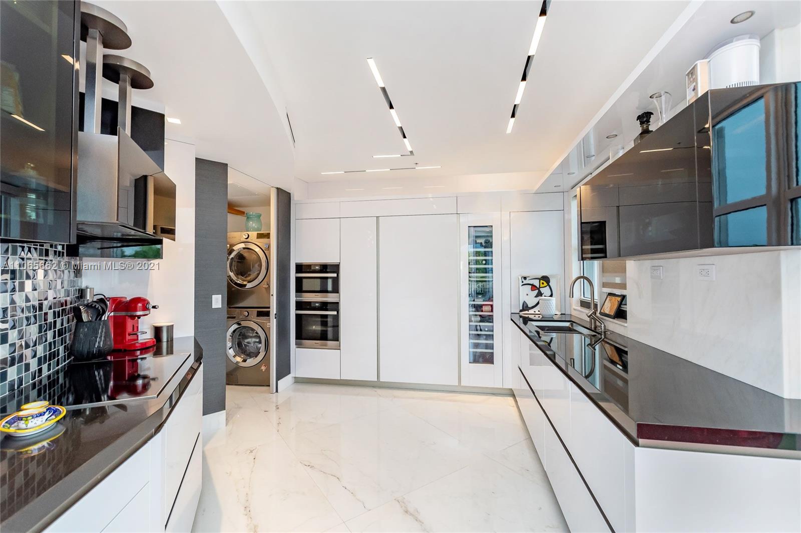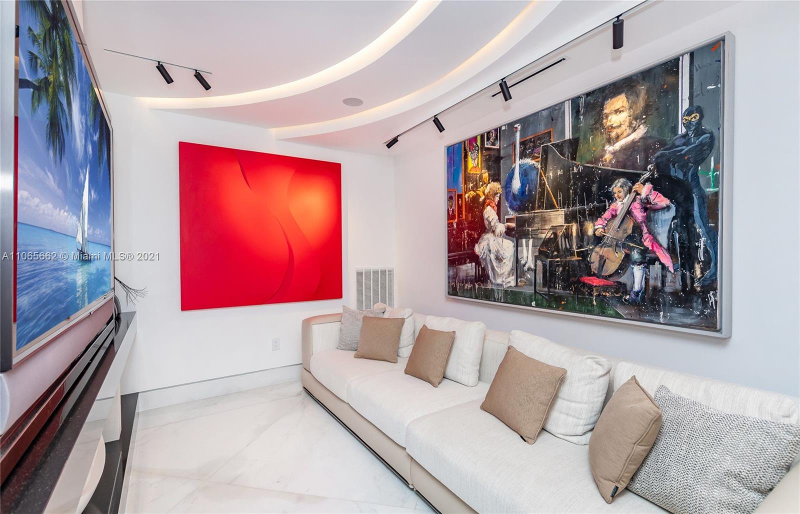 Masterpiece with pure luxury; caring all details in this stunning Versace-style property. All unique and sleek remodeled with high-end materials hand-chosen in Italy and Europe. Exquisite walls of onyx with stunning internal illumination, giving you unparalleled elegance and excellence in this impressive property. Gorgeous flooring, and wood details add distinctive touches at every turn. The kitchen features Miele appliances, custom cabinetry. A private elevator leads you into your exclusive foyer, leading to a modern open space with a breathtaking water view. Unique custom-built family/media area with a mobile TV, offering great entertaining and fantastic family time. A distinctive retractible Tv-System coming from the roof optimizes all space in the cozy master bedroom. You must see it.