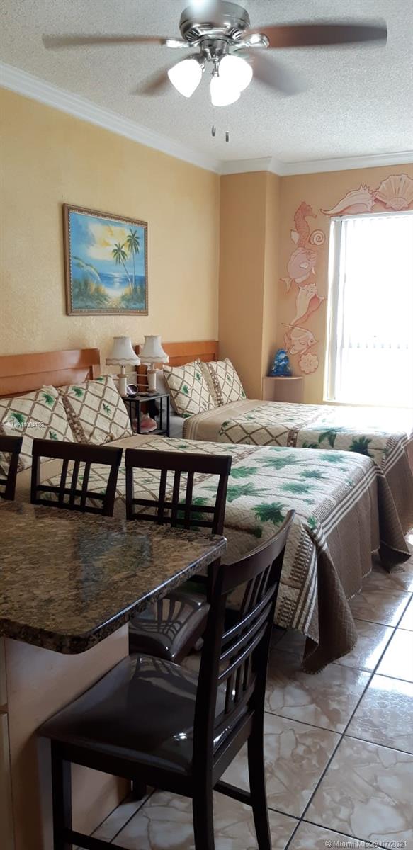 Only unit available with island for a family gathering, dinner, Includes A/C, Electricity, Cable, Water. The best & comfortable unit available, 2 windows north and west family used with the opportunity to rent one day to a long period. Artist painted all the walls. Fully furnish comfortably sleep, 8 people. Vacation and rental are ok. 15 minutes from the airport, access to all services, food within walking distance. This opportunity comes once and gone in no time. Call Fast to see it and enjoy your vacation place.