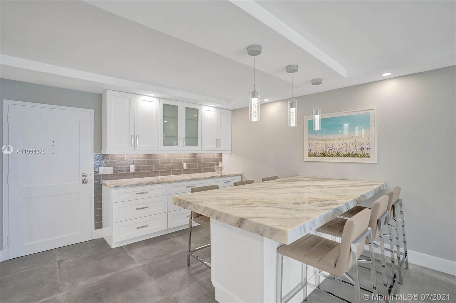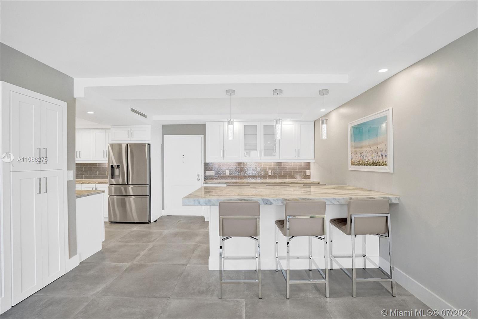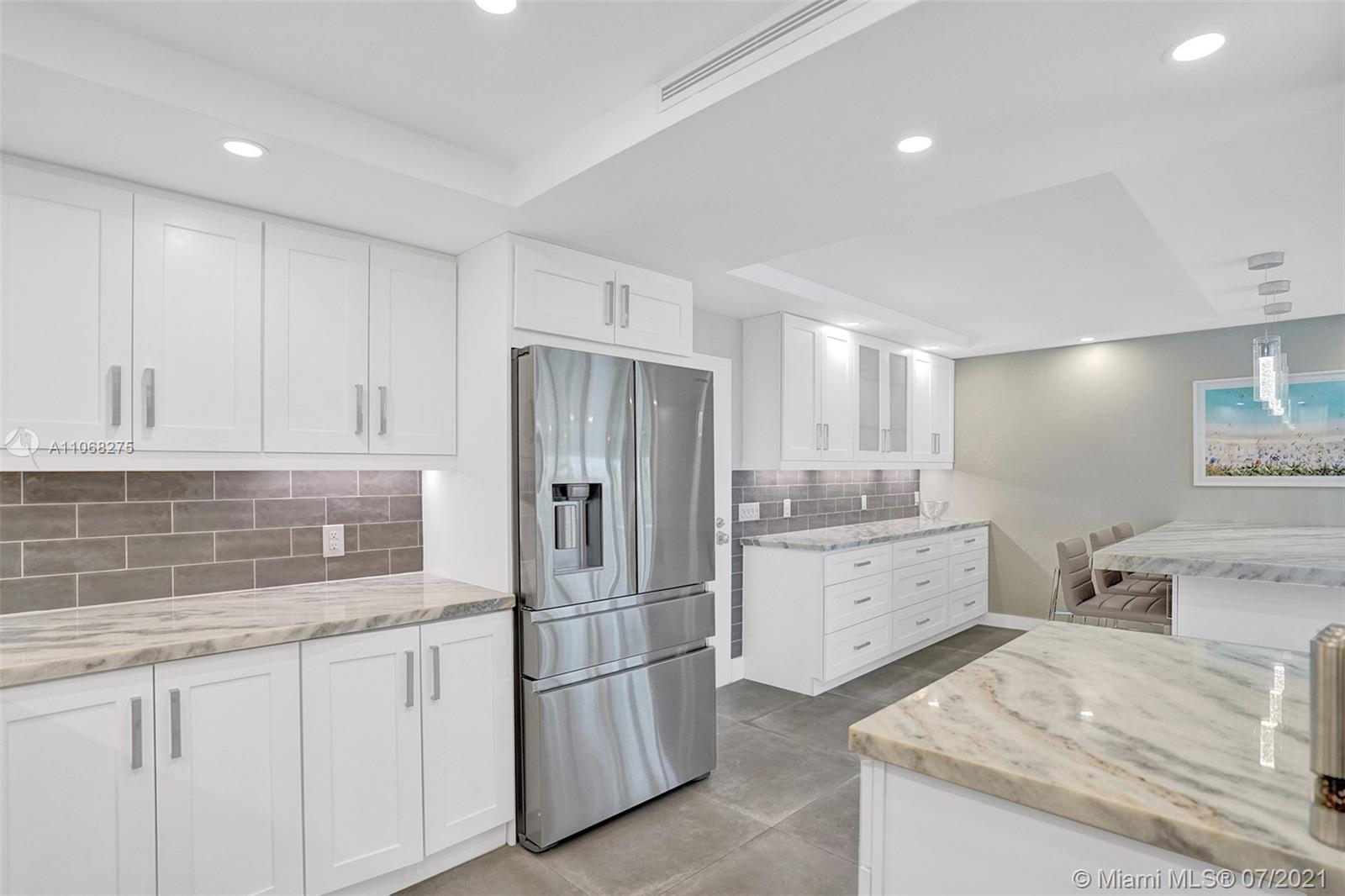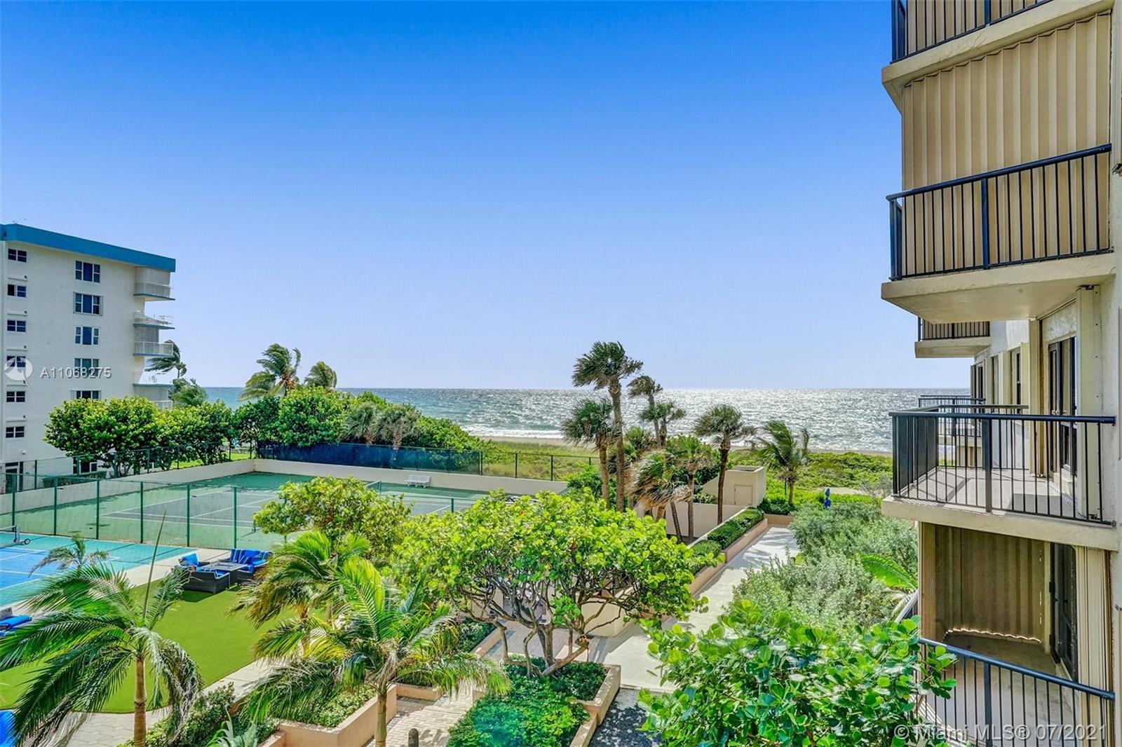 COMPLETELY REMODELED OCEANFRONT FURNISHED/TURN KEY CONDO. LARGE OPEN KITCHEN OFFERS DOLOMITE COUNTERTOPS, STAINLESS STEEL APPLICANCES INCLUDING WASHER & DRYER. PLENTY OF STORAGE, 36" SPANISH PORCELIAN RECTIFIED TILES THROUGHOUT. CUSTOM DOORS & HARDWARE, UPGRADED ELECTRIC INCLUDING SOFFITS WITH LED LIGHTING. WOOD PLANK WALLS IN LIVING ROOM & MASTER BEDROOM. STUNNING BATHROOMS AND SPACIOUS BEDROOMS. CUSTOM LIGHT FILTERING & BLACKOUT ROLLER SHADES. ENJOY THE OPEN BALCONY WITH A BEAUTIFUL OCEAN VIEW AND LUSH LANDSCAPING. STORAGE UNIT, SMALL PET WELCOME. OCEANFRONT HEATED POOL, BBQ, TENNIS, BOCCI & PICKLE BALL COURTS, GYM, SAUNA, 24/7 SECURITY AND MORE. PLENTY OF GUEST PARKING. OKAY TO LEASE IMMEDIATELY, TWICE A YEAR, 4 MONTHS MINIMUM.