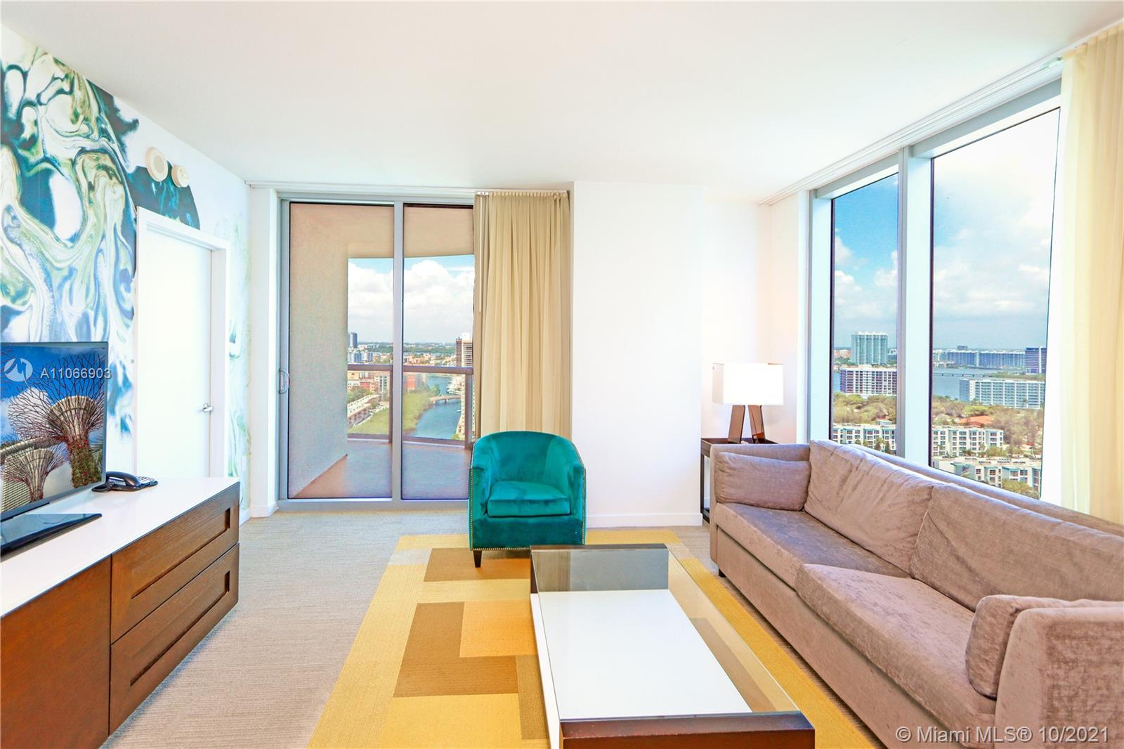 Fully furnished 2/2 apartment with amazing Bay and partial Ocean views at the SOLE Condo-Hotel at desirable Sunny Isles beach. This sale includes 2206 A & B units that may be used or rented separately with the convenient rental program by NOBLE HOUSE RESORTS available for owners. Perfect use as second home, or for an investor with Zero landlord's responsibilities. Resort Style Amenities include: 24 HRS. VALET, FRONT DESK SERVICES, Pool with Snack Bar, Spa, Fitness center, BALEEN kitchen Restaurant Oceanfront Service in pool and Beach, Business Center! THIS PROPERTY QUALIFY FOR A CONVENTIONAL LOAN WITH 25 % - 30 % DOWN PAYMENT. MOTIVATED SELLER . The Hotel program is mandatory with 50 % split (owner can use the unit 180 days per year and does not need to be consecutives days).