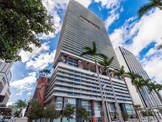 Beautifully remodeled larger studio in 50 Biscayne on 33rd floor with distinct dining area, living area and individual sleeping alcove with wonderful terraced view of complete skyline west. New Air condtioning, floors redone with luxury vinyl plank, bathroom with barn door, individually stacked washer/dryer in unit and sleeping alcove tastefully defined. 50 Biscayne features a beautiful 3 story lobby, 2 level club room with kitchen, 10th floor Infinity pool with resort design, cabanas and day beds, 2 level fitness and spa center with bay views, meditation, pilates and 24 hour valet and concierge service. All amenities and high speed Internet/WIFI as well as direct TV included in HOA, which is low for vicinity. Very pet friendly. Walk to work and enjoy downtown !