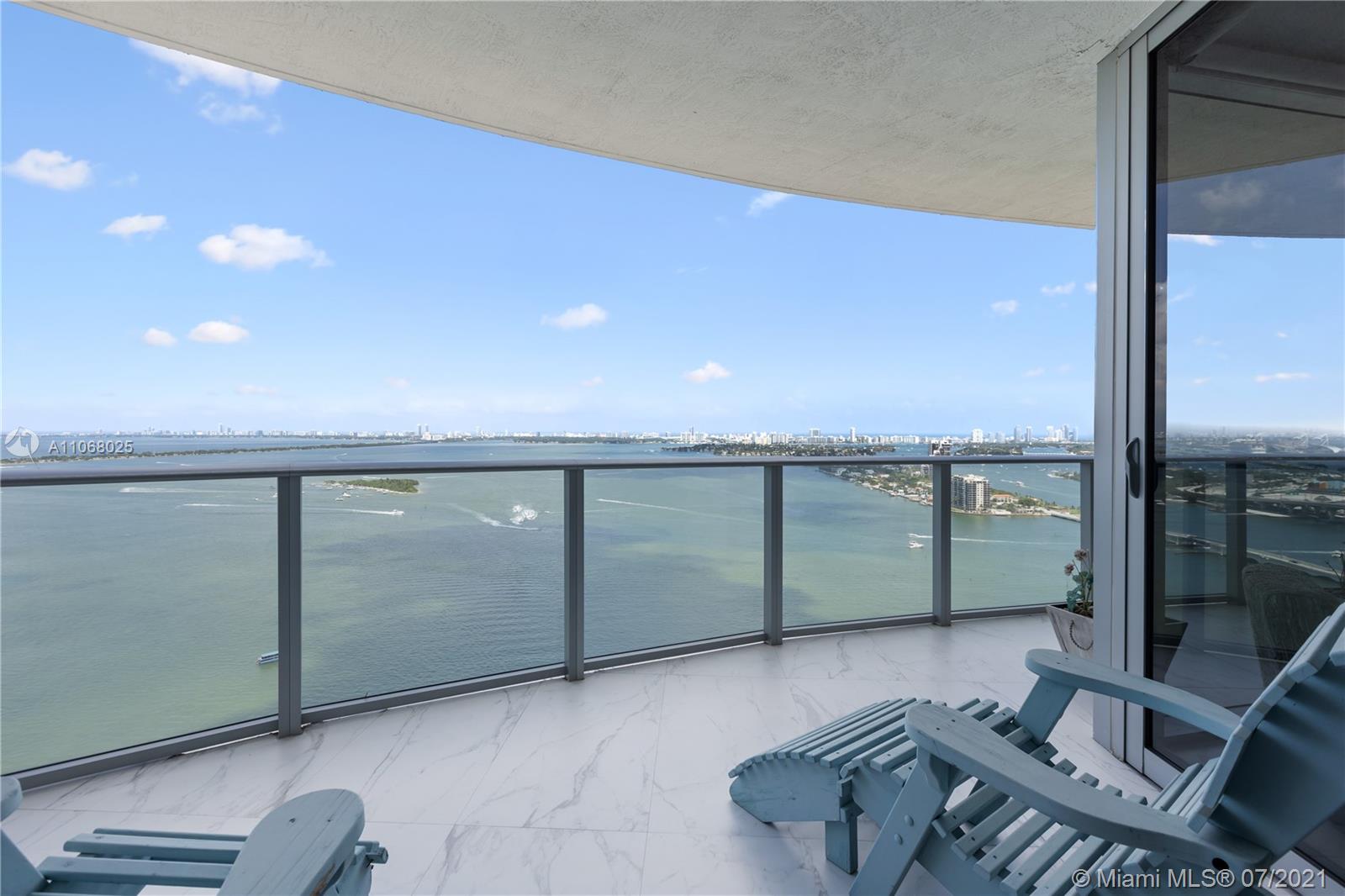 Comprehensive, re-designed to become a true entertainer’s residence unlike any bayfront unit in the building, Aria 3215 brings open modern sophisticated finishes; semi-private elevator & foyer, 46x24 imported porcelain floors, Kitchitalia chef’s kitchen, Bosch appliances & Uline frig drawers, induction stove, 171 bottle wine cellar, pantry, Inalco porcelain countertops and backsplash, 16x5 ft island, 2 en-suites, master suite with his and hers closets, office, powder room, built-in surround system, Legrand lighting, electric shades, laundry rm, 90 degree 600 sf terrace to enjoy Miami’s best views & al fresco dining! Aria built in 2018 w/ unparalleled amenities, 2 pools, hot tub, gym, spa, BBQ area, kid’s room, grand lounge rm, business center, located in the most exciting spot in town!