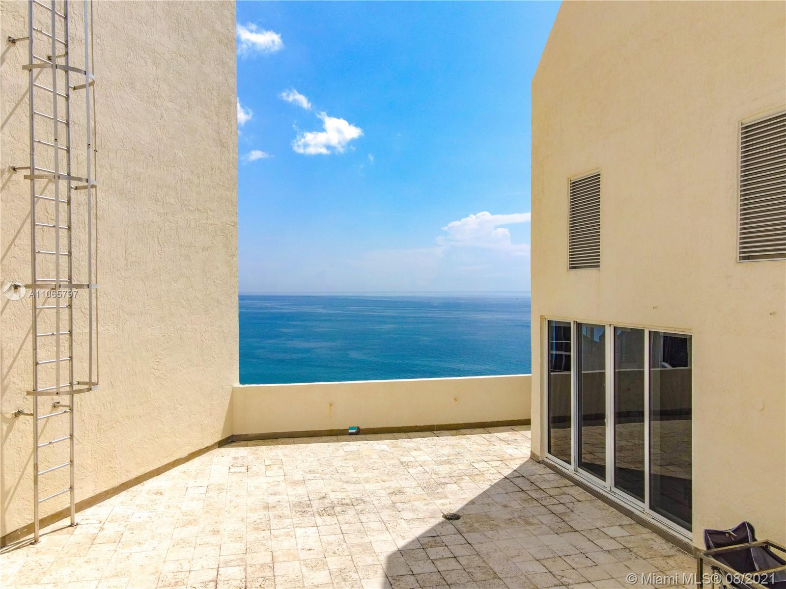 Rare opportunity to own 2 Story Beachfront Penthouse.Move-in and enjoy luxury living in the unit stretching from a sunrise Ocean view balcony to a sunset Intracoastal view balcony. Stairs up to the 2nd floor reveal an entertainment room and over 700sqft of rooftop that can be transformed into a lavishly landscaped outdoor oasis surrendered with the big blue.Architectural designs are available. Start upgrading to your dream villa in the sky. Sunny Isles Beach lifestyle!