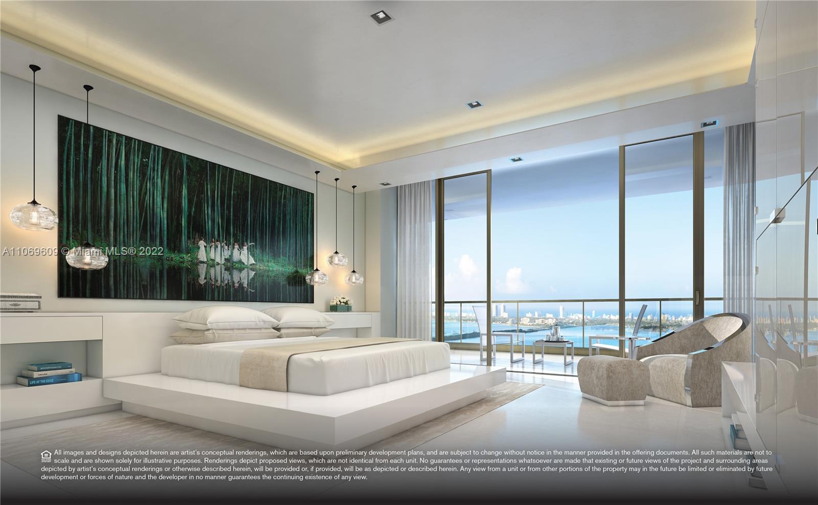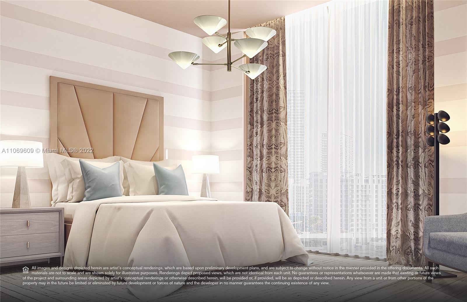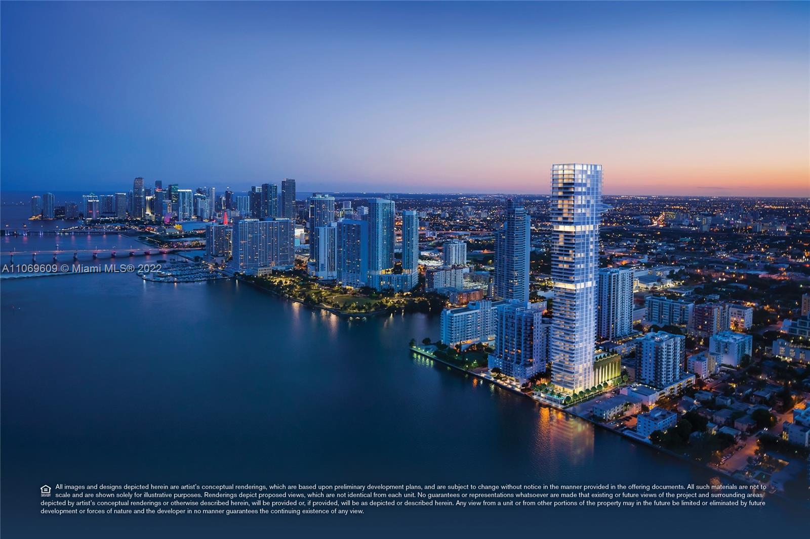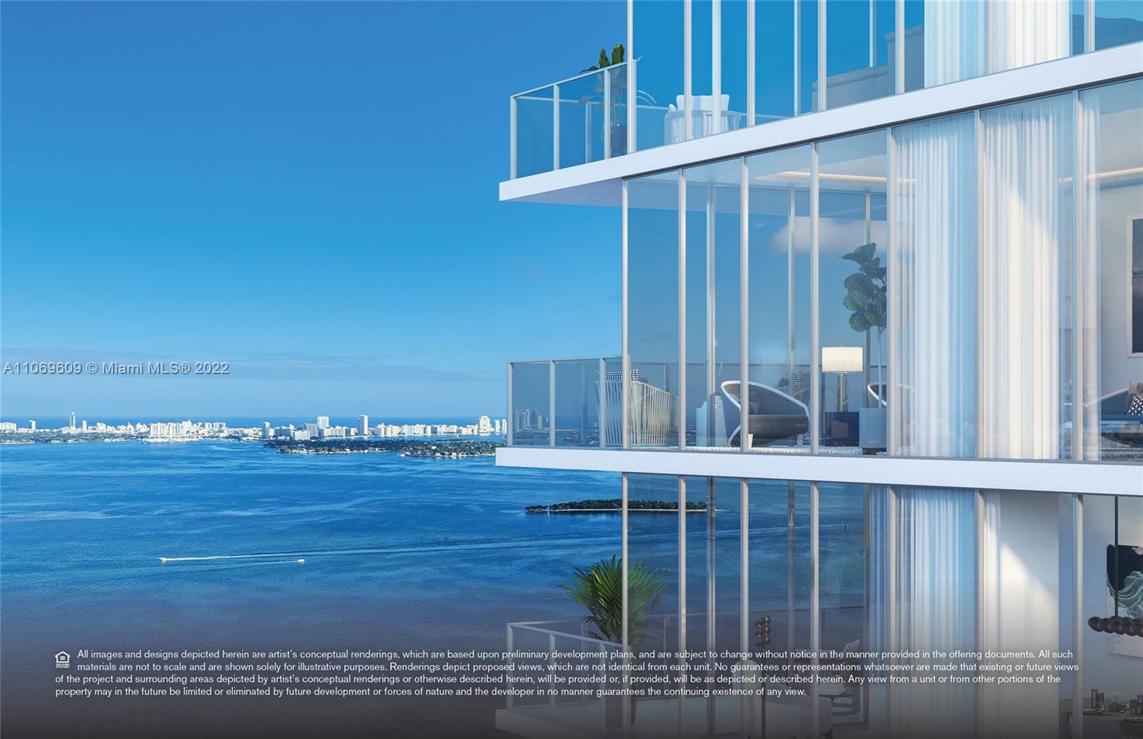 Breathtaking panoramic views from Biscayne Bay, Miami Beach’s skyline, the Atlantic Ocean, downtown Miami to Wynwood, Midtown and the Design District from this gorgeous 3 bed/4.5 bath+ den corner flow through residence in Elysee Miami, Edgewater’s premier resort styled luxury boutique building. Located at the edge of Biscayne Bay at the nexus of world class art, design and culture. Enjoy the everyday experience of white glove butler service, high speed private elevator, airy open interior, floor to ceiling windows, private oversized sunrise and sunset balconies, Sub-Zero and Wolf appliances including a gas cooktop, Waterworks bath fixtures and more. This unit is the only unit available in the 01 line with floors installed.