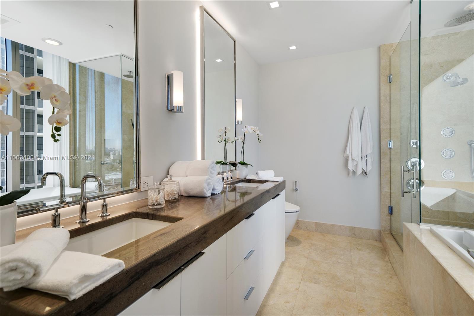 Beautifully finished 2 bedroom, 2 ½ bath residence at the 5 Star St. Regis Bal Harbour Resort. Offering spectacular unobstructed water and city views, expansive outdoor living areas and a gourmet kitchen with built in coffee/espresso machine and wine cooler. The residence includes custom window treatments and whisper quite ceiling fans in the bedrooms. The lux master bath is filled with natural light and features a Toto Washlet toilet, infinity edge spa tub and frameless glass shower. Residents enjoy VIP access to St. Regis hotel amenities including full beach and cabana service, fitness centers w/classes, expertly staffed Remede Spa, residents only and adults only pools and more. Located directly across from the Bal Harbour Shops and a block from the restaurants and shops of Surfside.