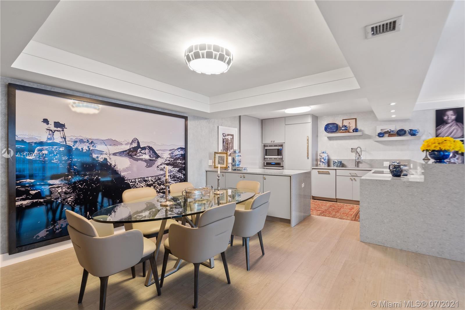 Meticulously renovated waterfront condo in the exclusive community of Grove Isle. No expenses spared on this flawless condo, featuring 2 beds and 2 full baths under 1,882 SF of living space with large hurricane resistant windows and doors to maximize natural light and bay views. New custom designed kitchen with Thermador appliances, new bathrooms including master bathroom with walk-in shower and separate floating tub, double walk-in closets, huge pantry, storage room and large balcony with panoramic water views. Grove Isle is a private and gated community with soon to come newly renovated 8 Har-Tru tennis courts, 3 swimming pools, private beach, marina and social club. It is located minutes away from Downtown Coconut Grove, Brickell and Key Biscayne. This unit is a must see. Move in ready!