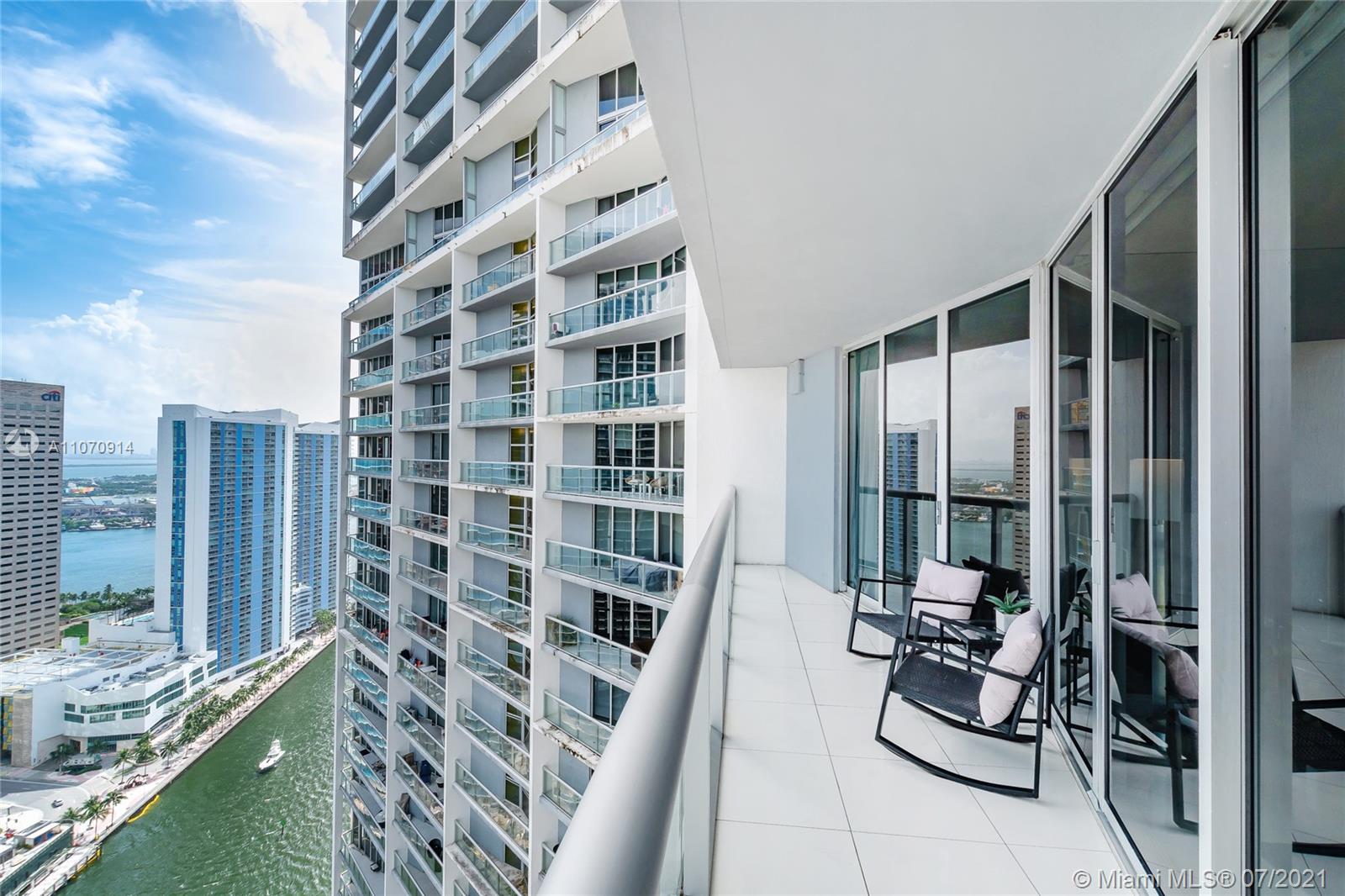 This Luxury unit at the exclusive ICON Brickell features floor-to-ceiling high impact glass doors providing a bright and spectacular Miami River view!! Here you discover a place to enjoy the sunset and ocean breeze, which you can enjoy from the nice balcony or from inside the apartment. Porcelain and wood floors, built-in wood closet, Large bathroom, Washer/dryer, Open Kitchen with Italian cabinetry, sub-zero and wolf appliances. Fully Furnished and ready to move in. All within walking distance to Brickell's finest restaurants and shops. A five Star Amenities building with Grand just remodeled rooftop pool, Fitness Centers, Interactive Concierge services, Valet. One parking space, 24 hours Security. This beauty won't last!!!!