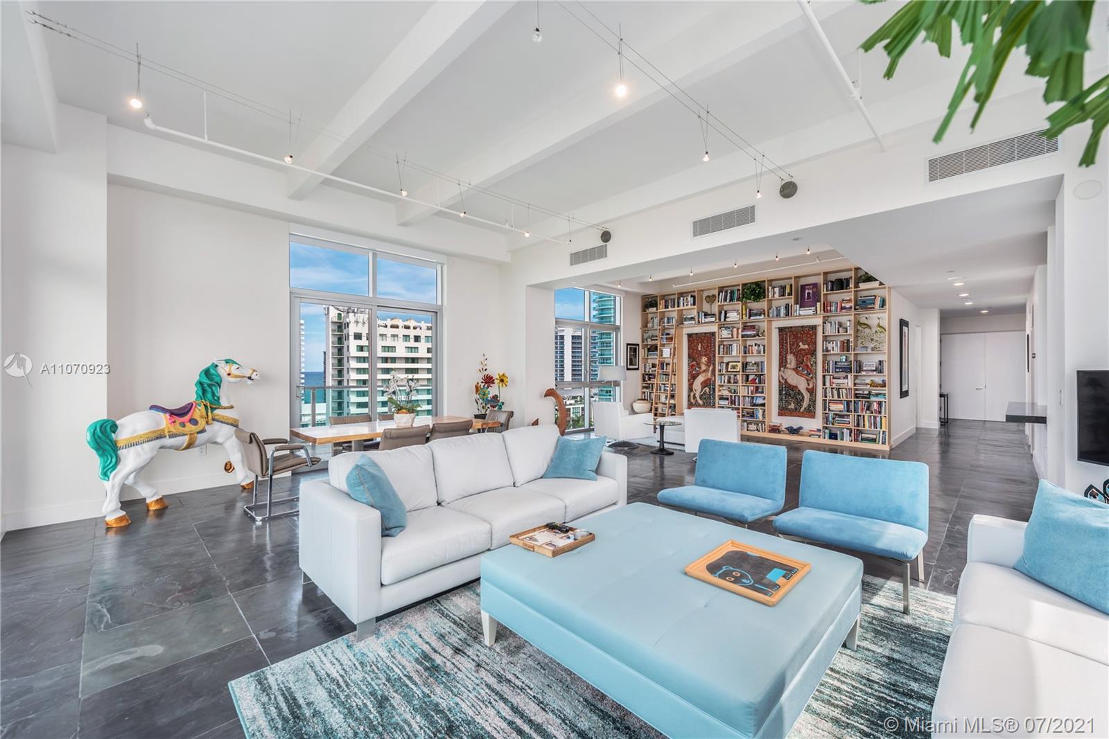 Enjoy luxury living at its finest in this exquisite loft with 12 1/2 foot ceilings. Features include 2 bed/2.5 baths (can easily be converted into a 3/3), bright and open layout with Connecticut bluestone family of slate floors throughout, top of the line kitchen with Subzero refrigerator, Thermador double oven, spacious master suite with large walk-in closet, dual vanity, floor to ceiling sliding impact glass doors and windows, wrap-around terrace with breathtaking views of the ocean, Intracoastal and Miami Beach. Experience living at the exclusive, guard-gated Aqua Island, which offers two pools, a spa, and a 6,000 sq ft fitness center, concierge, 24-hour valet, etc. Tenant occupy until Sept 30th. 24-hour notice required for showing.