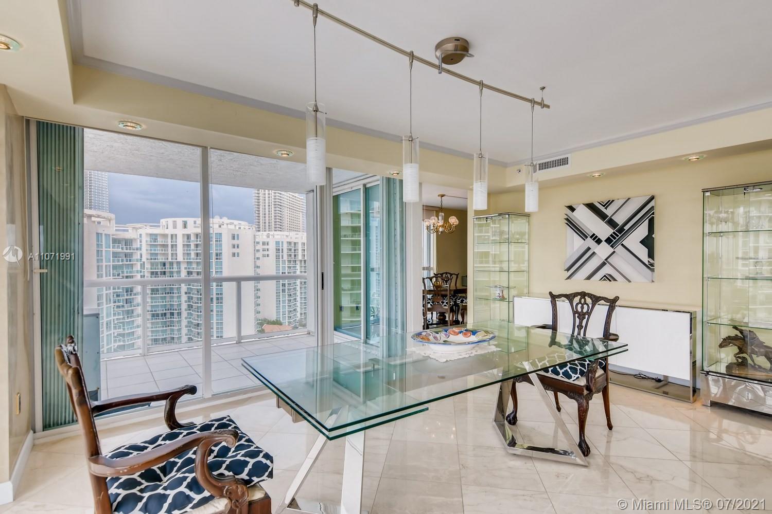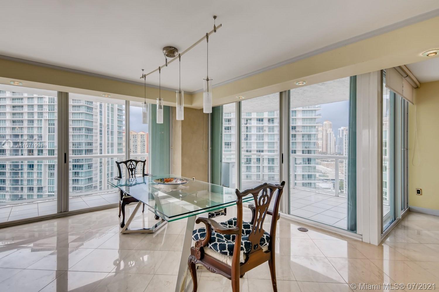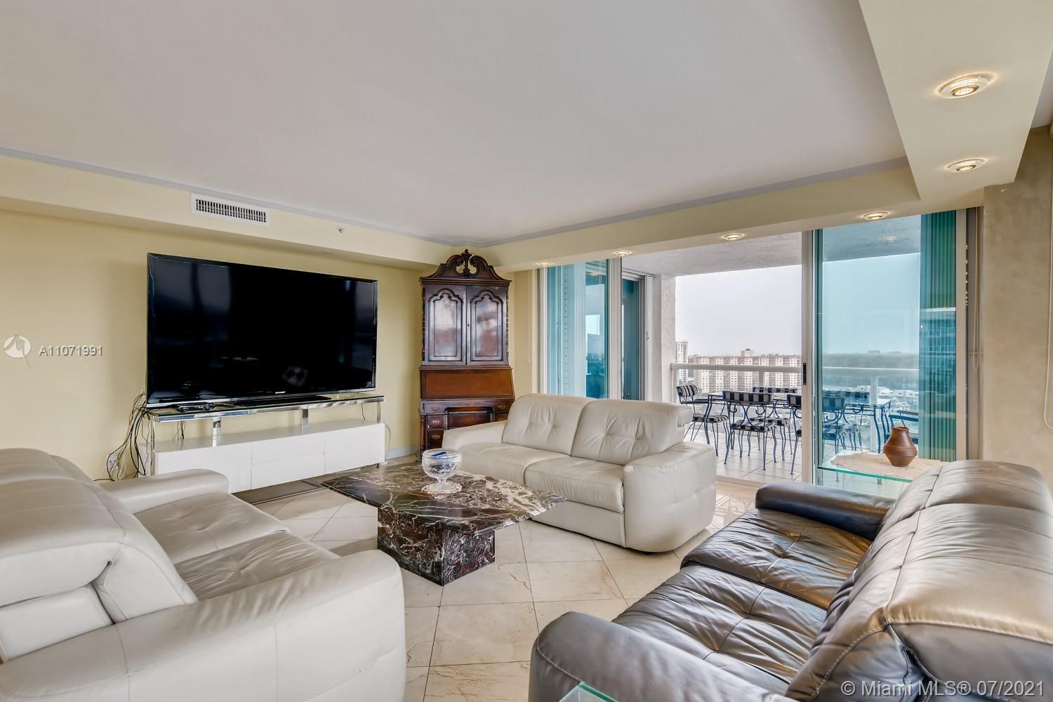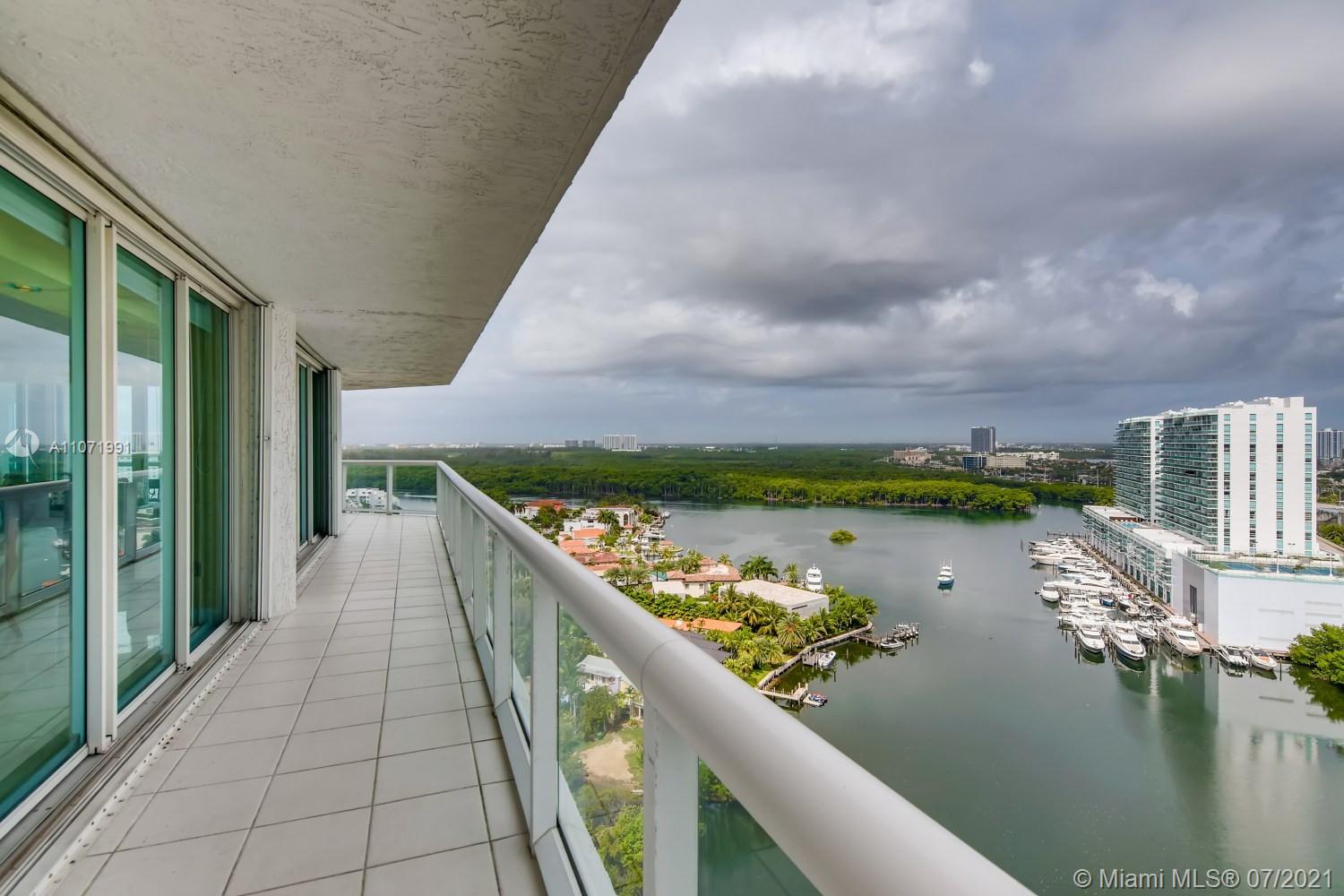 Luxury, club living at its finest, breathtaking views overlooking Sunny Isles. Spacious open living concept with marble flooring. Details include Venetian plaster, exquisite built-ins throughout, dining nook and galley kitchen with granite countertops, stainless steel appliances and pendant track lighting. Master has panoramic views of the Intracoastal and Oleta State Park, and a spa-like ensuite. Two other oversized bedrooms have hardwood floors, recessed lighting and ample closet space, one has its own ensuite. Views of South Florida await with a massive deck and patio! Includes: 24 hour concierge, valet parking, private club and beach, pool, gym, billiard and meeting rooms on site. Features: new A/C.