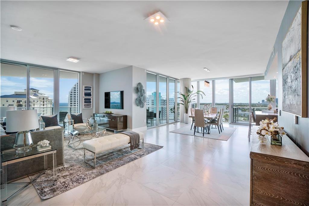 Gorgeous City of Ft. Lauderdale views from the moment you enter this luxurious CORNER residence. Enjoy breathtaking sunset views from the great room, kitchen, & bedrooms or beautiful SE ocean views from the master bedroom & 700+ sq. ft. terrace. This 3 bed, 3.5 bath is equipped w/an open kitchen design w/two-tone countertop island including all top-of-the-line appliances (Sub-Zero & Wolf) as well as floor-to-ceiling glass windows, recessed lighting & automatic shades throughout. Live in the Iconic Paramount, a boutique and newer construction (above ALL other building codes) high rise in the heart of Fort Lauderdale Beach and steps away from Ocean & Entertainment offering world class amenities Can be sold Turn-key with custom furnishings!