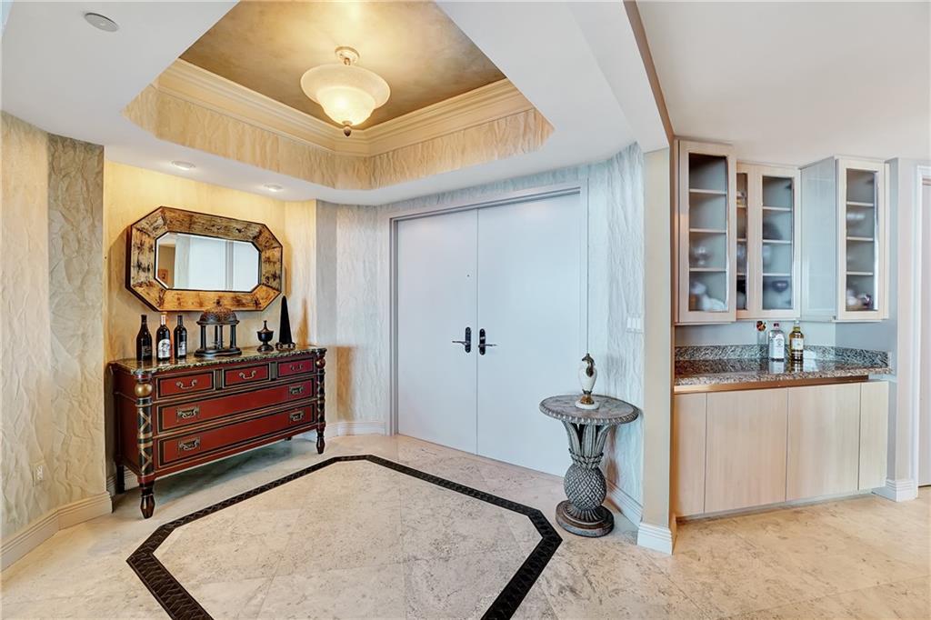 This exclusive luxury Beach and Ocean front condominium located on the 18th floor of the Cristelle, presently renovating the building interior/exterior making one of the safest, freshest bldgs. In all of South Florida. Plenty of room for weekend guest with 4000 square feet of living space, including ocean, beach and intercostal waterway views, walkout through ceiling to floor hurricane resistant glass doors, overlooking a travertine floored terrace,. Three spacious bedrooms with three marbled baths including two showers and two whirlpools. Beautiful 24” Travertine tile throughout, new hurricane shutters, LED lighting upgrades, new plumbing fixtures, hardware throughout. A beautiful wrap around furnished kitchen with ocean and land views equipped with granite tops and upscale appliances!