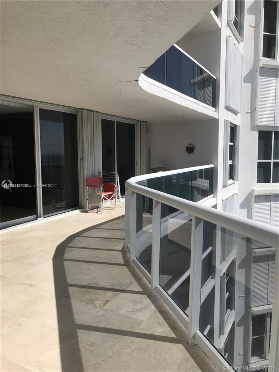 Oceanfront building amazing ocean views from living room, bedrooms, & kitchen, southeastern exposure, large balcony, 2 bedrooms & 2 full bathrooms, 1,530 square feet internal living space, tennis, pool, beach service, 24 hour security, concierage, 2 assigned parking spaces, & valet parking. Centrally located close to many restaurants & shopping, with big shopping center across the street. "As is" purchase with no showings permitted by uncooperative tenants, who might not leave at end of lease. Buyer will accept responsibility for dealing with these tenants agreeing to accept assignment of lease agreement. Water leak in master bathroom shower to unit below buyer agrees to fix, since tenants will not allow landlord's plumber access to fix.