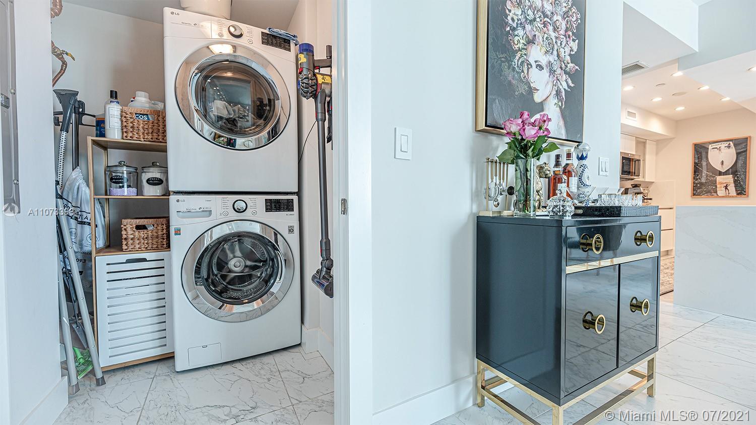 Beautiful 1 Bedroom plus closed den and extra wardrobe system and 2 Full baths, floor to ceiling windows with amazing views at the prestigious Jade Brickell Residences. Unit features remodeled open kitchen with quartz counter top, larger counter for more storage space and double sink with new kitchen faucet. Marble floors (24x24) throughout, new title flooring balcony and closed laundry area. 2 parking spaces (1 assigned + 1 valet). Jade Brickell five-star amenities include 24-hour concierge, guest valet, health spa, gym, Resident Club Room, Waterfront pool, party room and much more. *Unit comes with storage! **