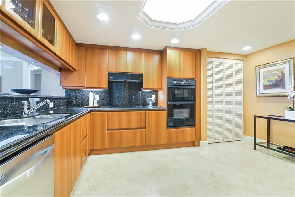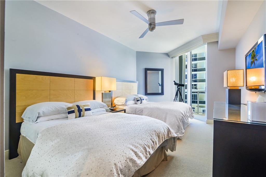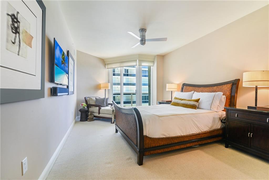 STUNNING ocean &pool views are yours from this 2 bed, 2.5 bath pied-a-terre!Step off the private elevator& enter into this contemporary living room w/ crown molding, saturnia floors,designer couches w/oversized pillows to sink into as you watch tv and relax. All windows have see- through shades w/black outs in the bedrooms. Granite kitchen boasts SS appl, coffered ceiling,SS undermount sink & Subzero. The open counter pass through from the liv room to the kitchen makes entertaining easy and fun! Master bedroom has a WIC, custom desk, queen size bed & sliding glass door to the private balcony. Luxurious marble master bath boasts separate shower & spa tub. Second bedroom has an ensuite bathroom. Artwork, decorative items not included. Owner will stay until Jan. 15, 2022.