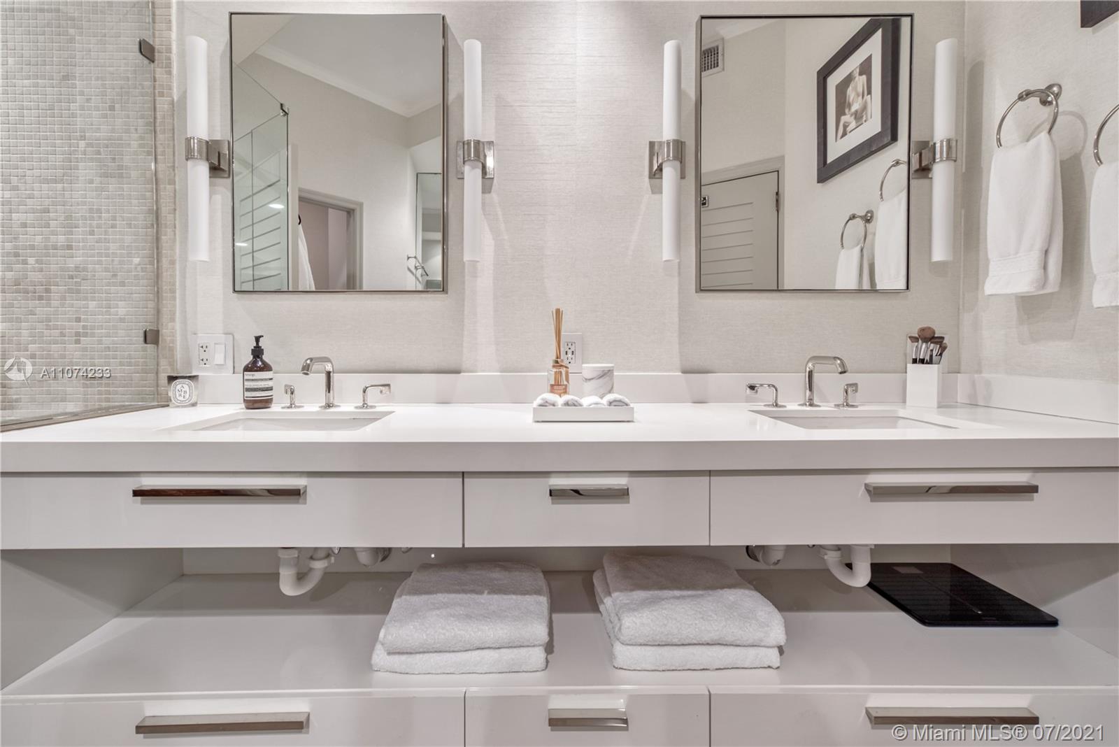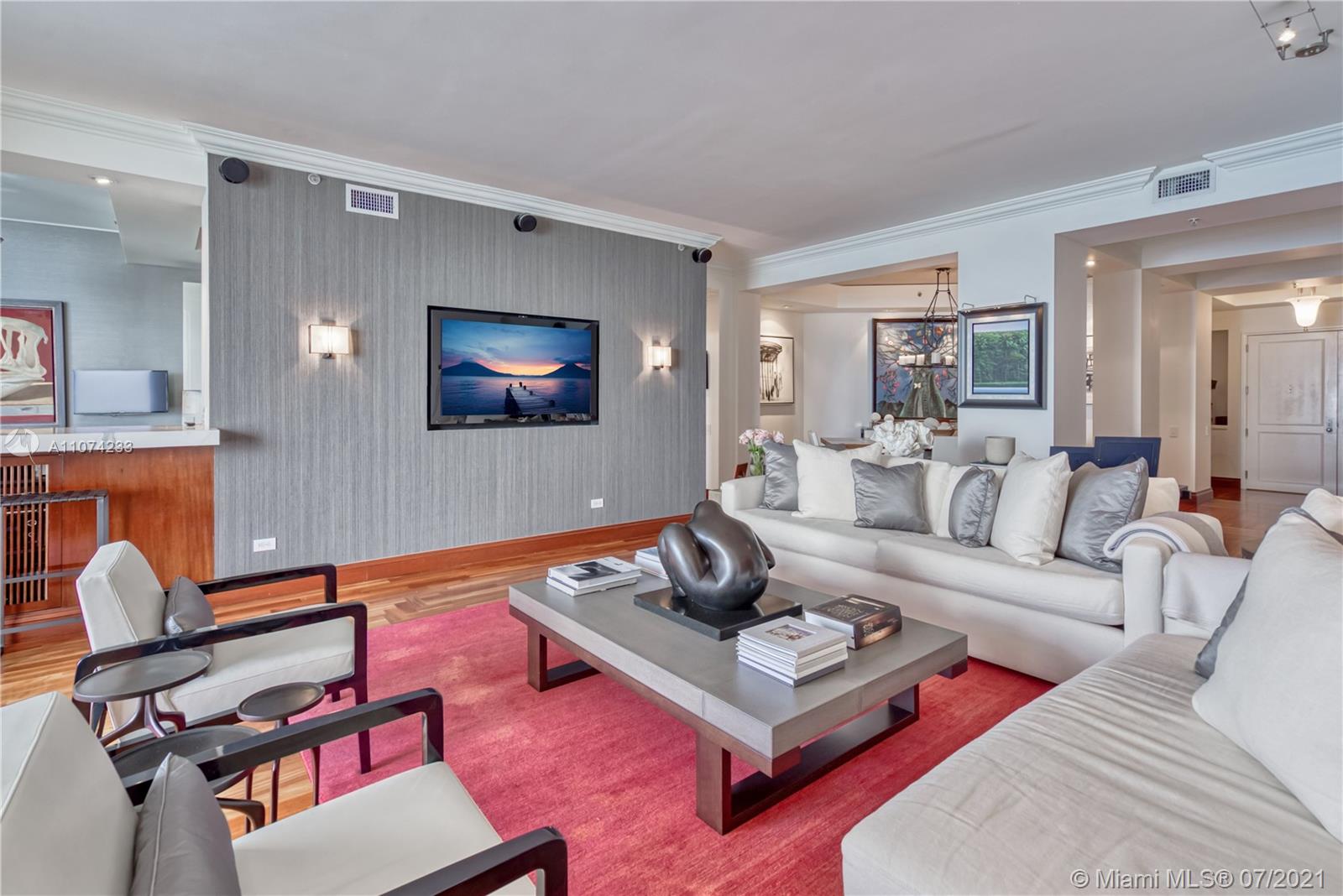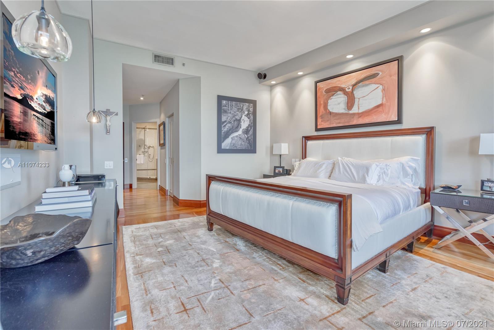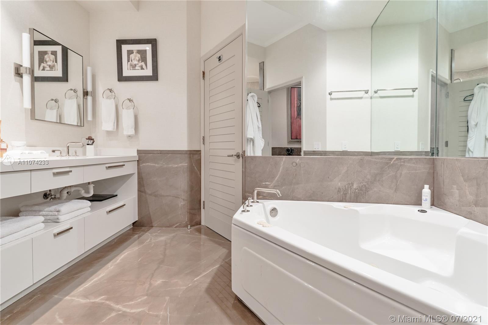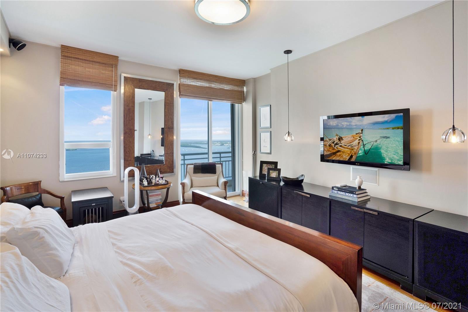 House in the Sky - STUNNING 3/3/1 at the luxurious Two Tequesta on Brickell Key - Rare high ceiling unit that feels like a house! 2 great parking spaces, 2 large storage lockers (w/ AC), stunning Bay/Ocean/Fisher Island/Key Biscayne/Miami Beach views from a massive balcony, American cherry wood floors, upgraded lighting/electronics, Phillip Jeffries wallpaper from Holly Hunt, electric blinds (in living room/kitchen/master bedroom) a stunning kitchen w/ Mia Cucina cabinetry, Italian Calacatta Marble, Sub Zero/Miele/Wolf appliances (including a giant wine fridge), an eat-in breakfast area w/ a pass through, a master suite w/ amazing views, large built-out closets, & a gorgeous bathroom w/ waterworks fixtures, a double vanity, jacuzzi tub, and Gaudi marble slab flooring. This unit won't last!