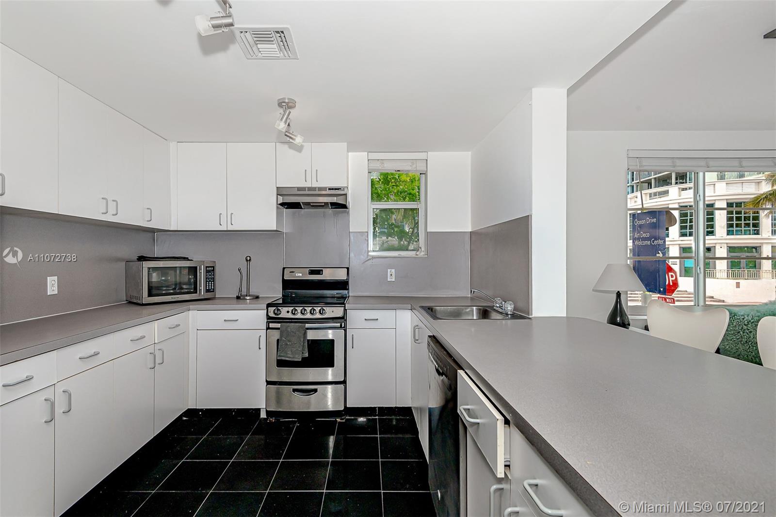 Live on world famous Ocean Drive. Spacious 2 story, 2 bedroom/ 2 bathroom unit. Full of light and directly across from the 15th street Beach access. Open kitchen, tile and concrete living space upstairs - bedrooms downstairs. Amazing opportunity to own a piece of South Beach history. Adjacent units 203 & 205 available as well. Can be acquired separately or as a package deal. Use as live/work space, vacation home or investment. Ask for more info on the Ocean drive transformation planned by the city of Miami Beach.